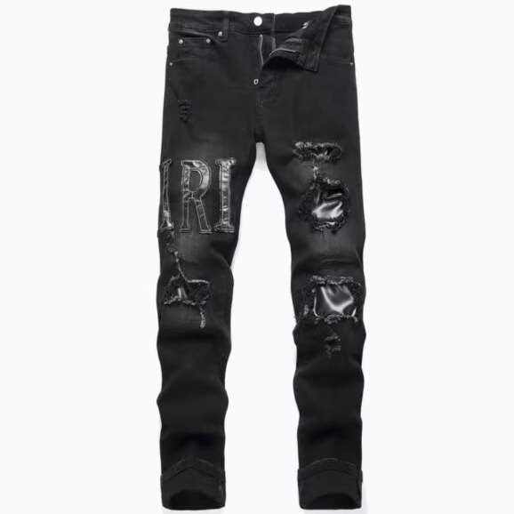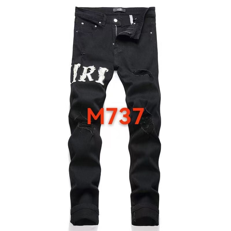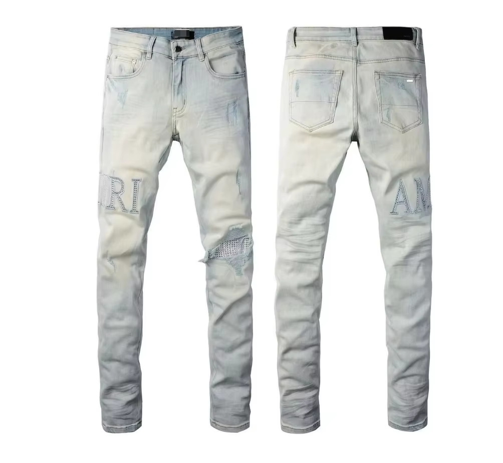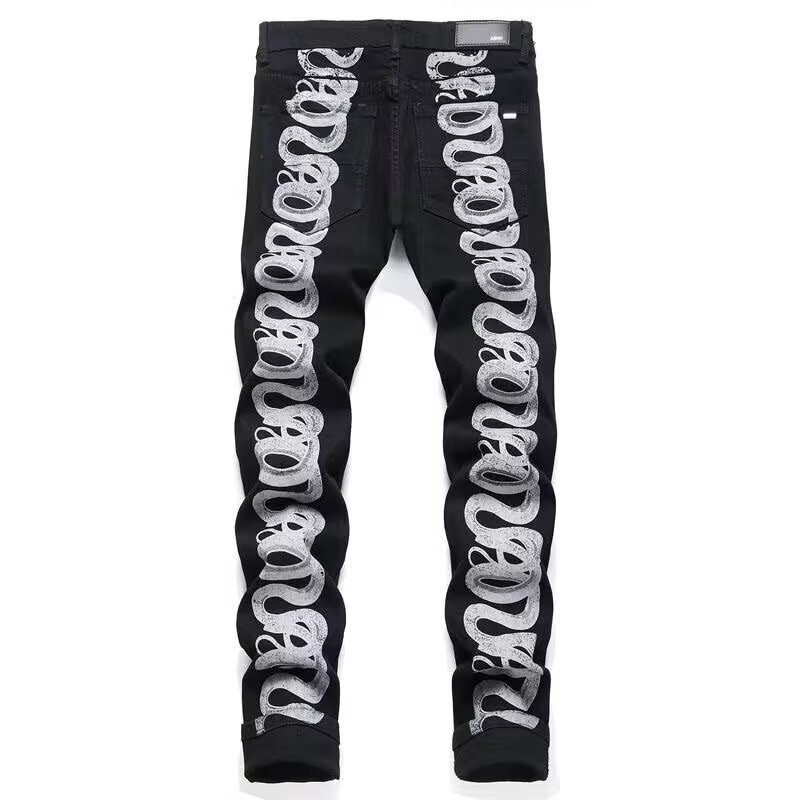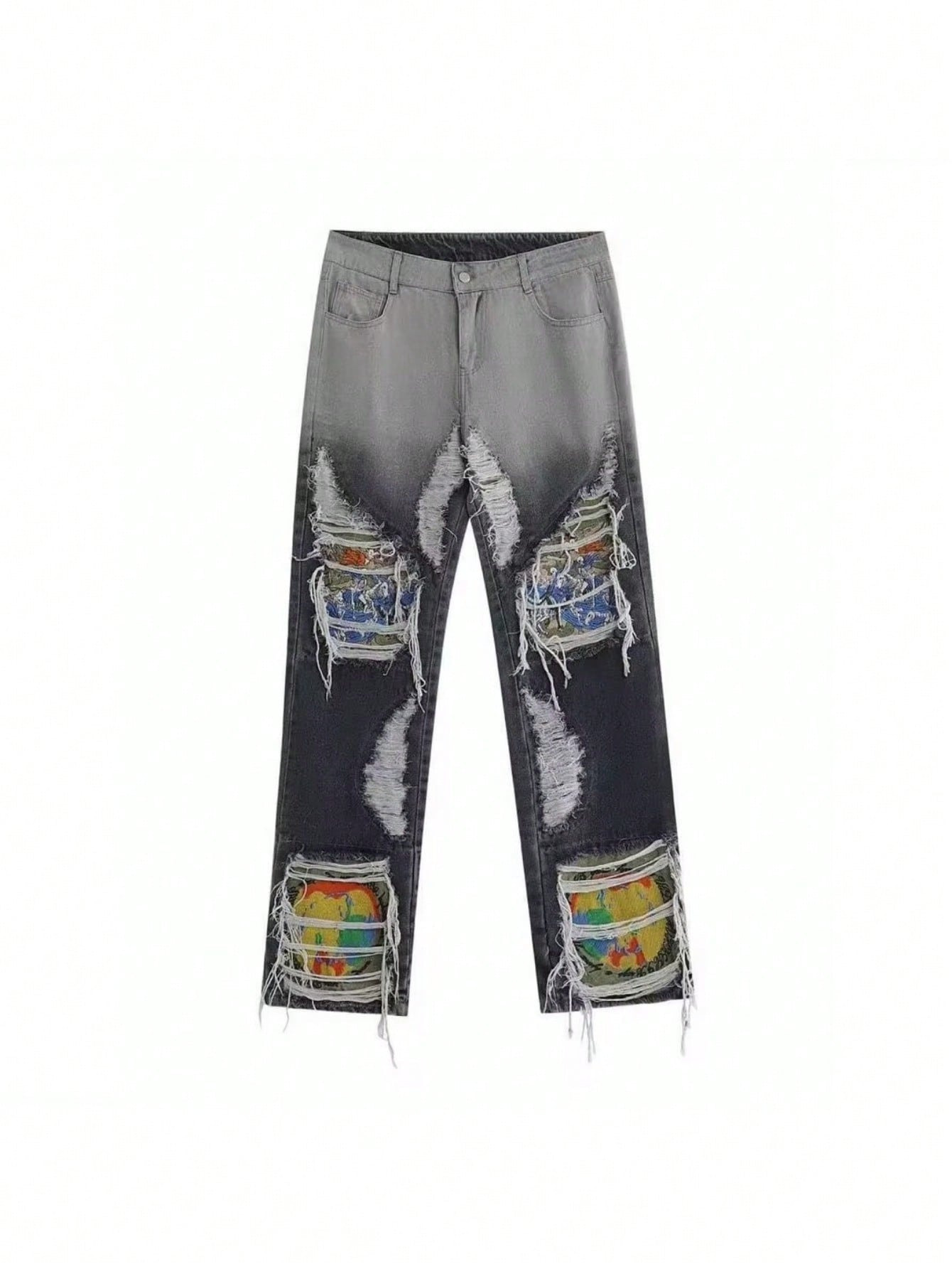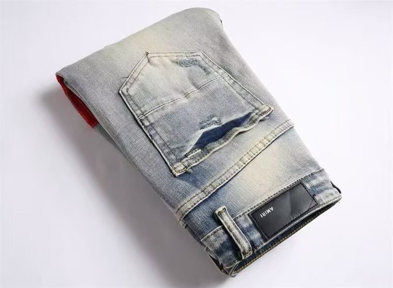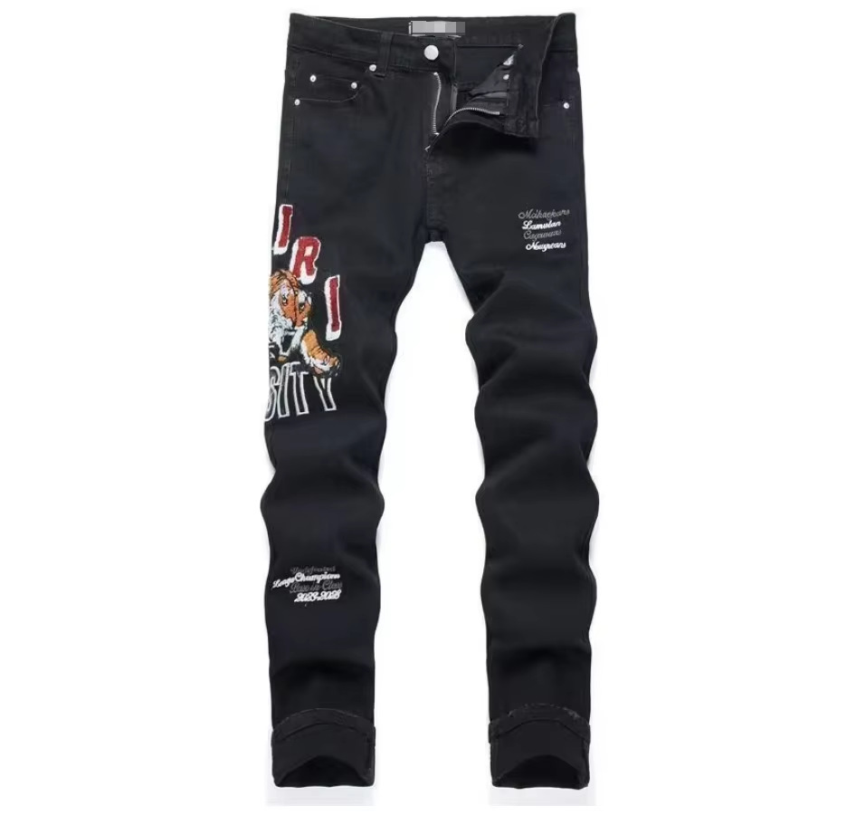 트렌디 한 새로운 도착 찢어진 천 자수 청바지 남성 트렌디 한 캐주얼 패치 슬림 핏 작은 발 유행 맞춤형 바지스토어 가기