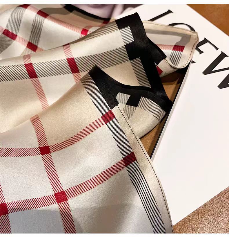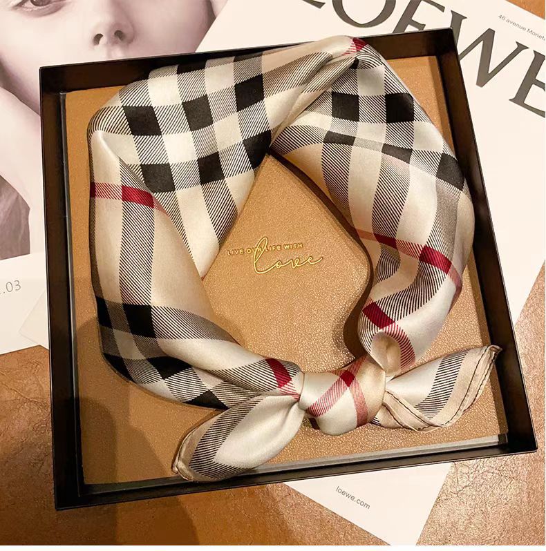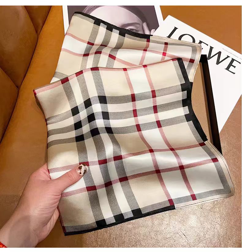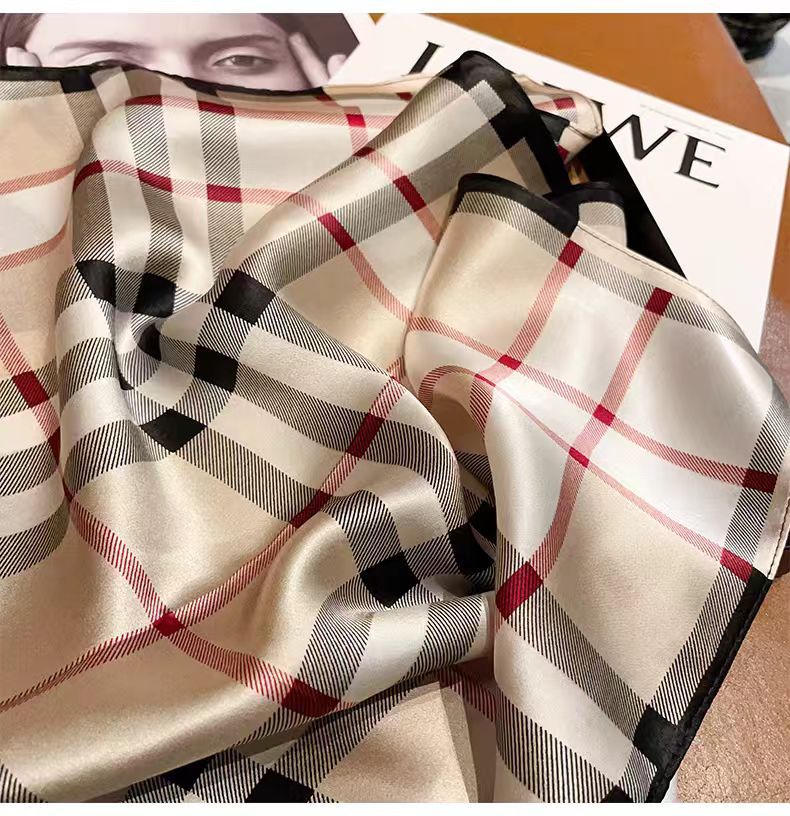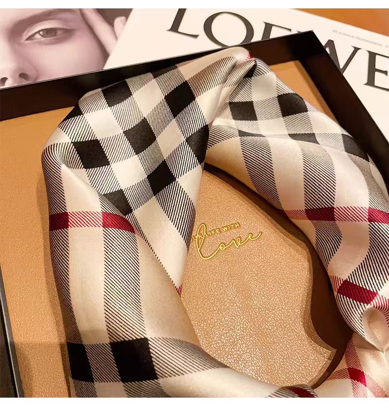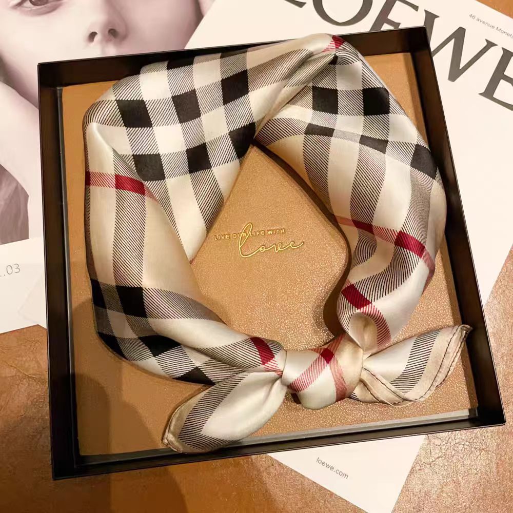 100 멀 베리 실크 카치 격자 무늬 53 실크 스퀘어 스카프 여성의 봄 여름 가을 패션 올 매치 실크 스카프스토어 가기