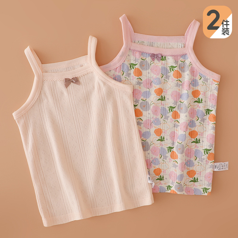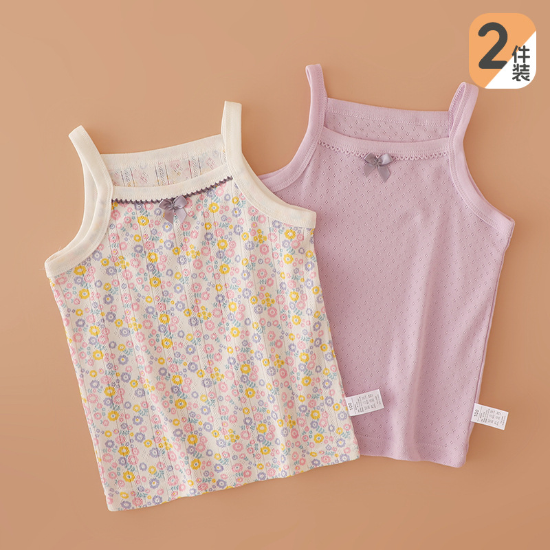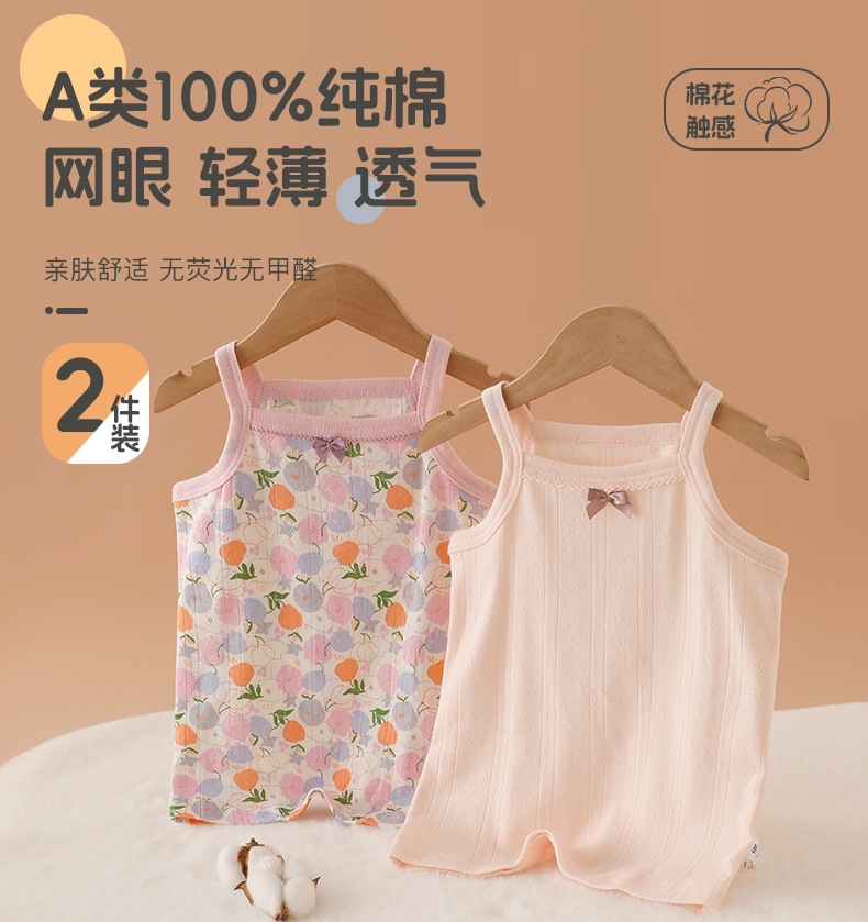 일본 여아용 얇은 순면 A형 서스펜더 여아용 베이비 잠옷 아우터 조끼 유아용 메쉬 바닥 셔츠