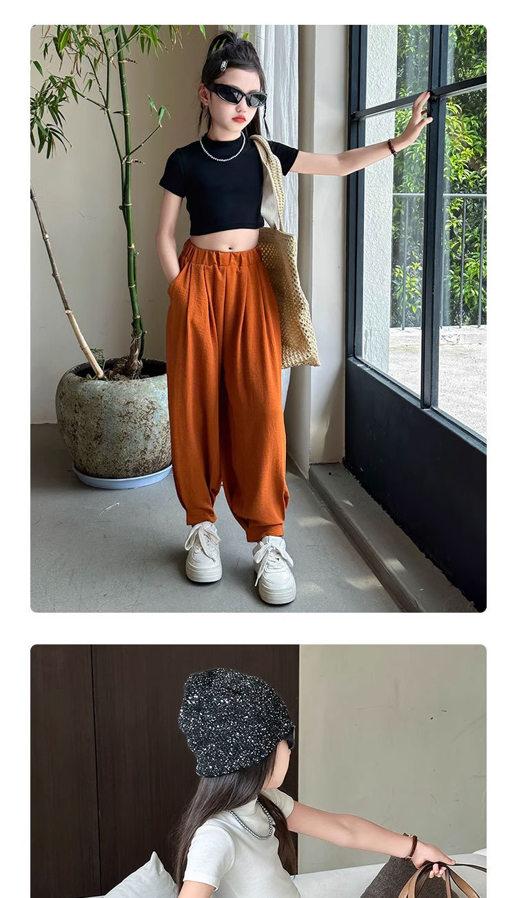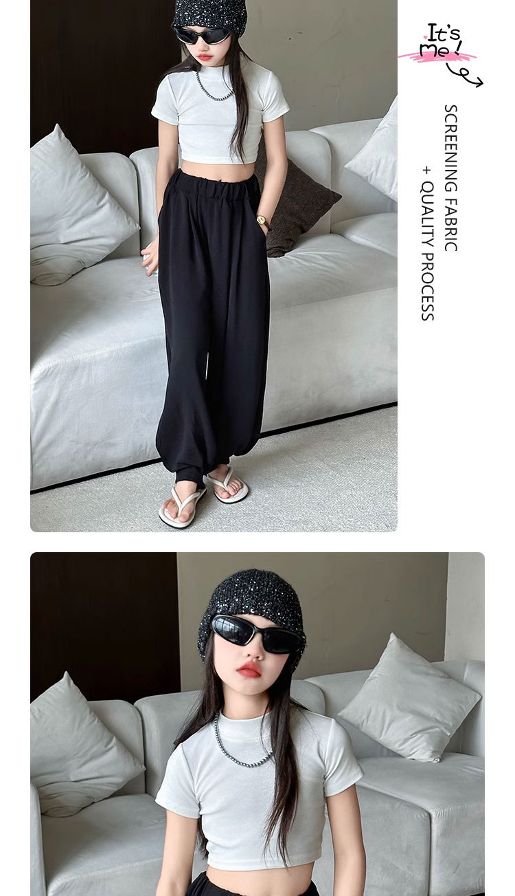 걸스 화이트 반팔 여름 서양식 어린이 쇼트 재즈 탑 배벨 티셔츠 스트리트 댄스 슬림 핏 반소매 트렌디