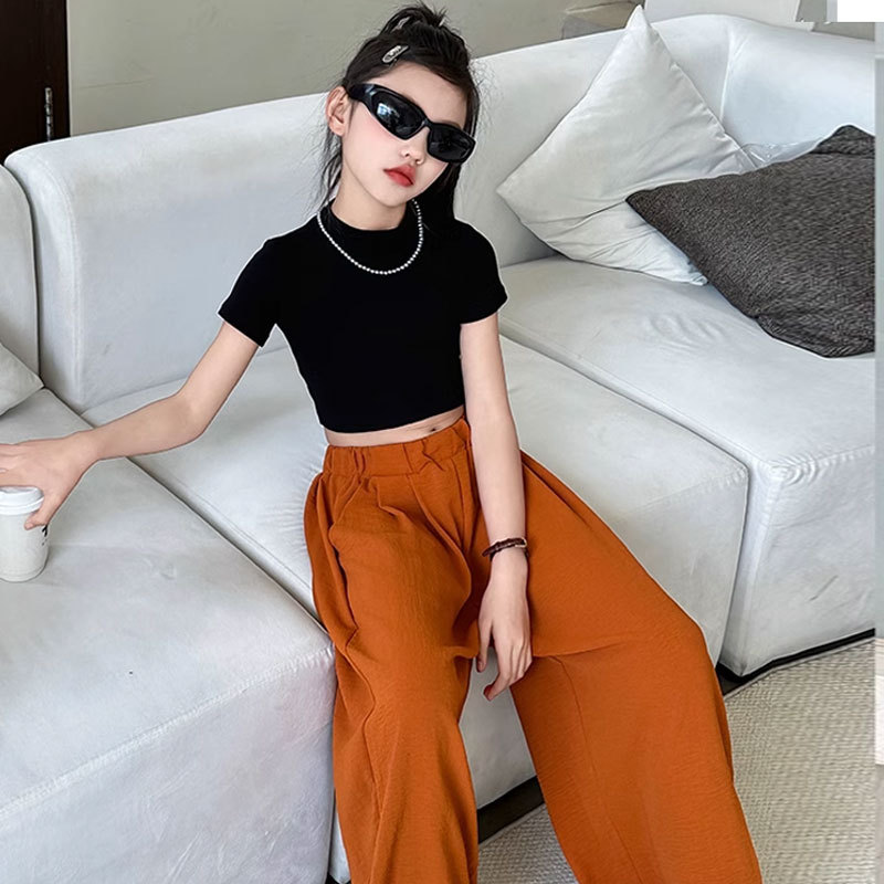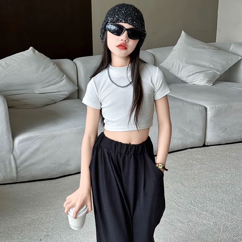 걸스 화이트 반팔 여름 서양식 어린이 쇼트 재즈 탑 배벨 티셔츠 스트리트 댄스 슬림 핏 반소매 트렌디스토어 가기