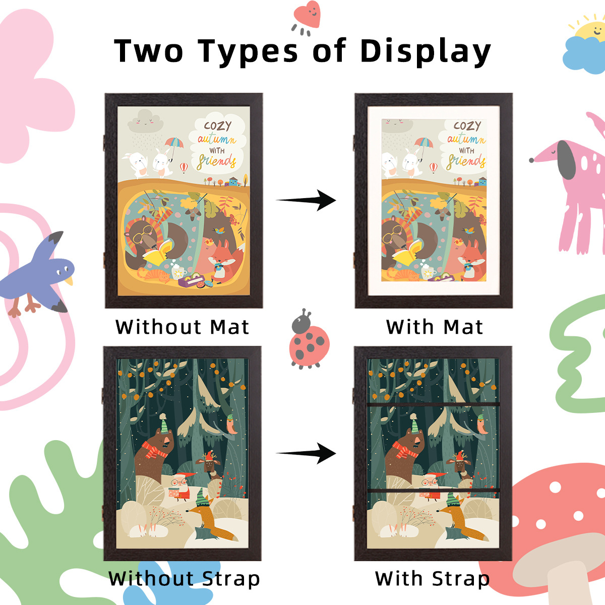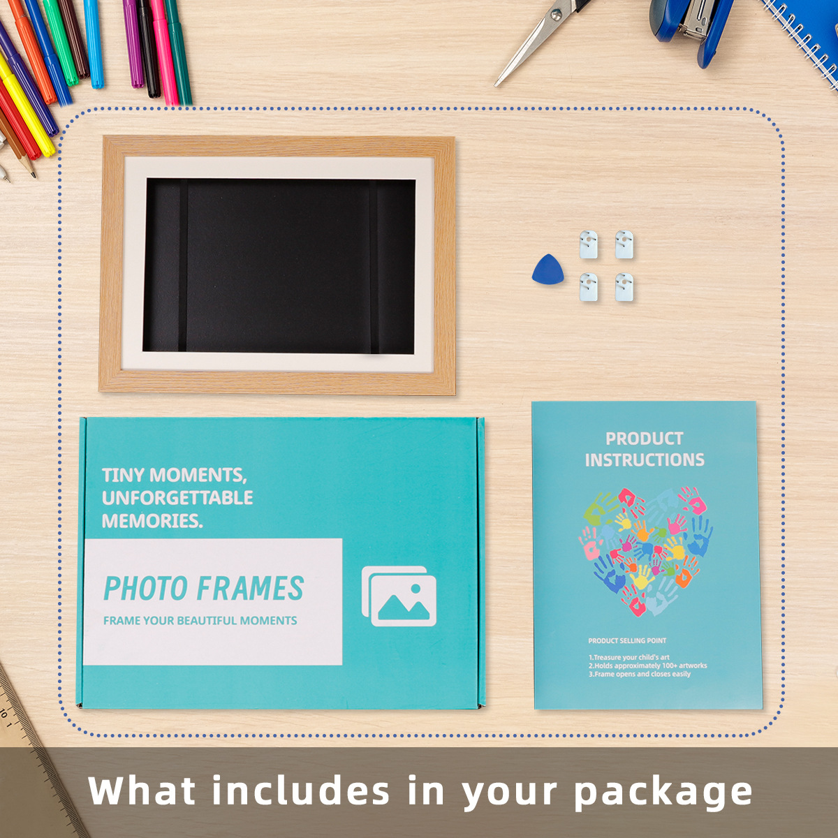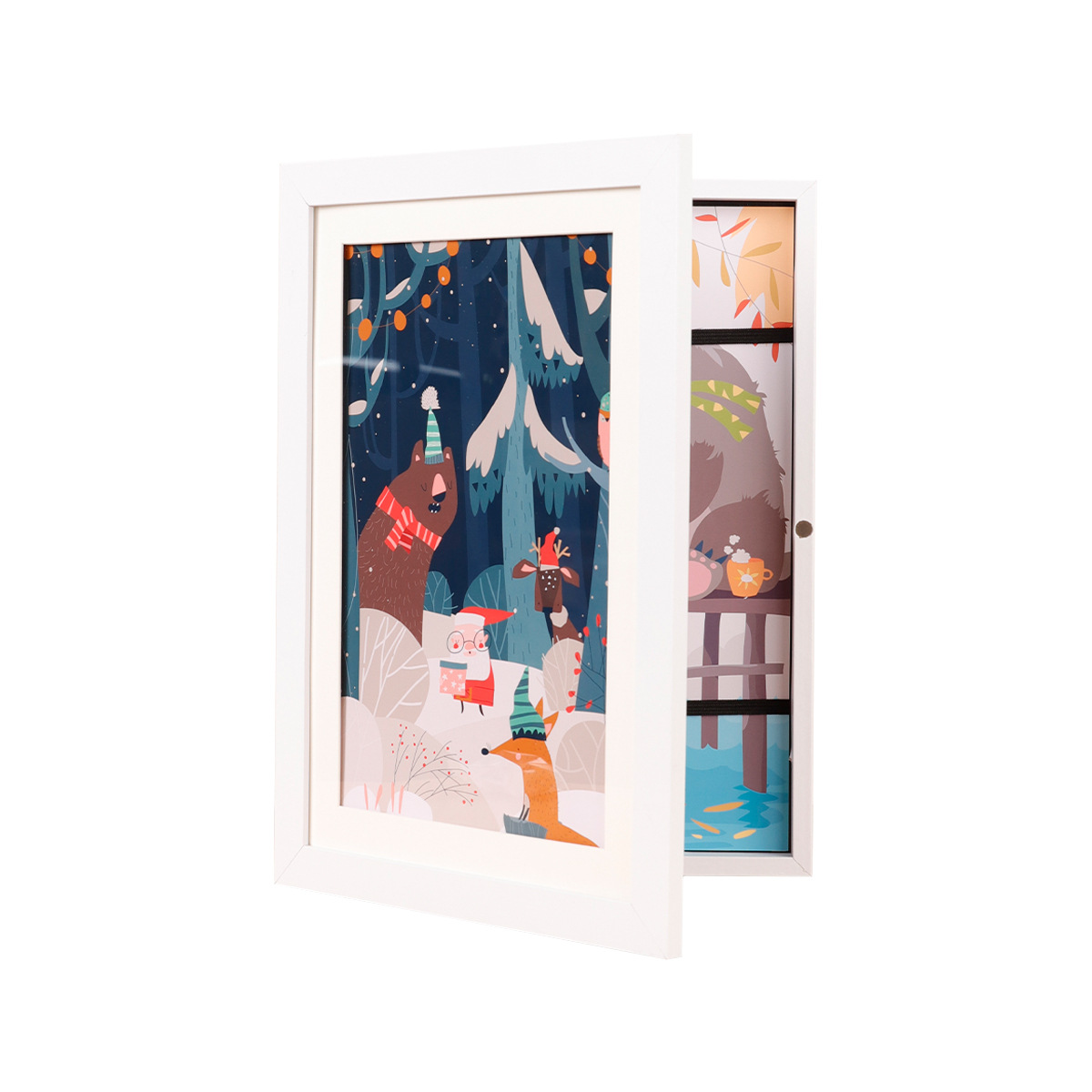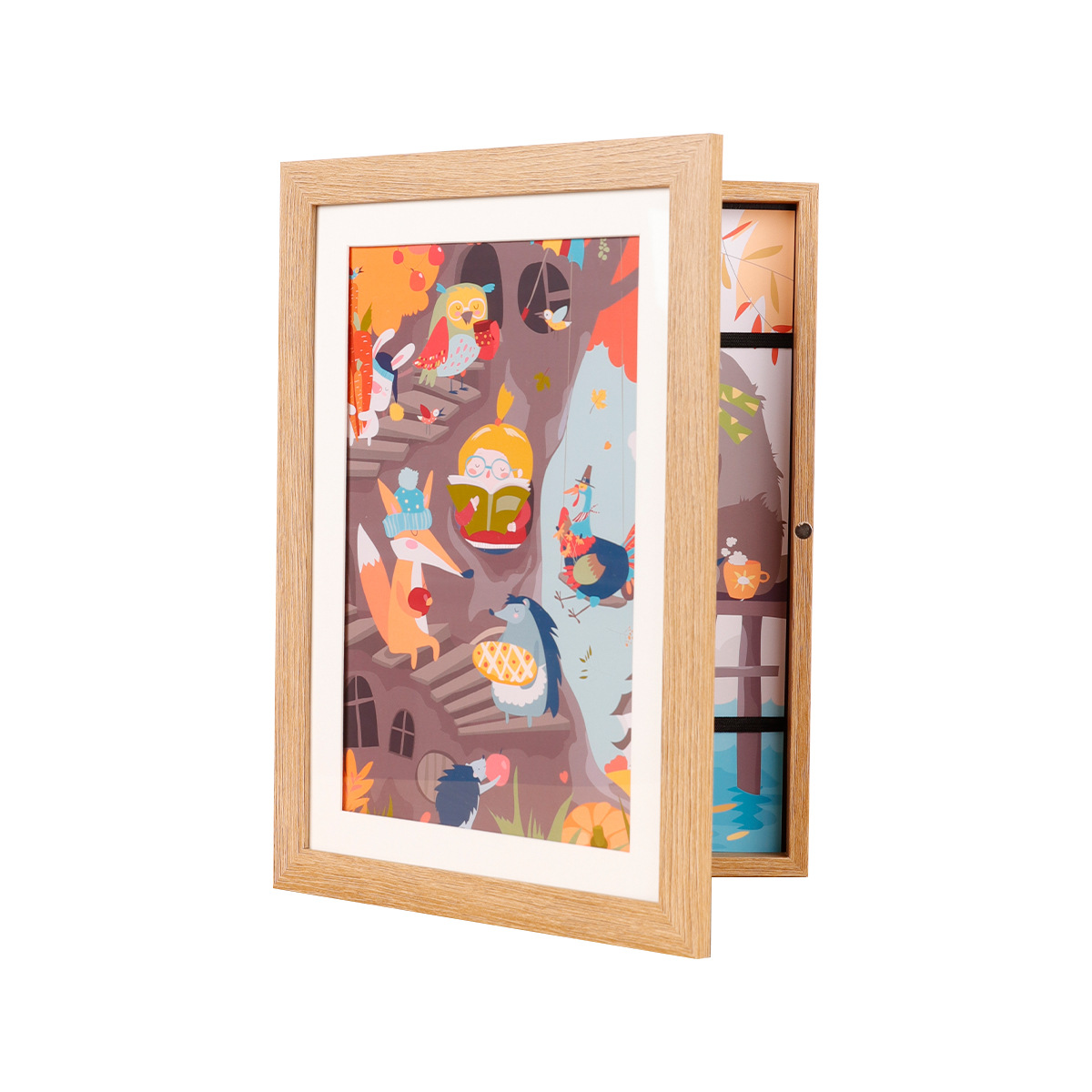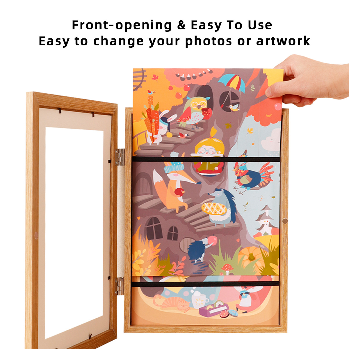 강력한 자석으로 A3/A4 크기의 어린이 미술 작품, 유화, 사진을 보관할 수 있는 플립형 아트 프레임입니다. 탁상용 또는 벽걸이용으로 활용 가능하며, 창의적인 수납 기능을 제공합니다.