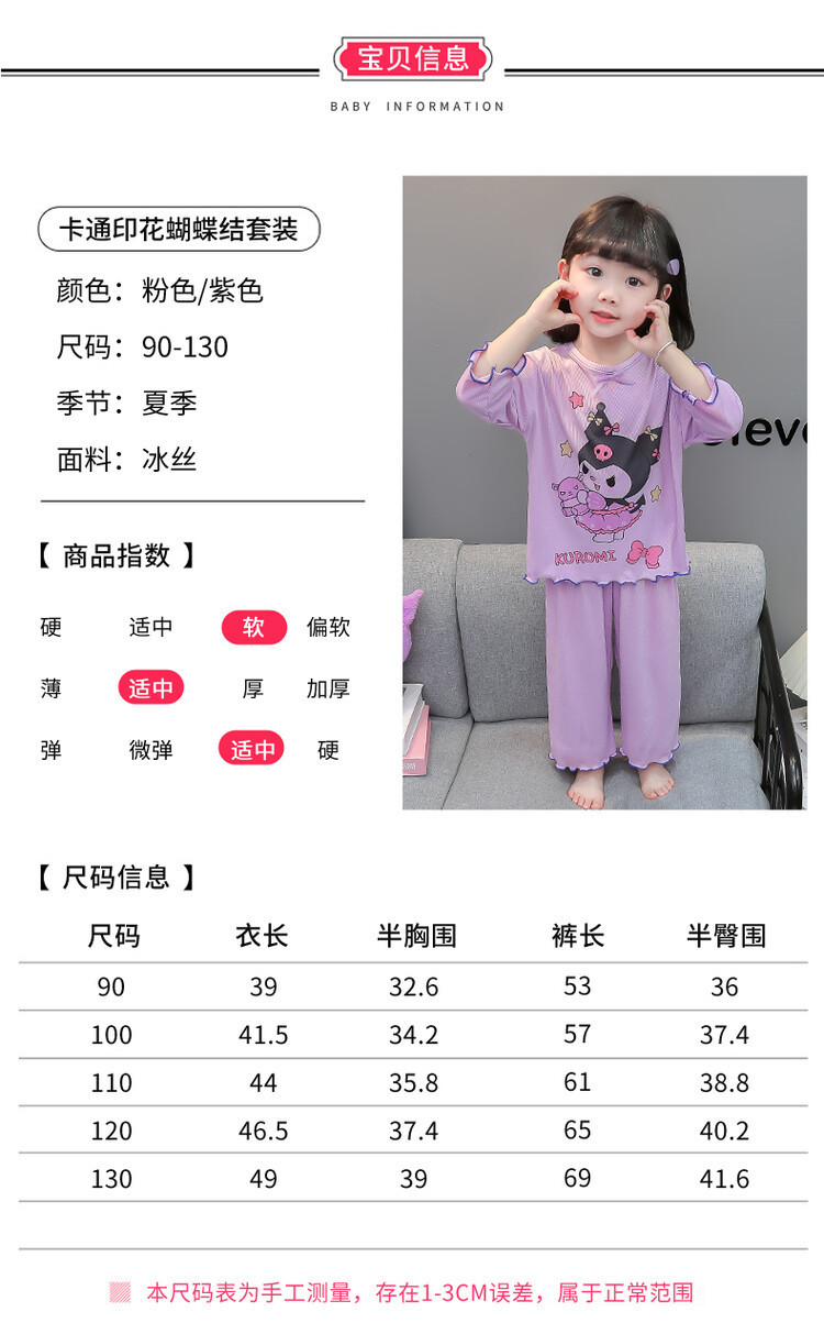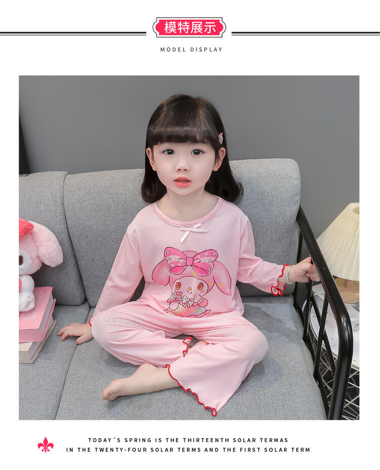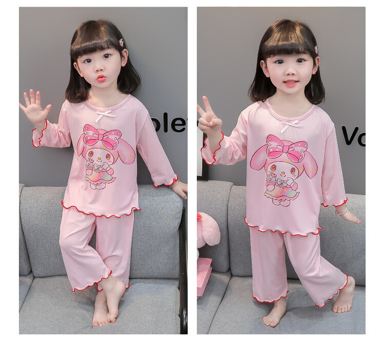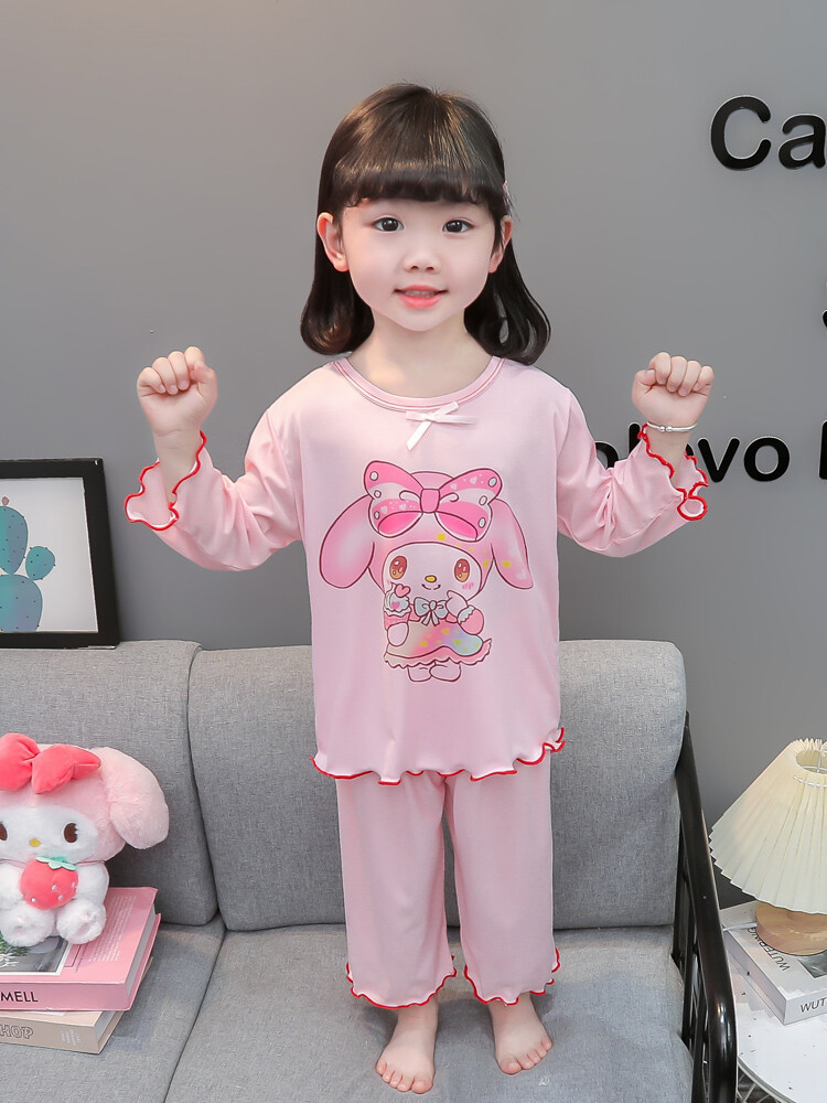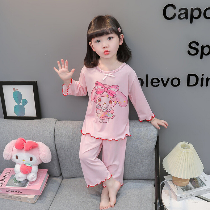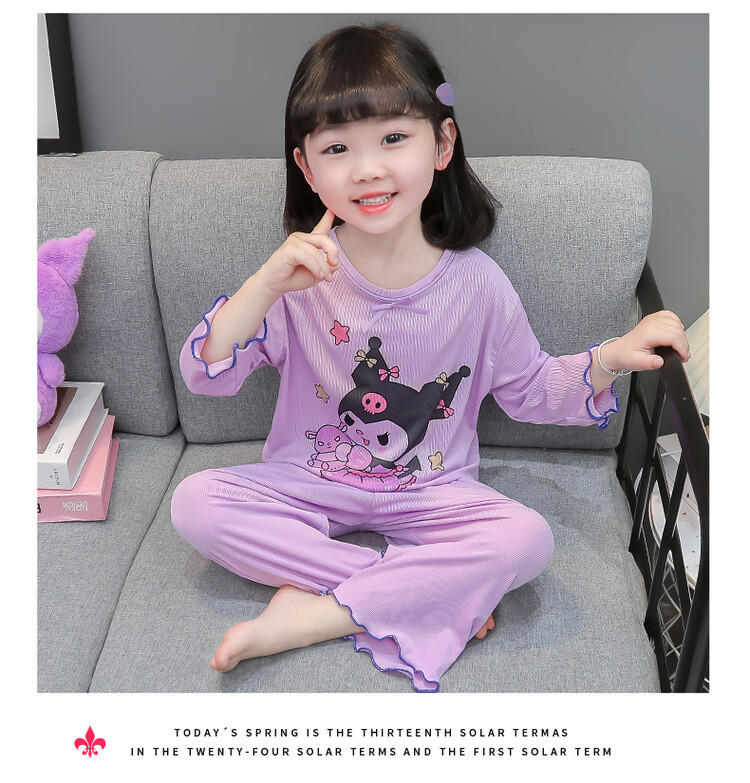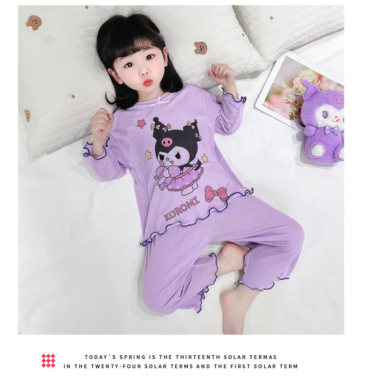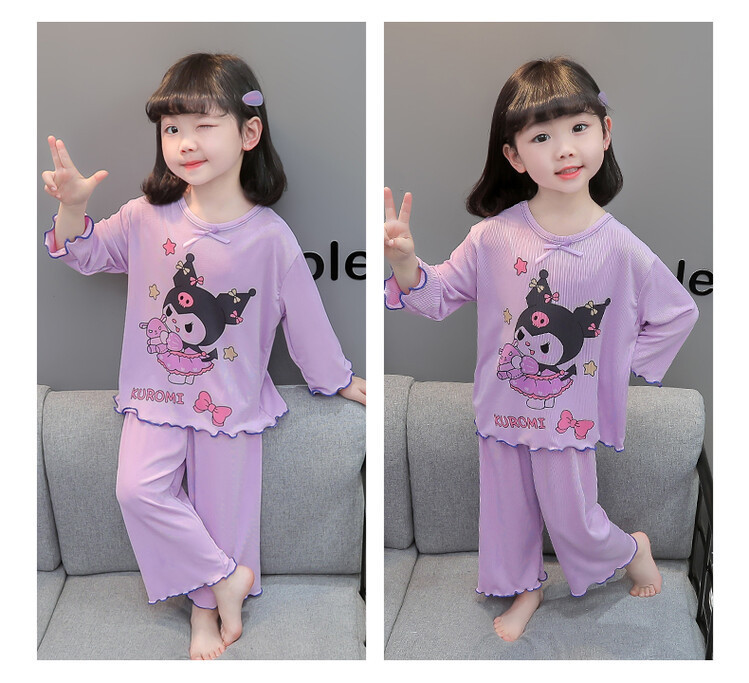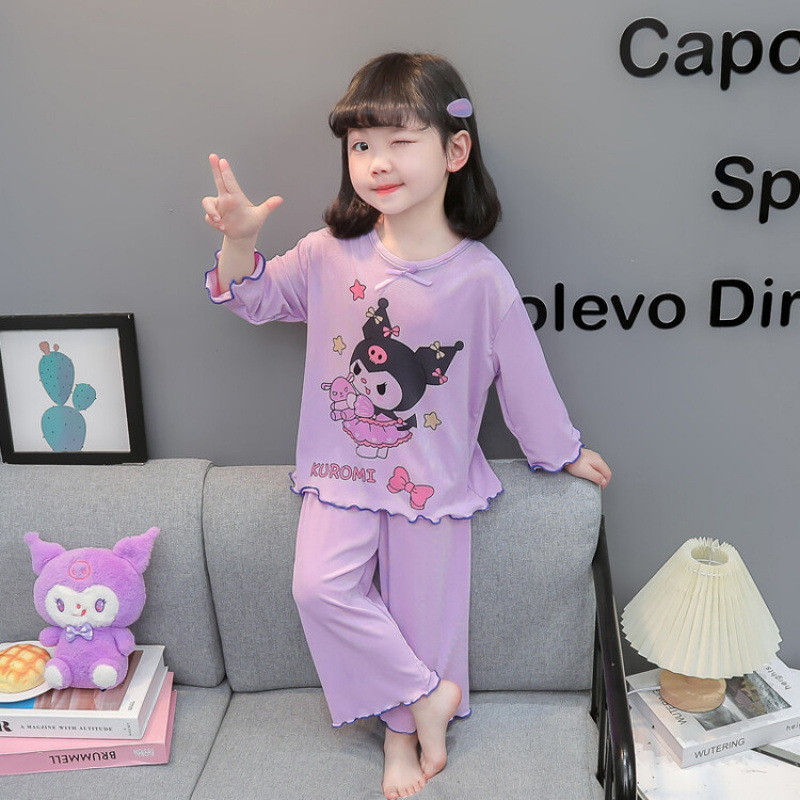 어린이 쿠로미 멜로디 긴팔 잠옷 2025 여름 얇은 캐주얼 홈웨어 세트 소녀 에어컨 의류스토어 가기