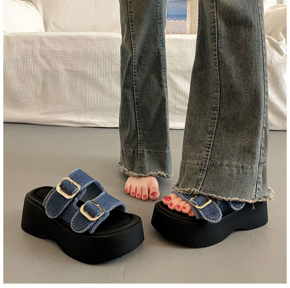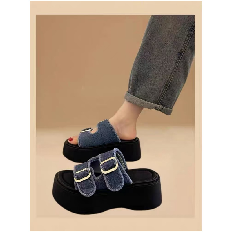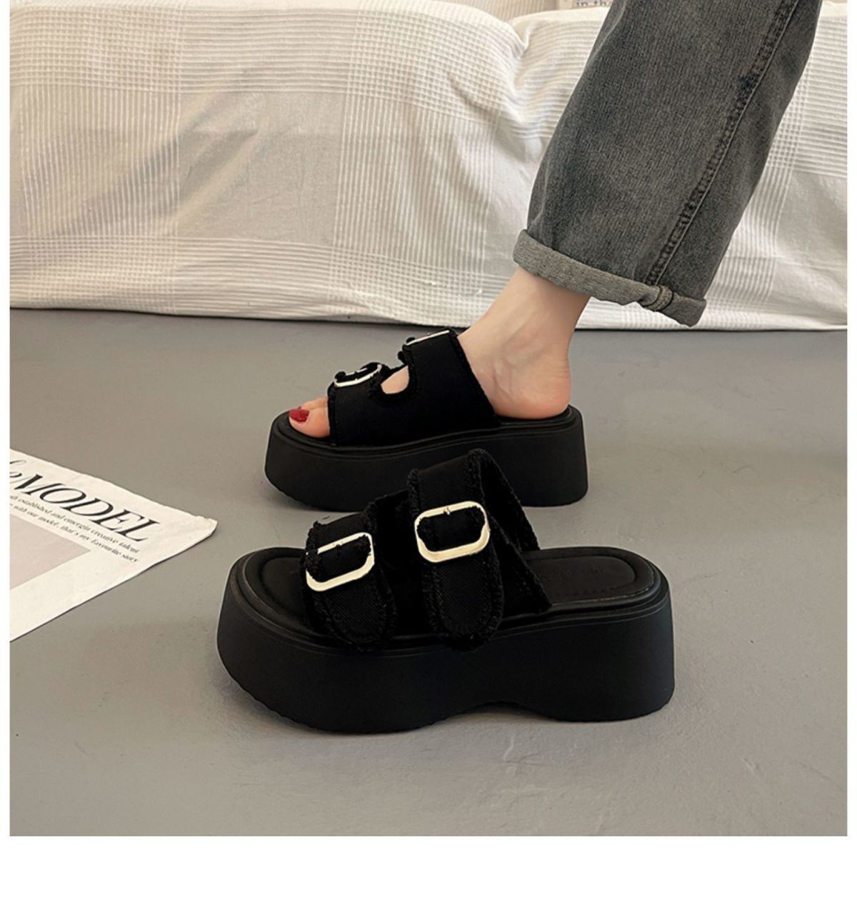 2025 새로운 슈퍼 인기 아름다운 두꺼운 바닥 강화 샌들과 슬리퍼 여성용 여름 세련된 하이 엔드 웨지 슬리퍼를 입고스토어 가기