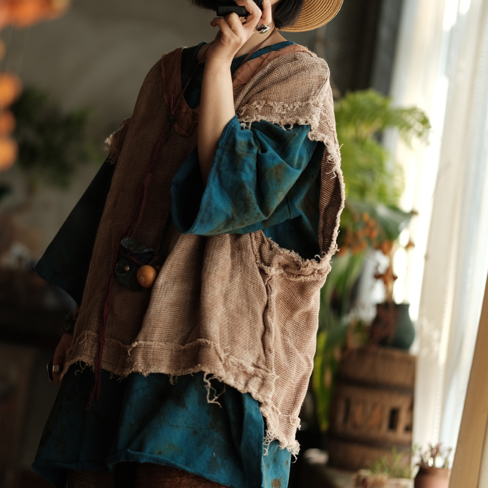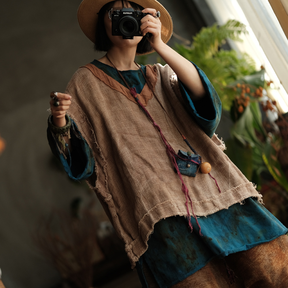 작은 진흙 소녀 빈티지 예술적 대마 라운드 넥 컬 티셔츠 최고 조끼 2353 카카