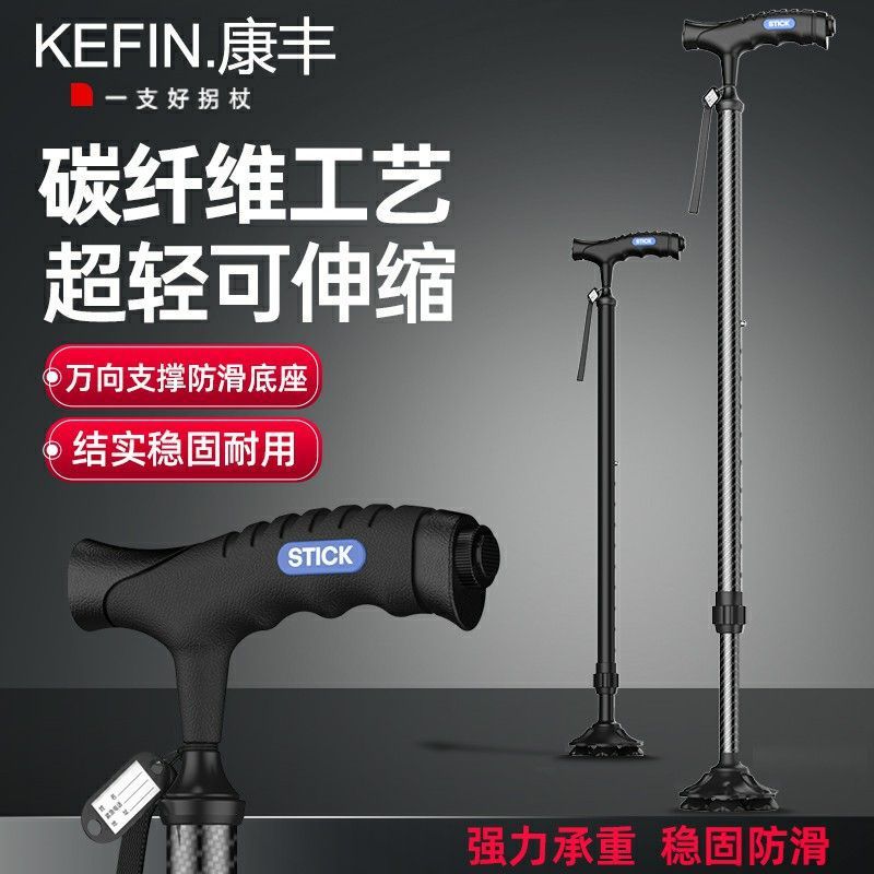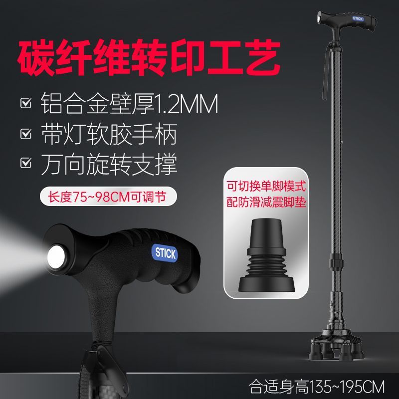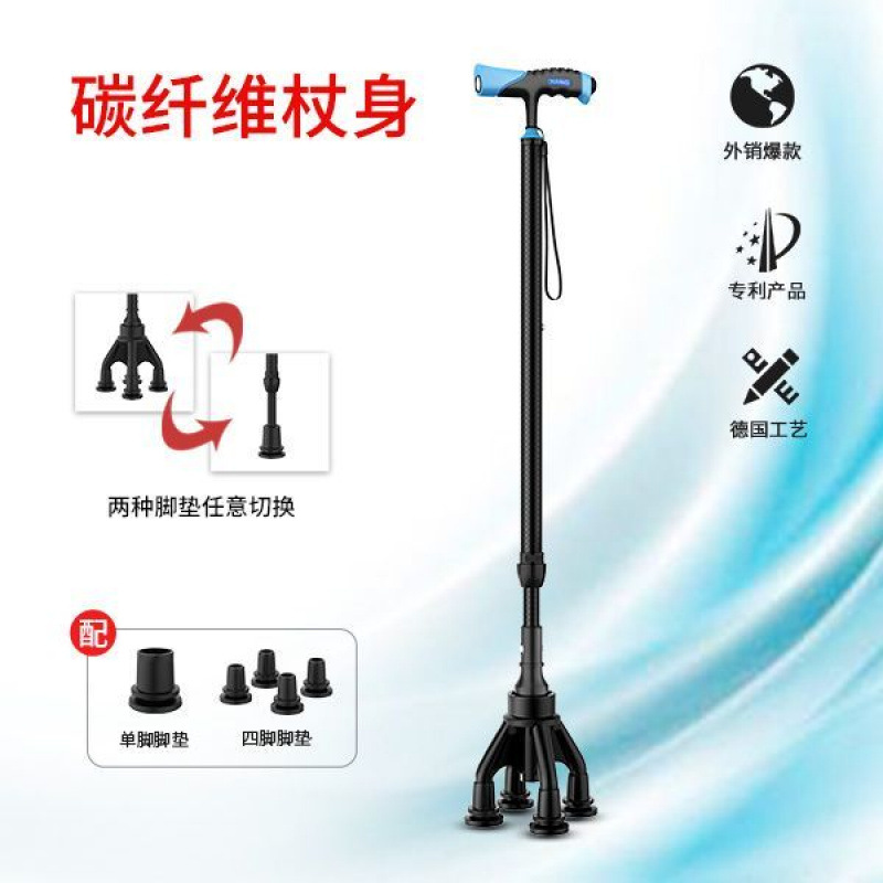 카본 파이버 지팡이, 젊은이들을 위한 야외용 경량 4발 미끄럼 방지 텔레스코픽 지팡이, 노인을 위한 보행 보조 지팡이스토어 가기