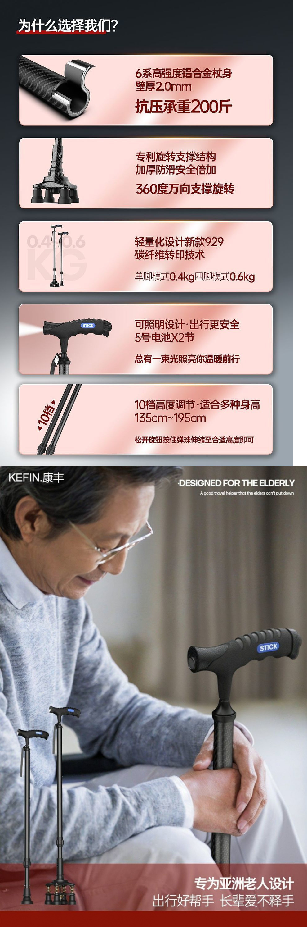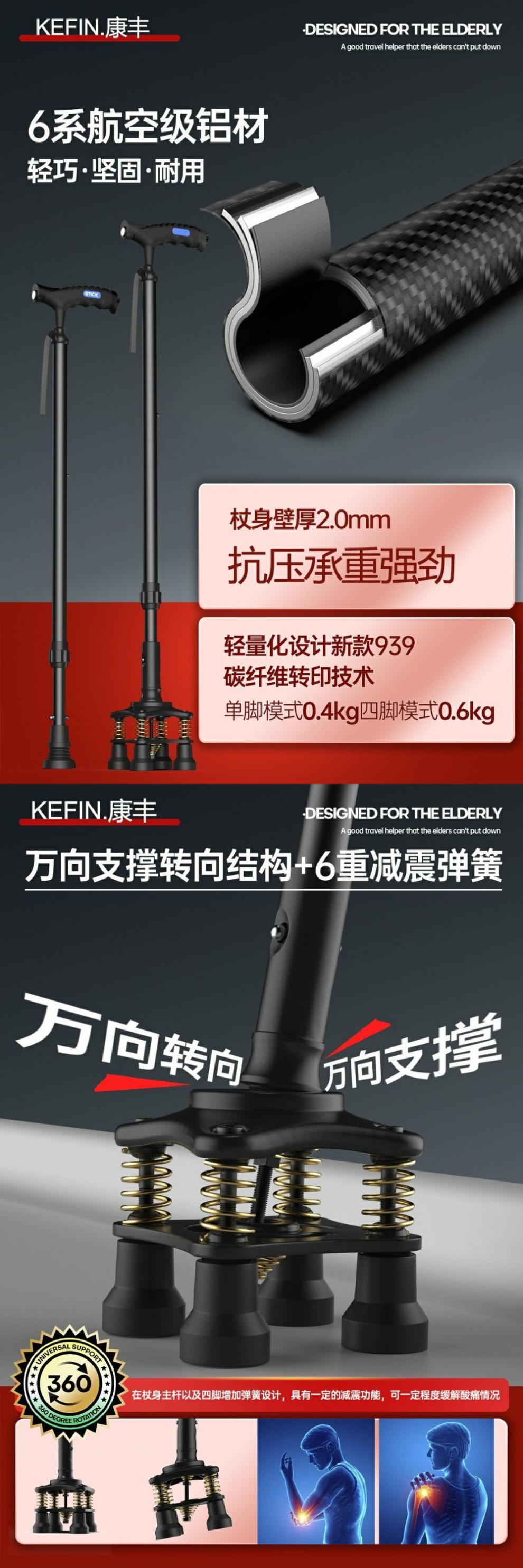 • 탄소 섬유. 부드러운 실리콘 손잡이 [조명 싱글/4다리 전환 가능]