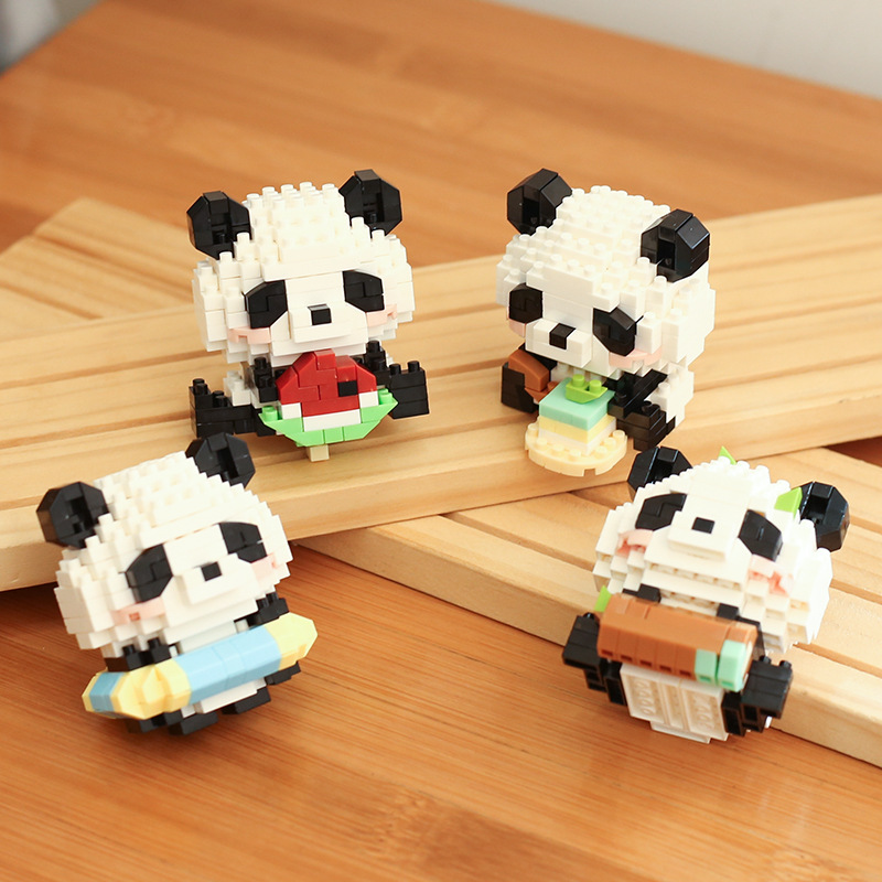 국보 자이언트 팬더 만화 인형 모델 조립 장난감 마이크로 입자 레고 블록 휴일 선물 호환