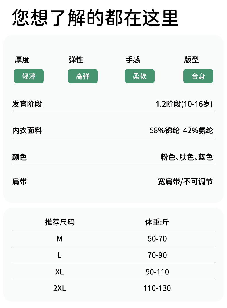 어린이 속옷 발달기 여자 중학생 2025 새로운 스포츠 통기성 긴 조끼 여자 브래지어 튜브 탑스토어 가기