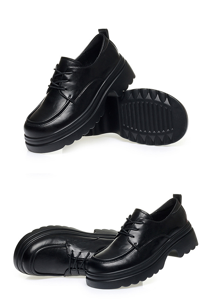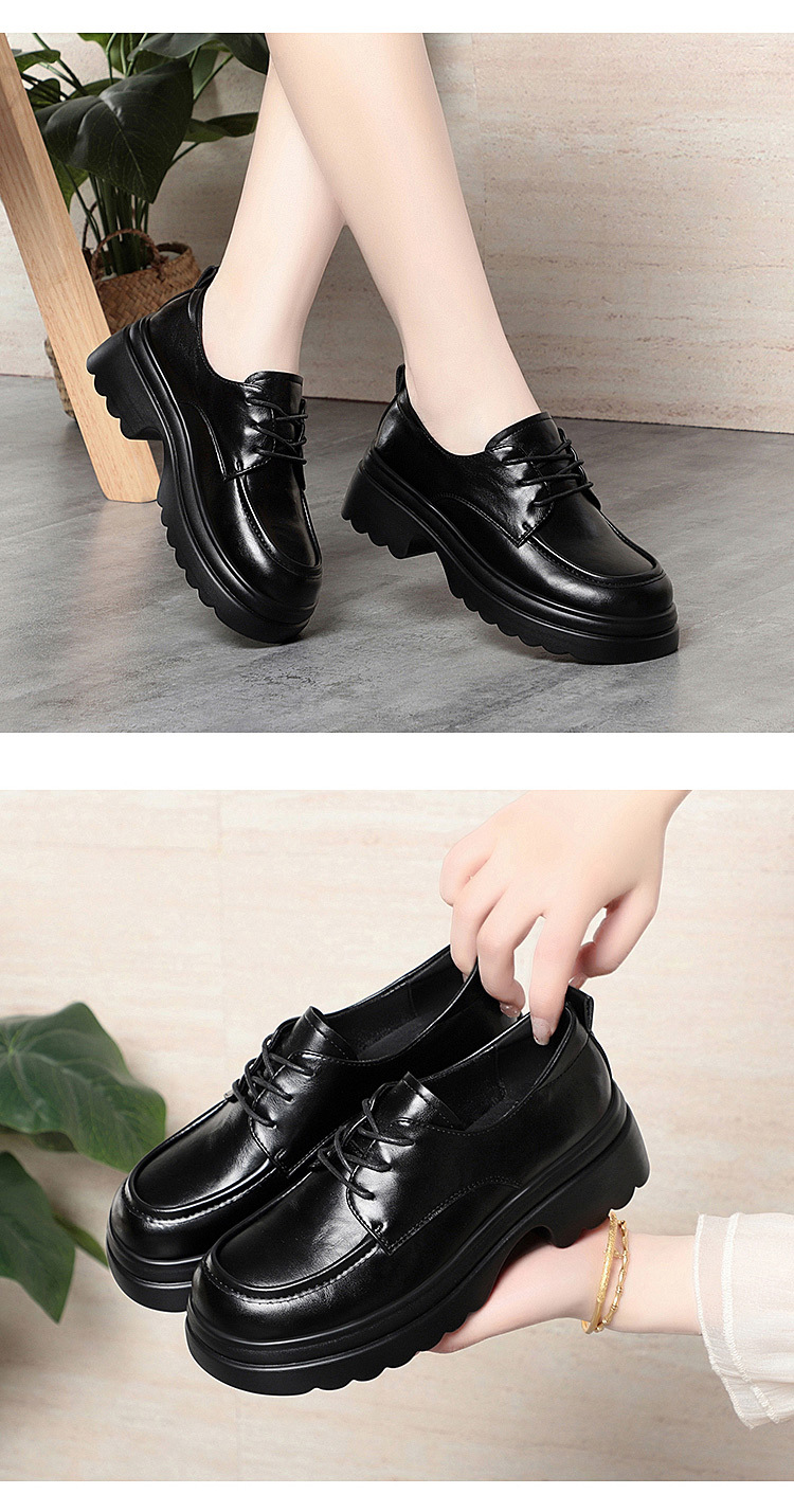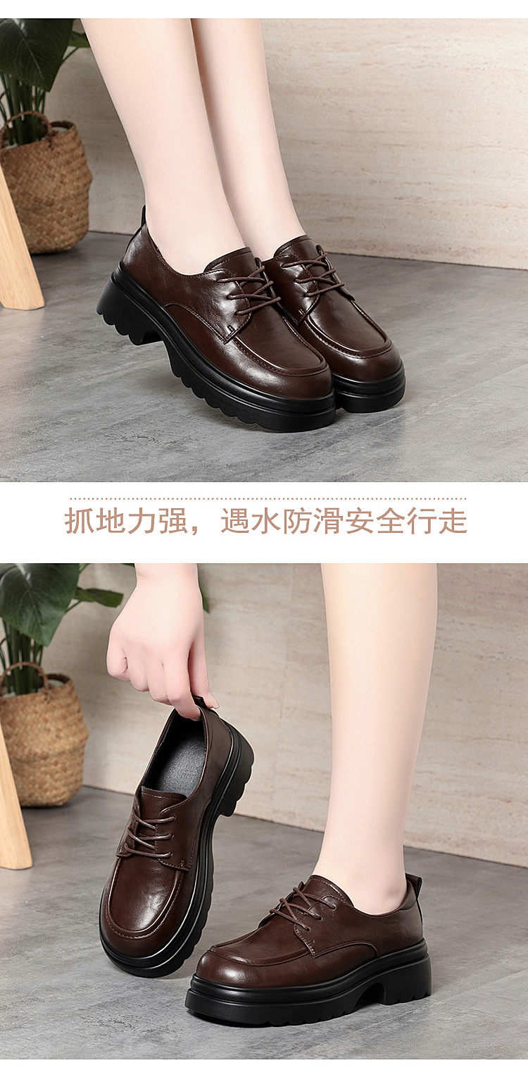 두꺼운 굽 여성화, 영국식 작은 가죽신, 여성 봄, 가을 레이스업 로퍼, 다용도 라운드 토 두꺼운 밑창 신발을 제조업체에서 배송합니다.스토어 가기