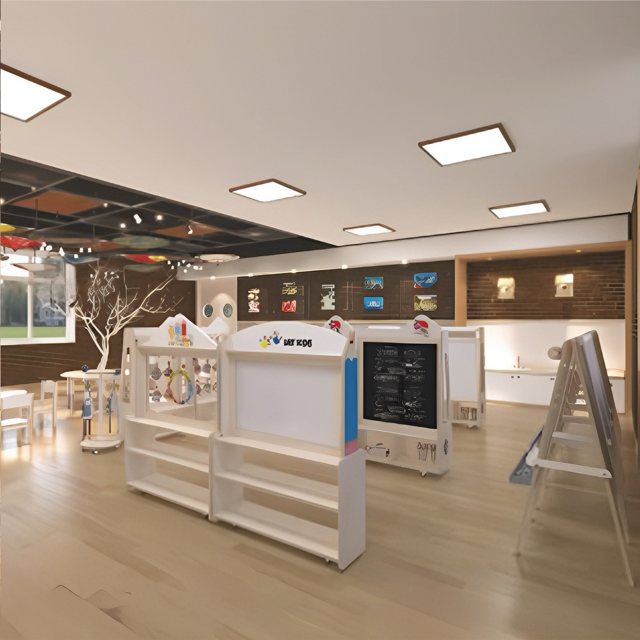 유치원 자작나무 다층 보드 미술 교실 지원 가구 어린이 다기능 스토리지 랙 드로잉 보드 랙 스토리지 랙