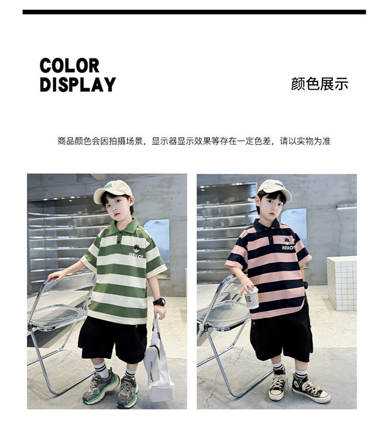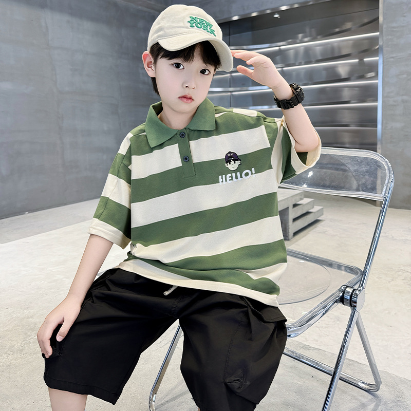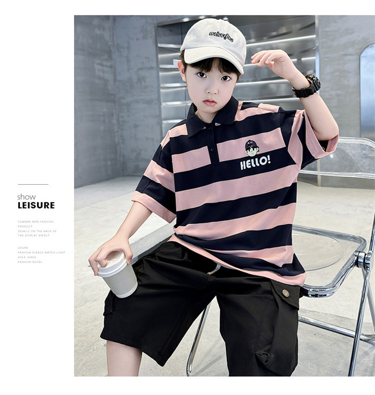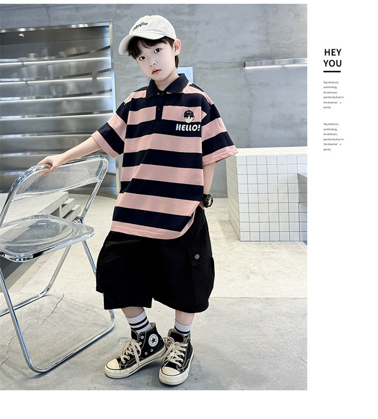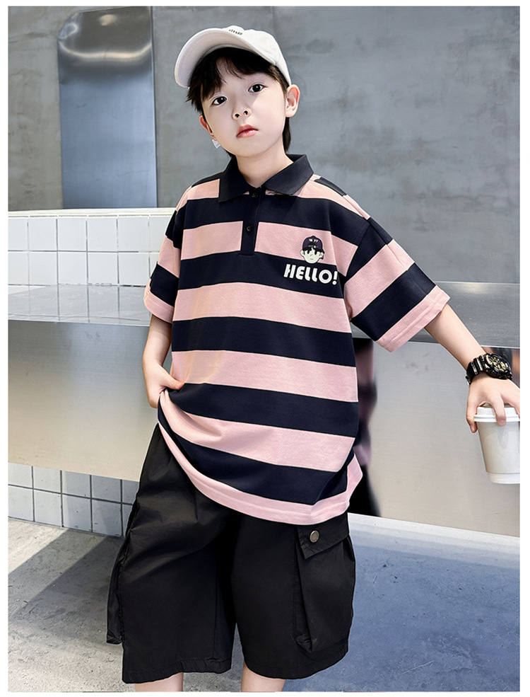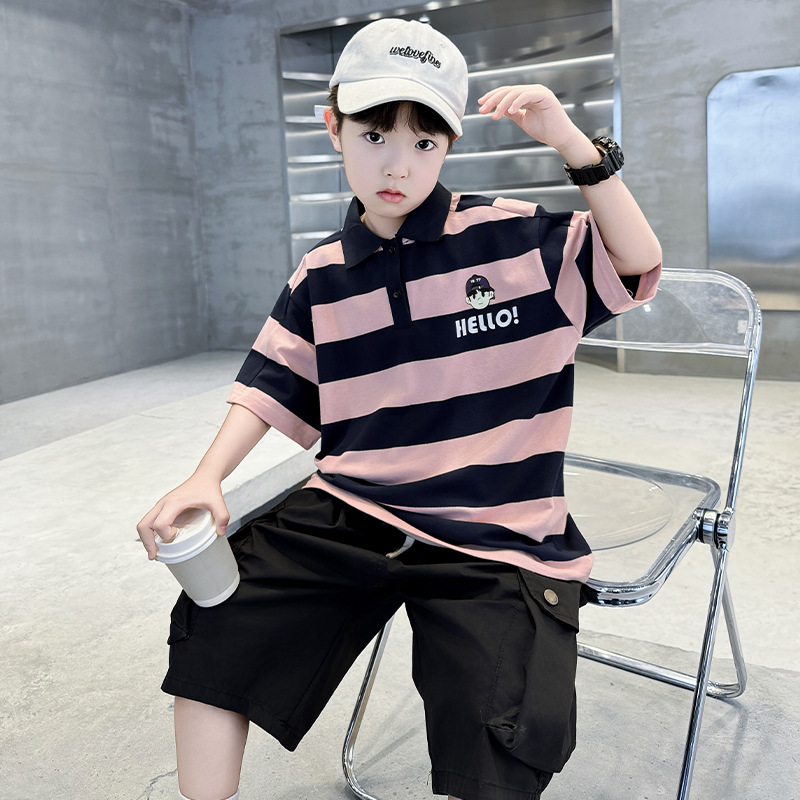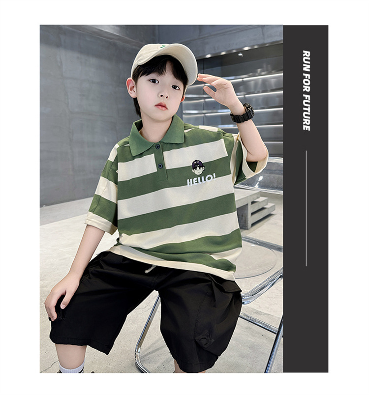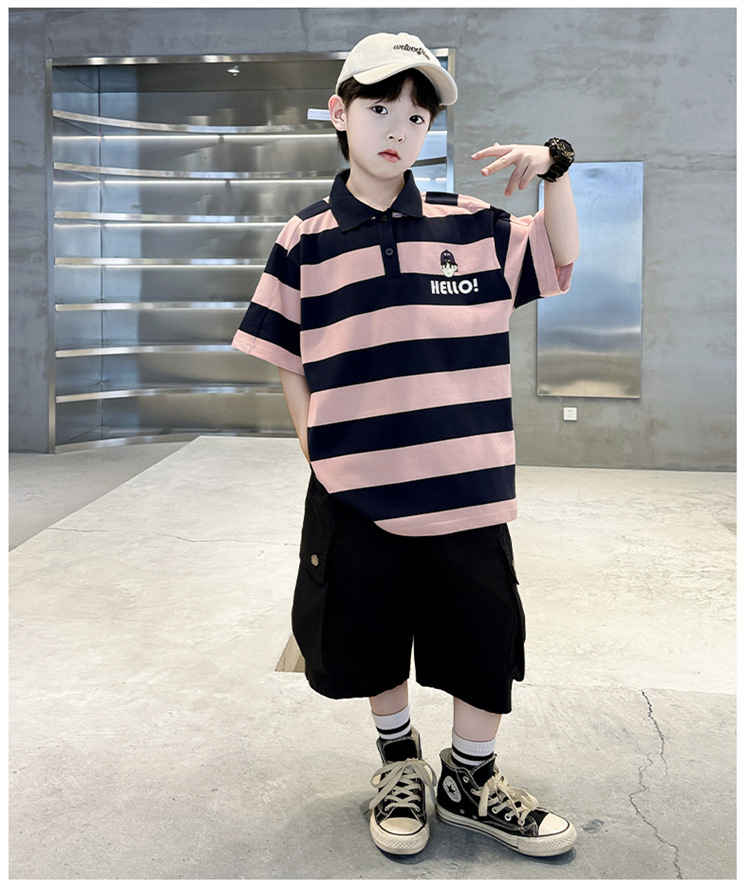 남아 여름 반팔 폴로셔츠 세트, 멋진 2026년 신상 중대형 아동용 스트리트 스타일 여름옷, 패셔너블하고 트렌디한 아동복스토어 가기