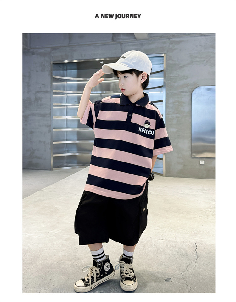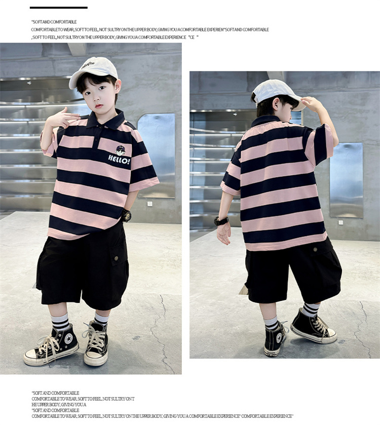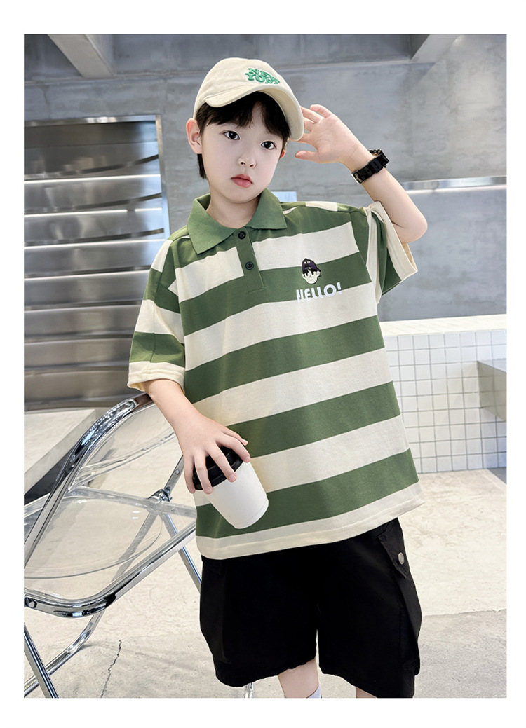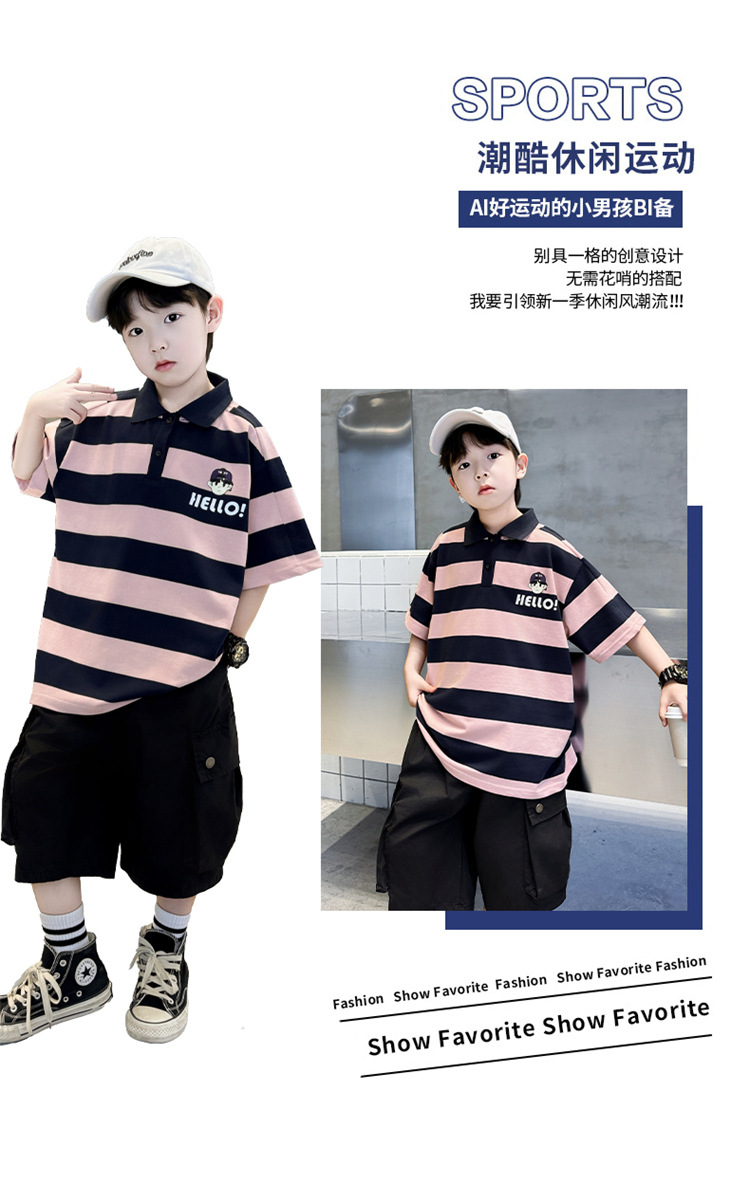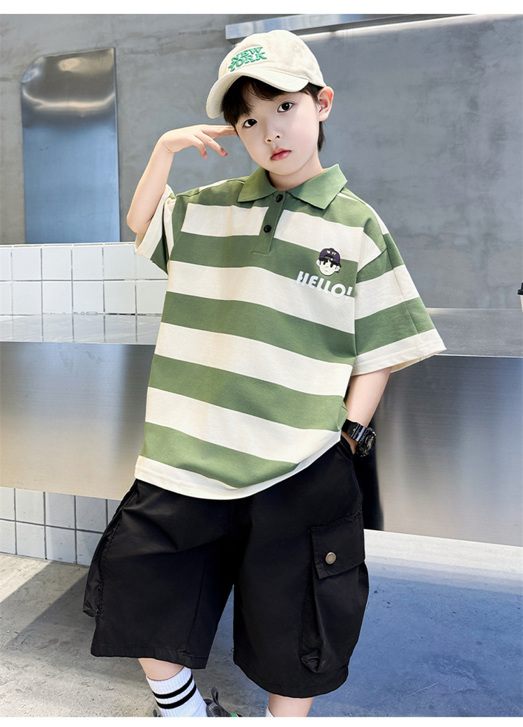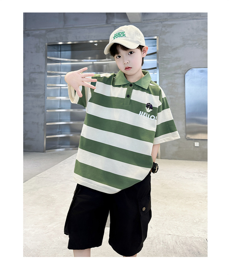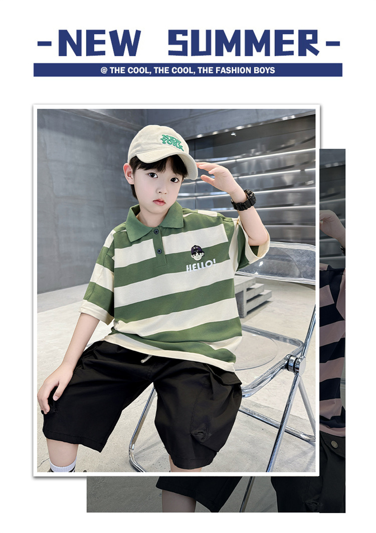남아 여름 반팔 폴로셔츠 세트, 멋진 2026년 신상 중대형 아동용 스트리트 스타일 여름옷, 패셔너블하고 트렌디한 아동복스토어 가기