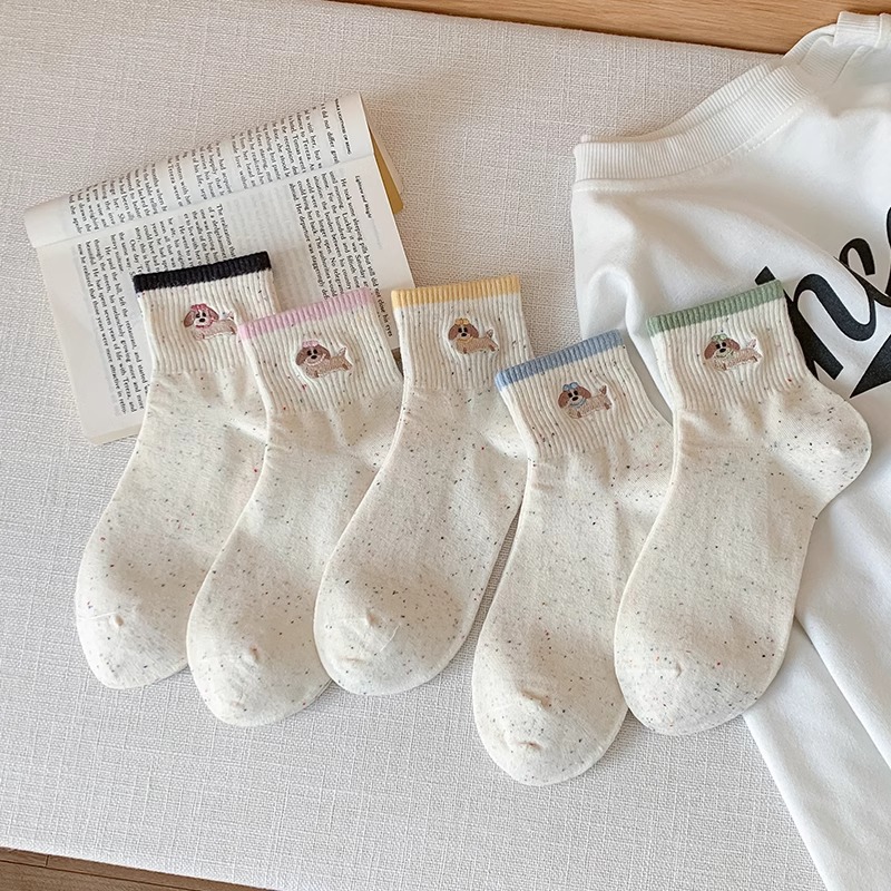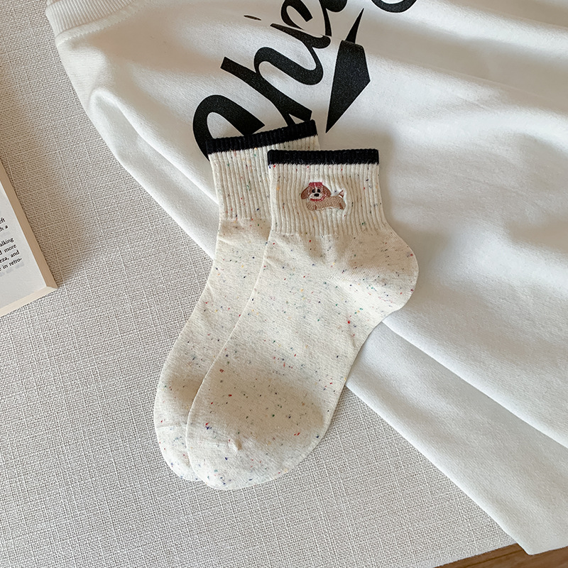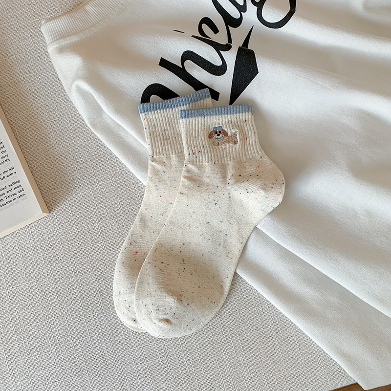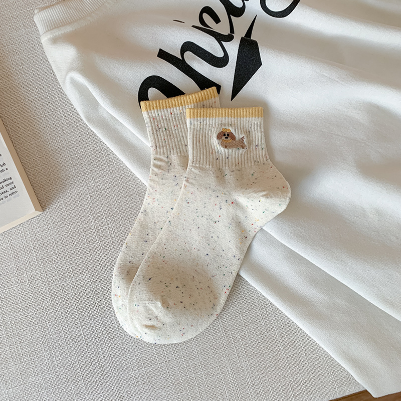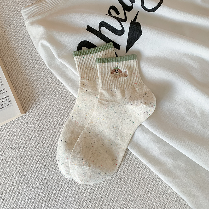 봄과 여름 얇은 흰색 일본 스타일 귀여운 만화 강아지 양말 여성용 짧은 양말 로우 엔드 얕은 입 중형 코튼 보트 양말스토어 가기