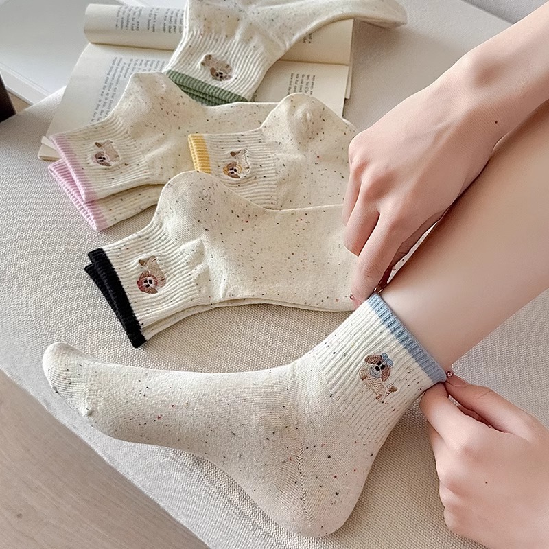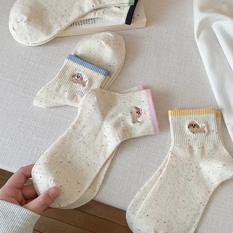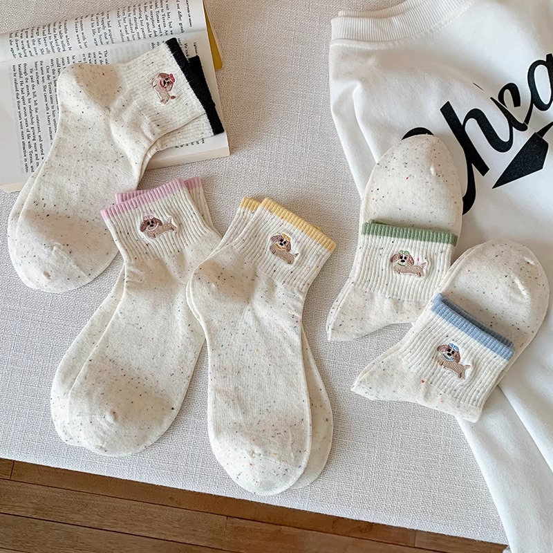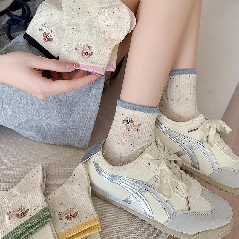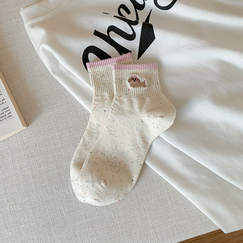 봄과 여름 얇은 흰색 일본 스타일 귀여운 만화 강아지 양말 여성용 짧은 양말 로우 엔드 얕은 입 중형 코튼 보트 양말스토어 가기