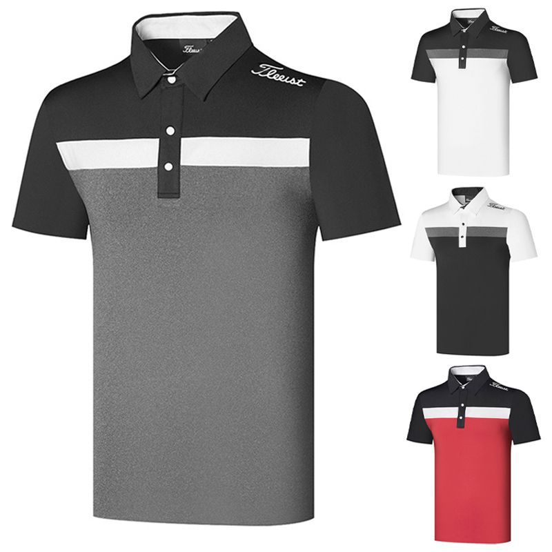 골프 남성 의류 여름 반팔 티셔츠 폴로 셔츠 옷깃 탑 야외 스포츠 레저 빠른 건조 느슨한 저지스토어 가기