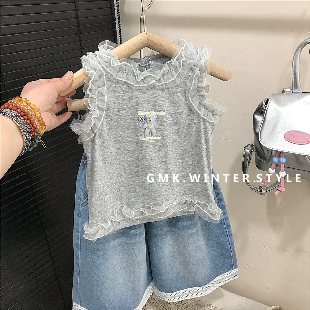 순수한면 여름 얇은 기지 여름 짧은 슬링 여름 어린이 민소매 최고 대외 무역 착용 소녀 조끼스토어 가기