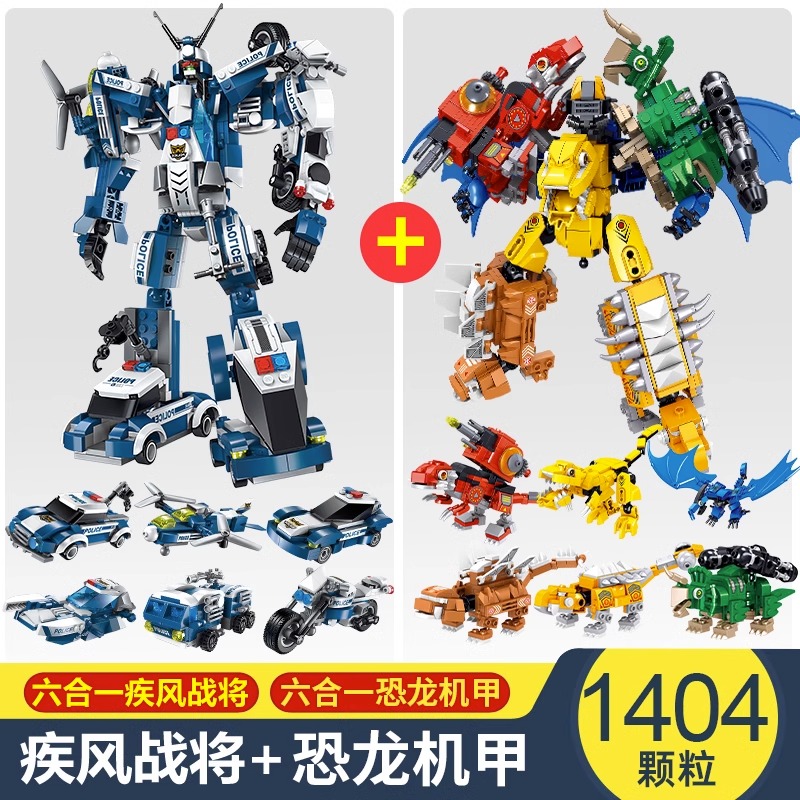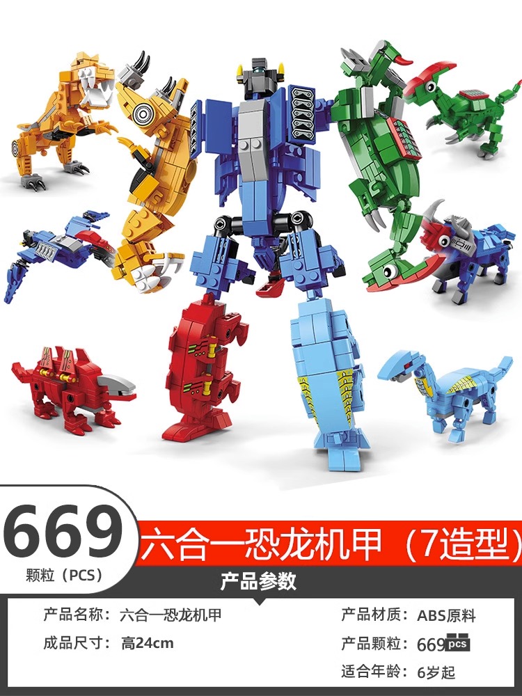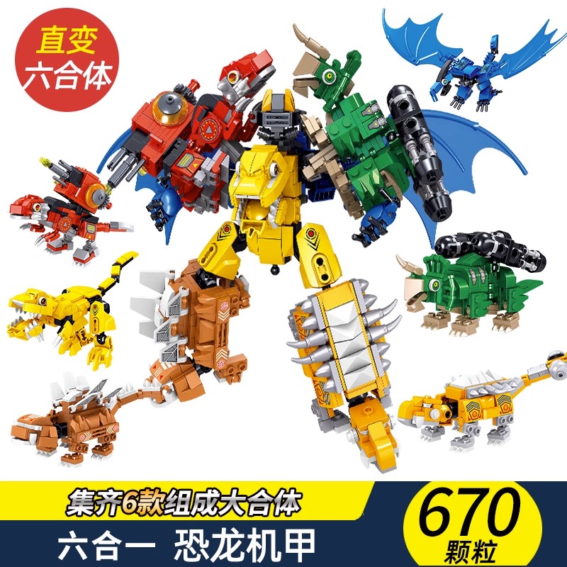 • 6-in-1 공룡 메카(7가지 철자법) - 669개의 입자로 구성된 특수 컬러 백