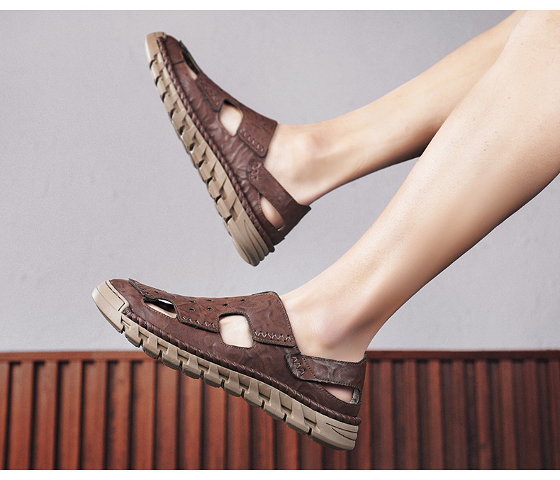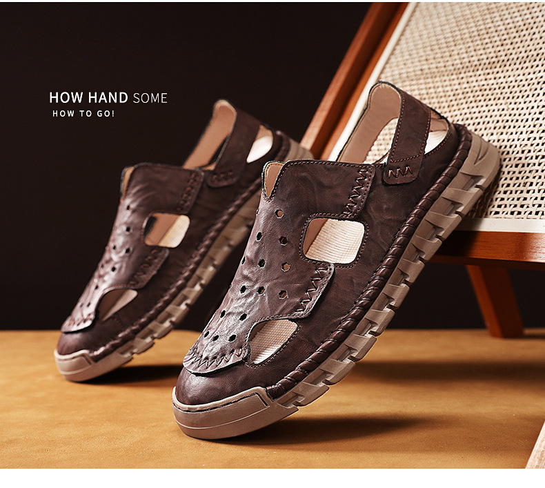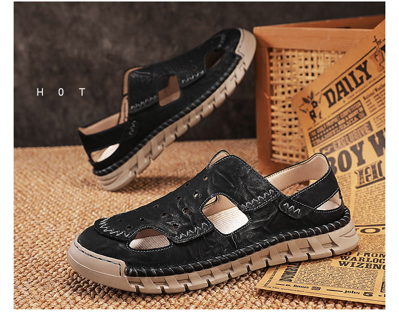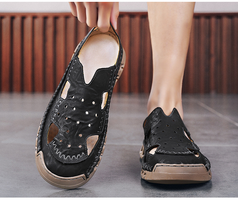 샌들 대형 여름 통기성 캐주얼 슬립 온 소프트 솔 드라이빙 슈즈 남성용 새로운 홀 비치 슈즈 대형 46스토어 가기