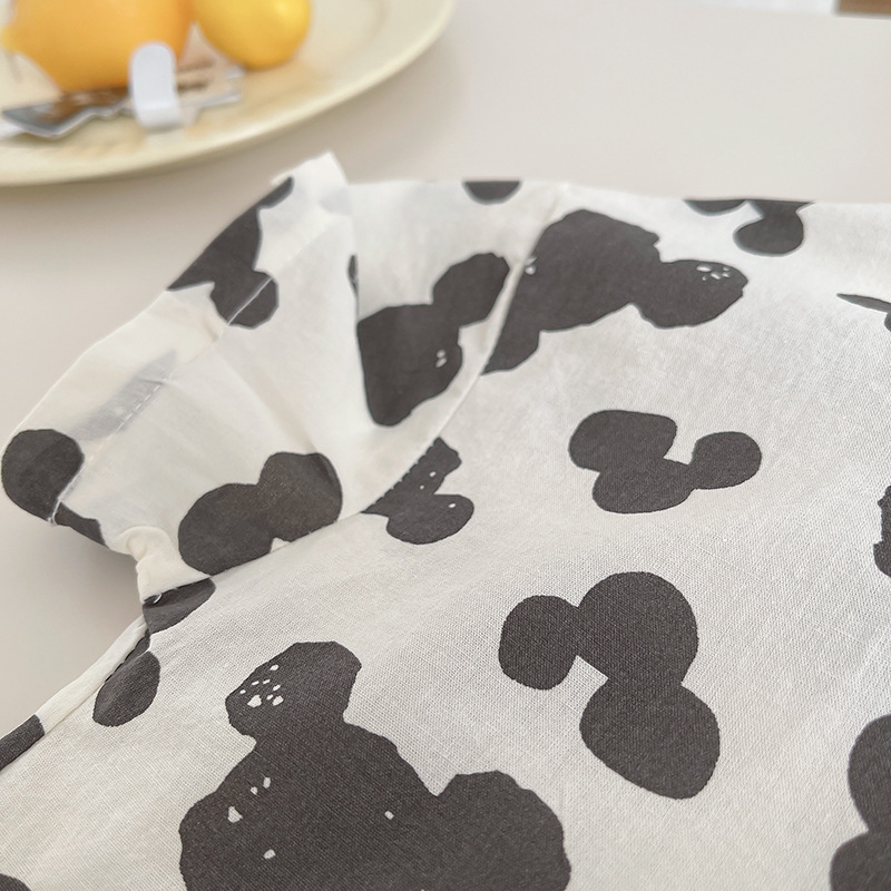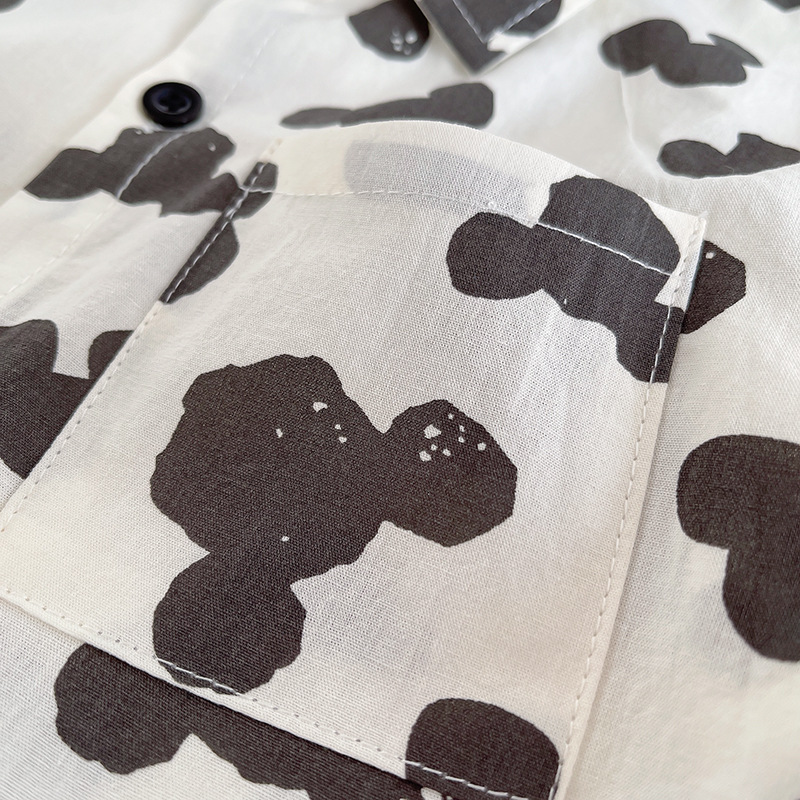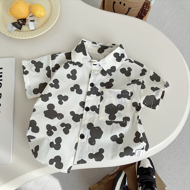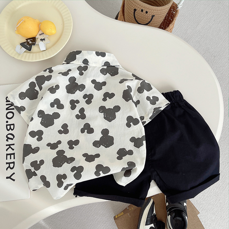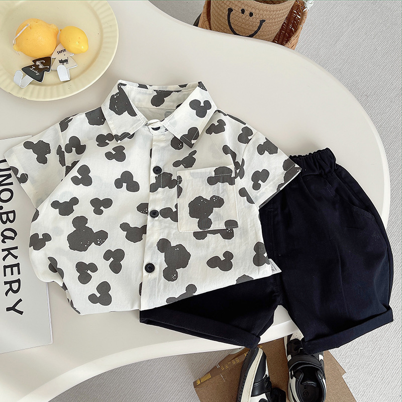 2025 새로운 어린이 반팔 옷깃 세트 소년의 만화 풀 프린트 셔츠 쿨 핸섬 캐주얼 반바지 투피스 트렌디스토어 가기