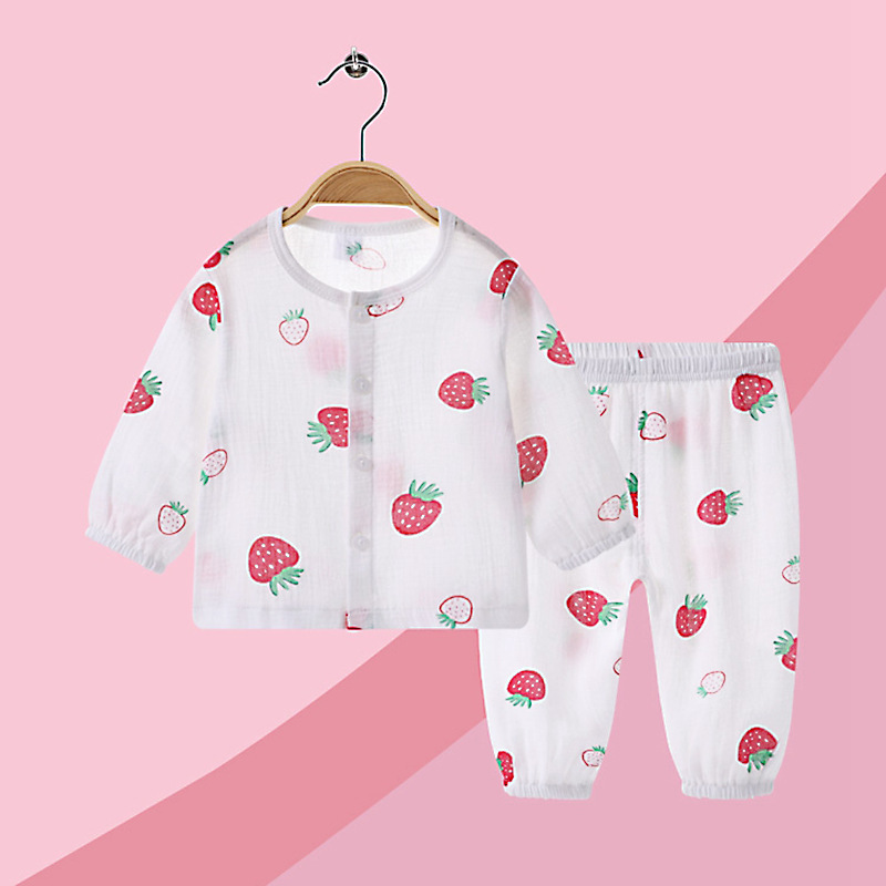 봄과 가을 코튼 거즈 아기 잠옷 세트 아기 긴 소매 홈 옷 신생아 잠옷 봄과 가을스토어 가기