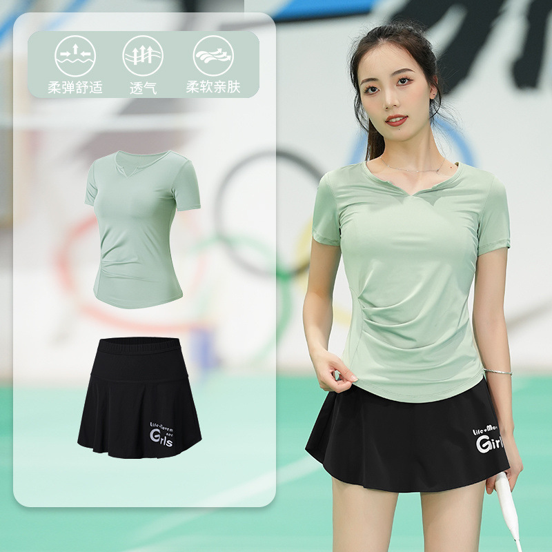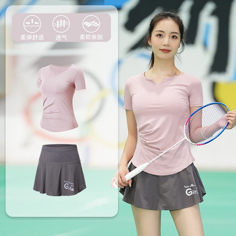 여성용 배드민턴 슈트 여름 속건성 트레이닝 슈트 v 넥 통기성 반팔 테니스 운동복 피트니스 러닝 속건성