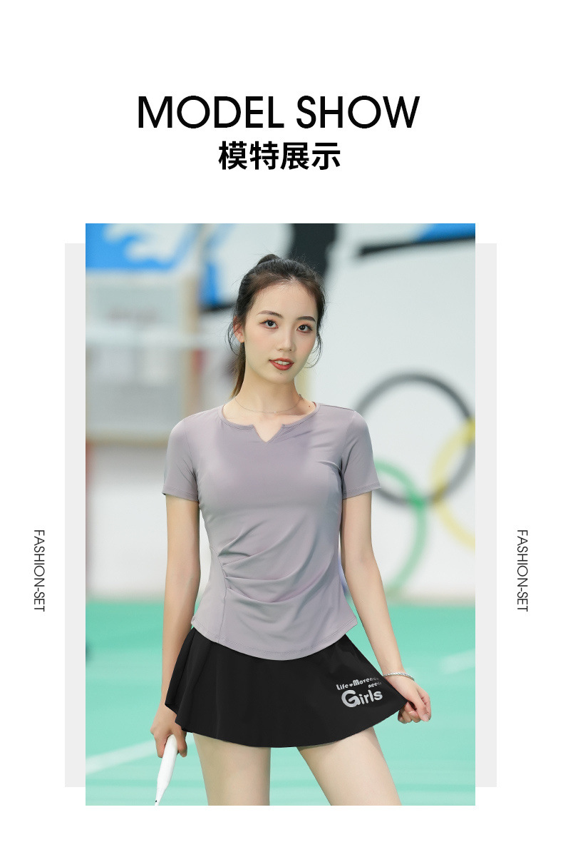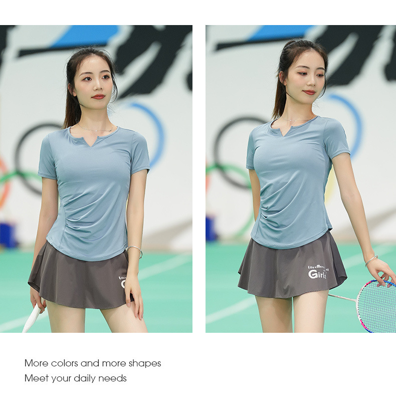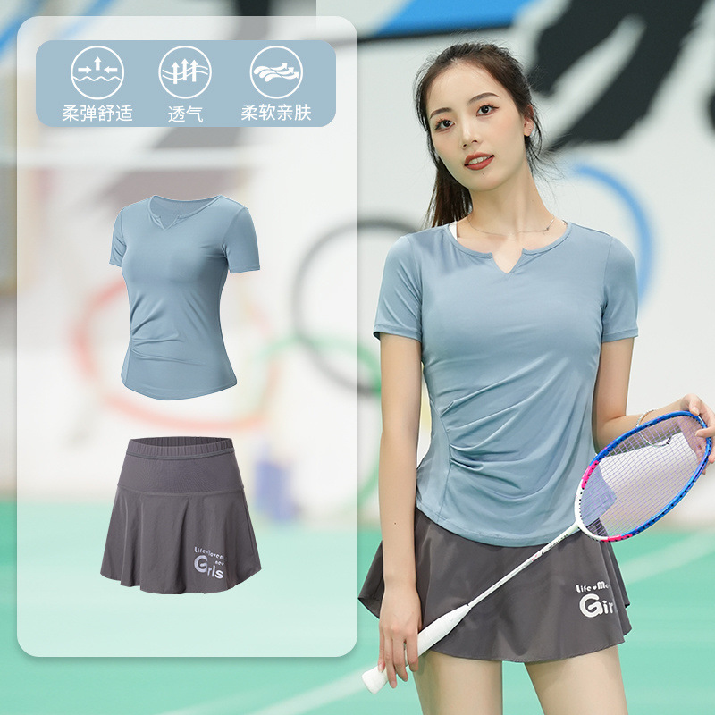여성용 배드민턴 슈트 여름 속건성 트레이닝 슈트 v 넥 통기성 반팔 테니스 운동복 피트니스 러닝 속건성스토어 가기