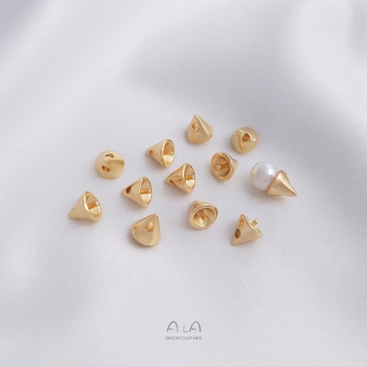 14K 금으로 채워진 색상 보존 반 구멍 비드 펜던트 홀더 크리스탈 진주 원추형 펜던트 비드 홀더 수제 diy 쇄골 목걸이 액세서리