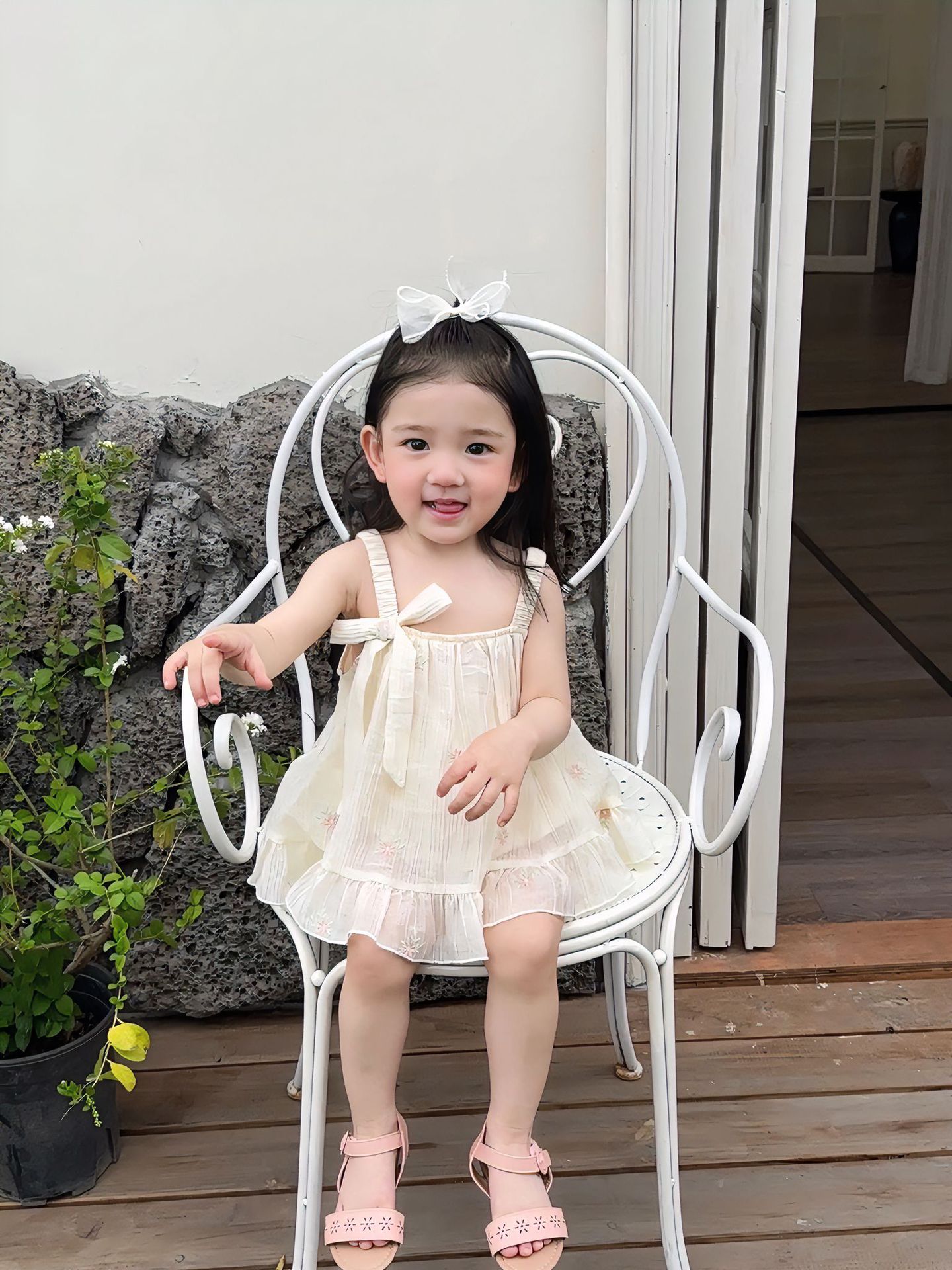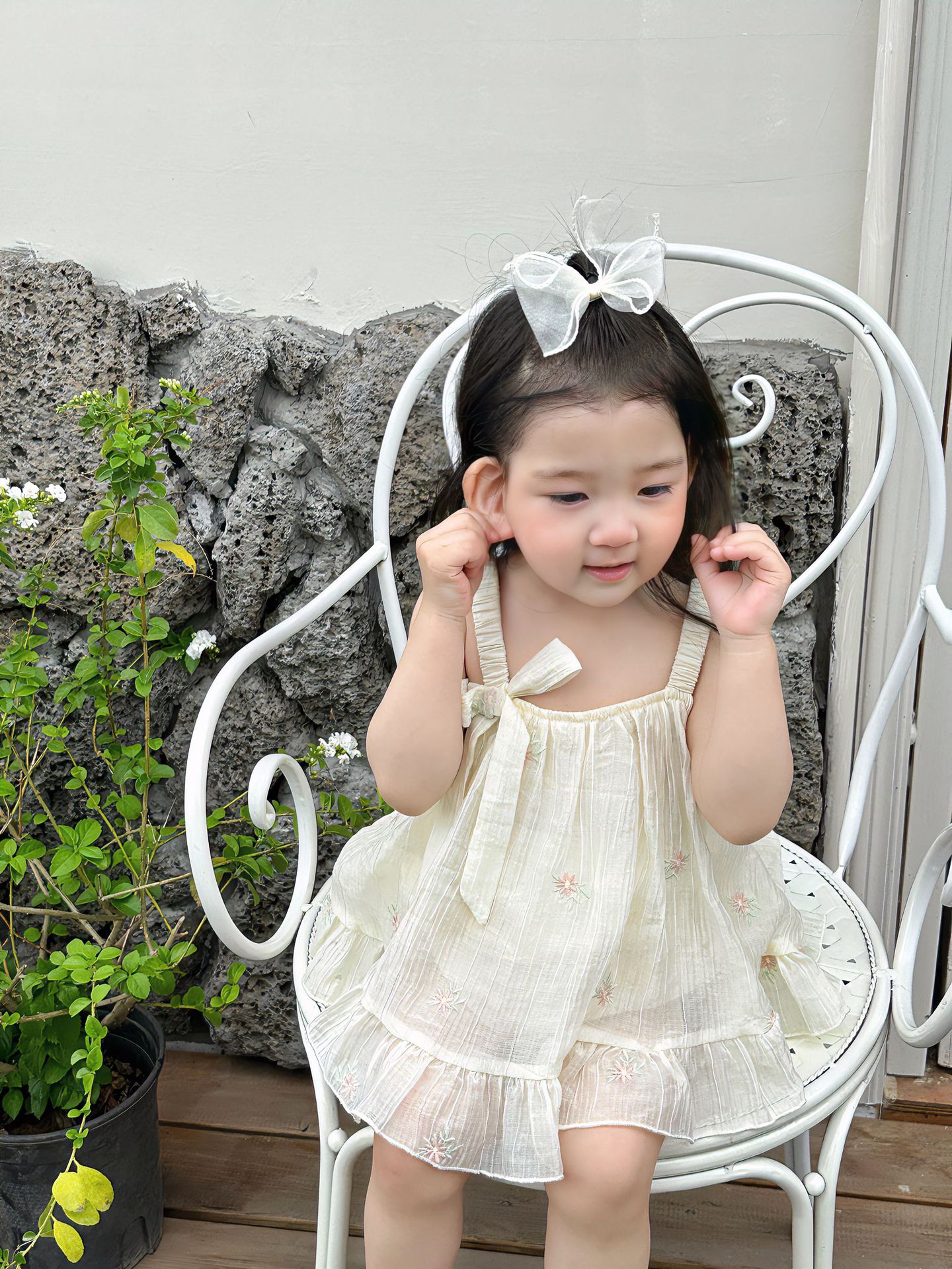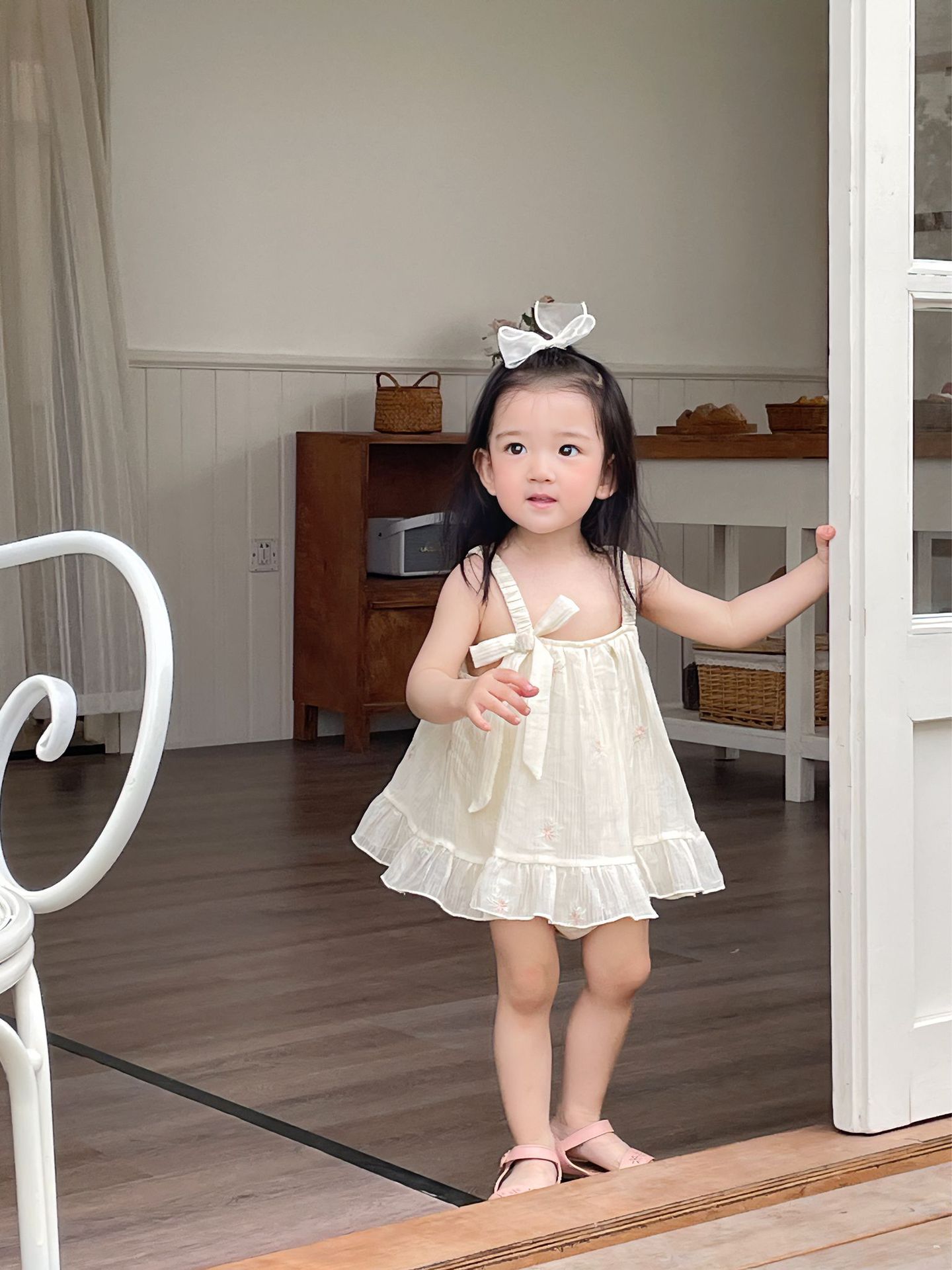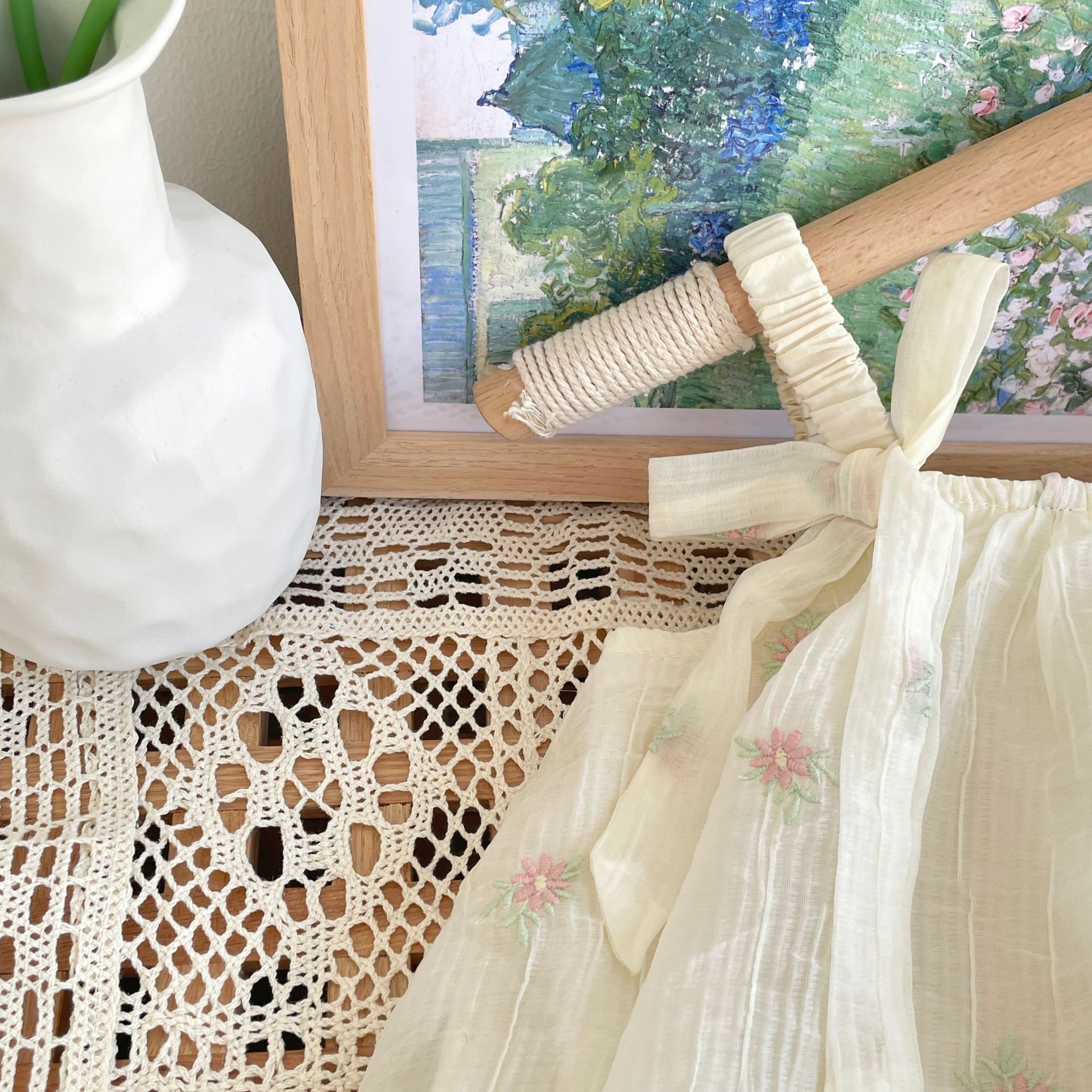 재고 여름 자수 아기 거즈 스커트 등반 의류 신생아 메쉬 랩 방귀 옷 클래스 A Ins 스타일 등반 의류스토어 가기