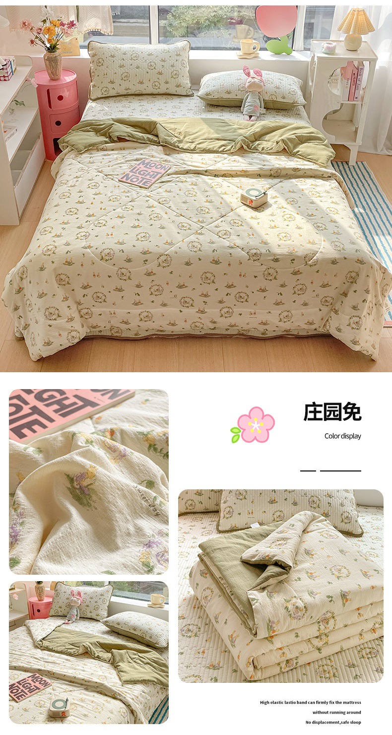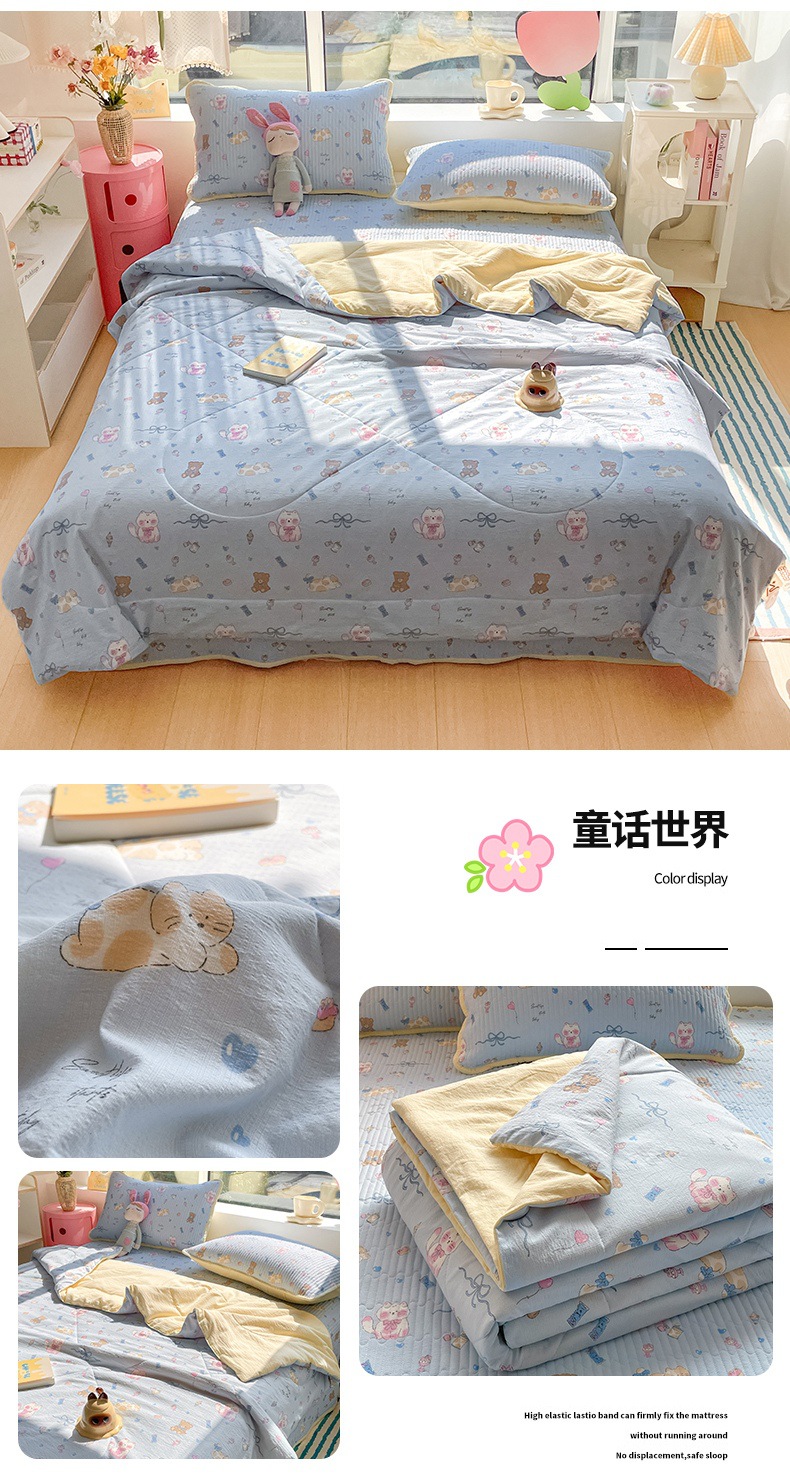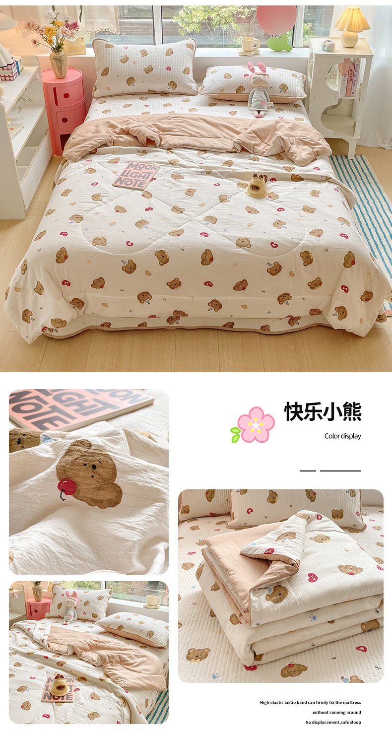 클래스 A 모성 및 유아 등급 클라우드-센스 더블 레이어 원사 침대 커버 여름 퀼트 4 피스 세트 곰 에어컨 이불 여름 얇은 이불 면화