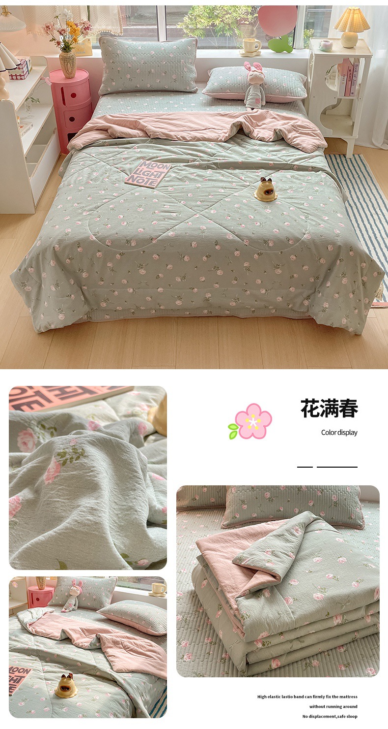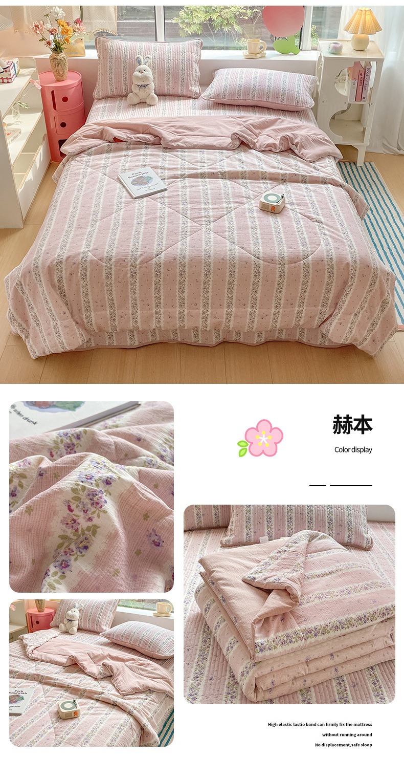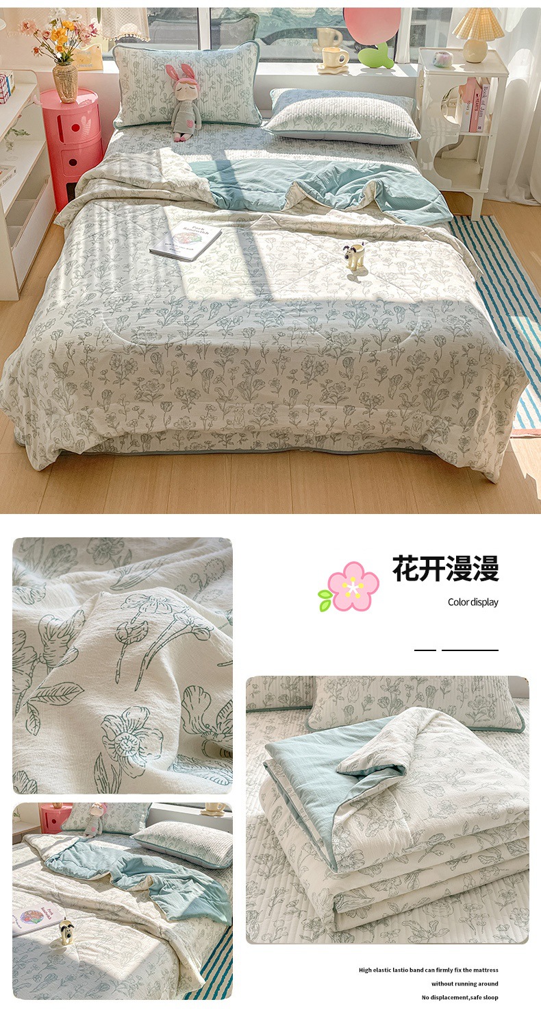 클래스 A 모성 및 유아 등급 클라우드-센스 더블 레이어 원사 침대 커버 여름 퀼트 4 피스 세트 곰 에어컨 이불 여름 얇은 이불 면화