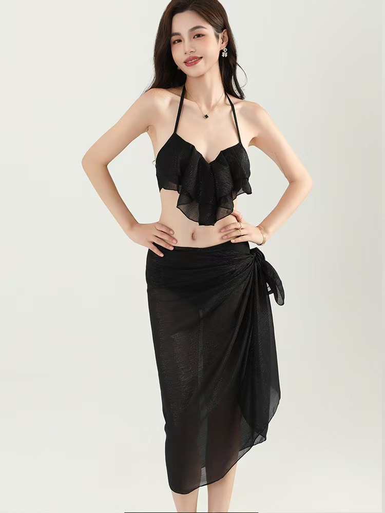 2025 새로운 수영복 여성 섹시한 레이스 비치 비키니 온천 휴가 푸시 업 3 피스 수영복 도매