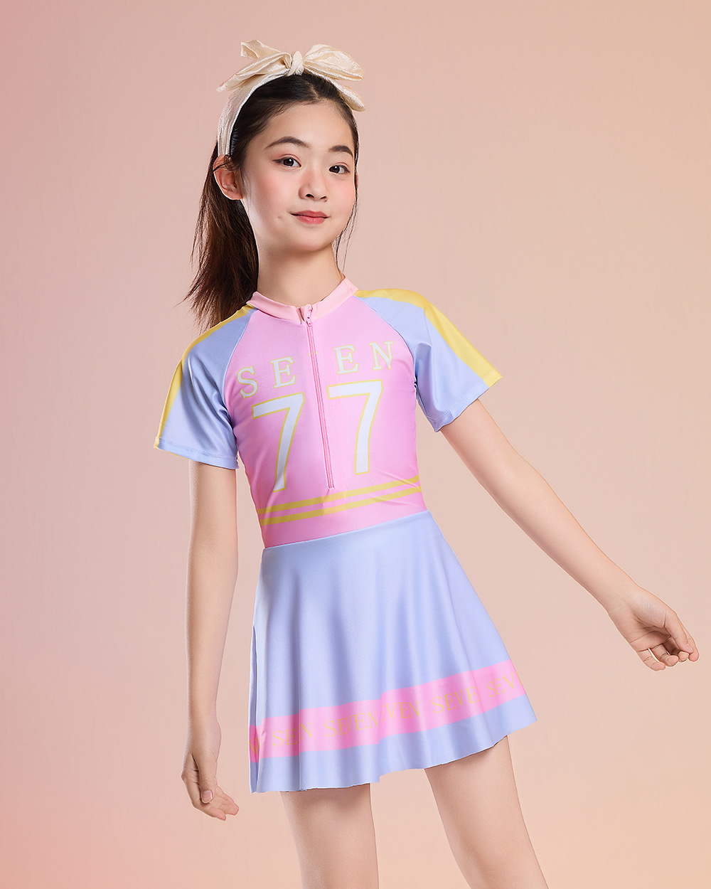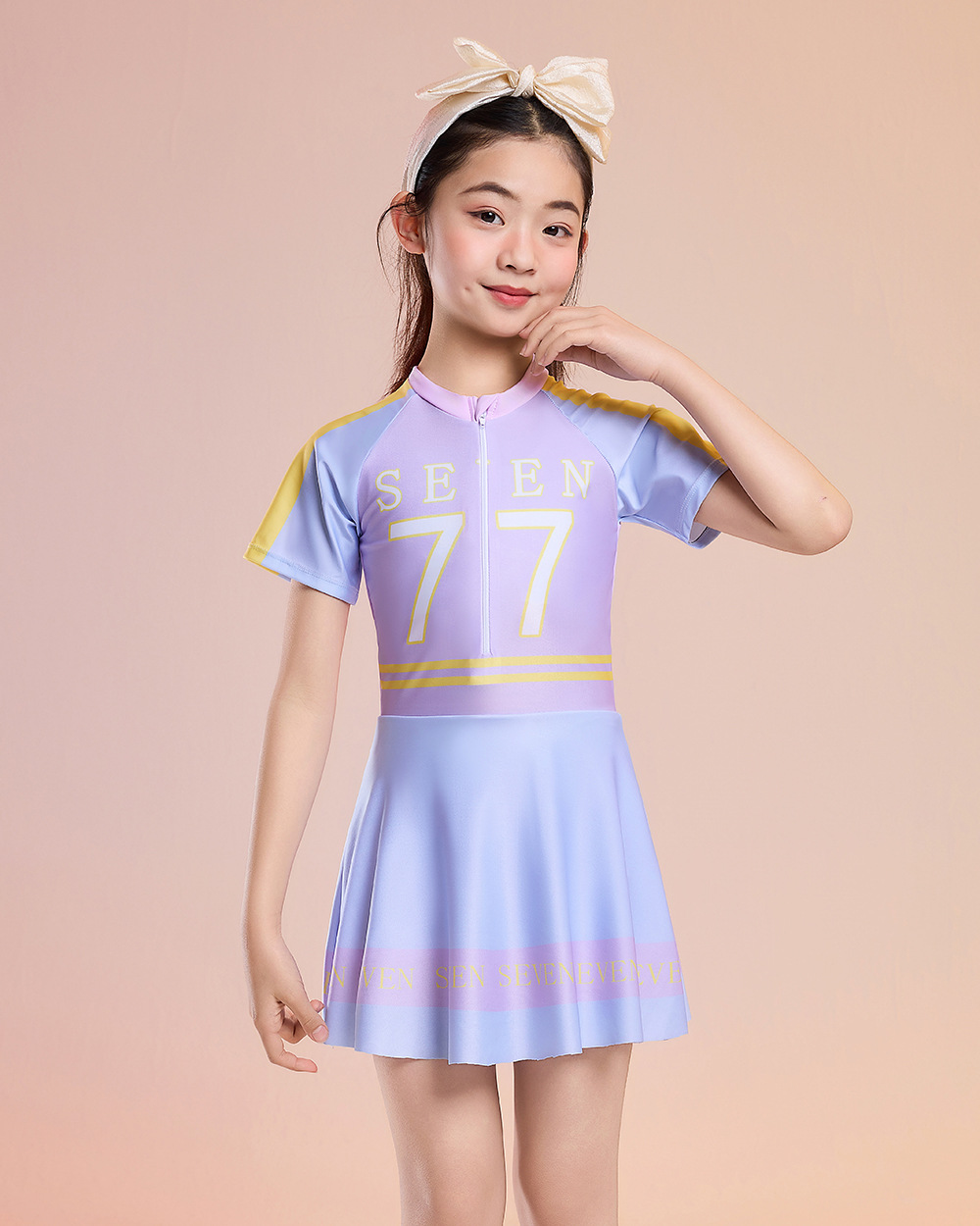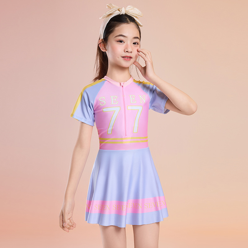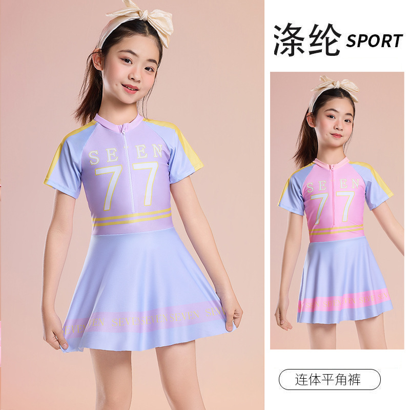 6-9 세 어린이 수영복 소녀 2025 새로운 스타일 소녀 중년 보수적 인 원피스 온천 전문 훈련 공주스토어 가기