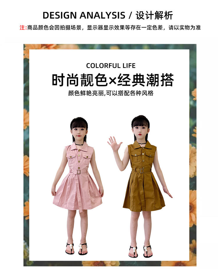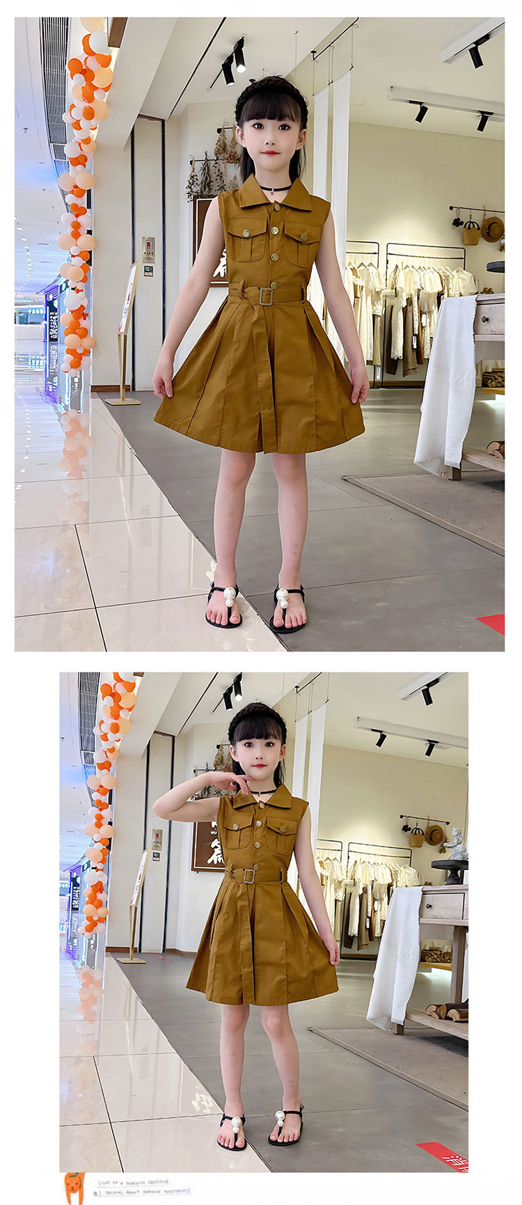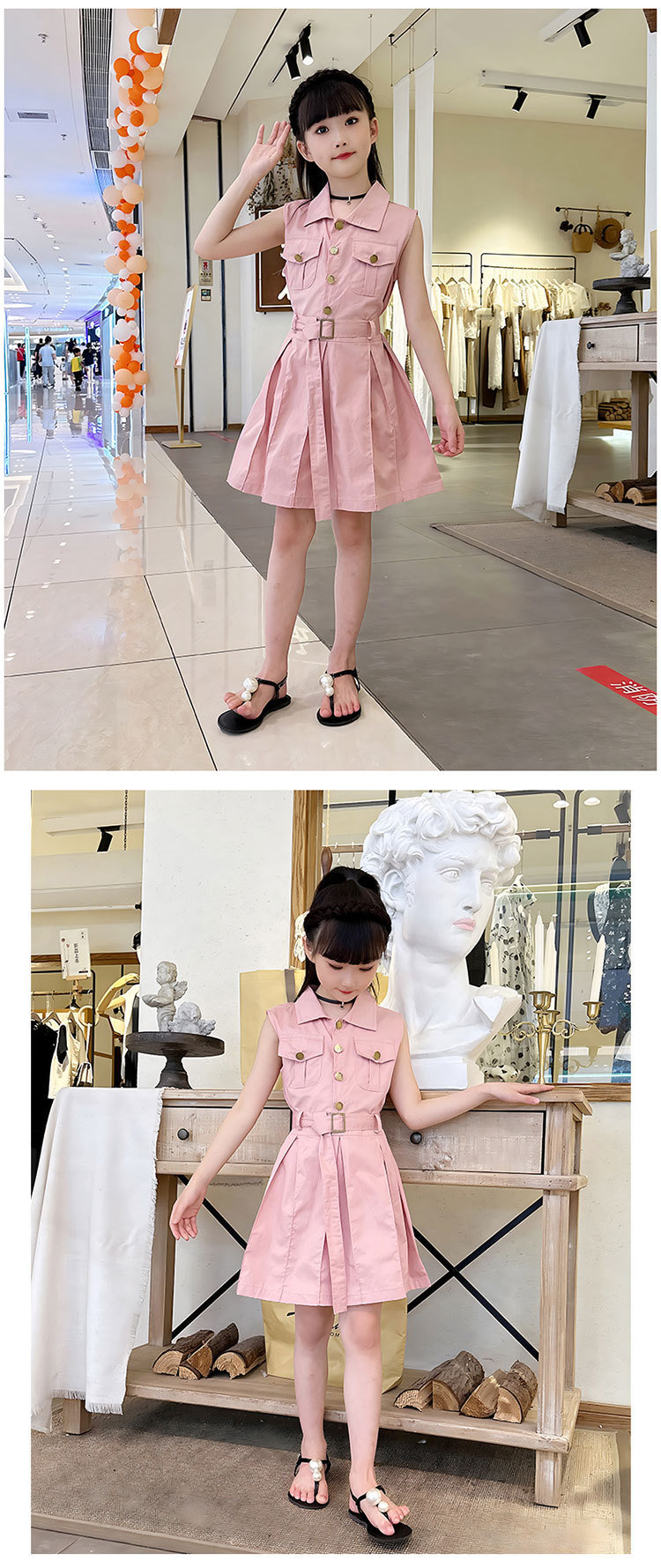 여자 작업복 면화 드레스 2025 여름 새로운 스타일 중대형 어린이 스커트 어린이 공주 스커트 여자 스커트