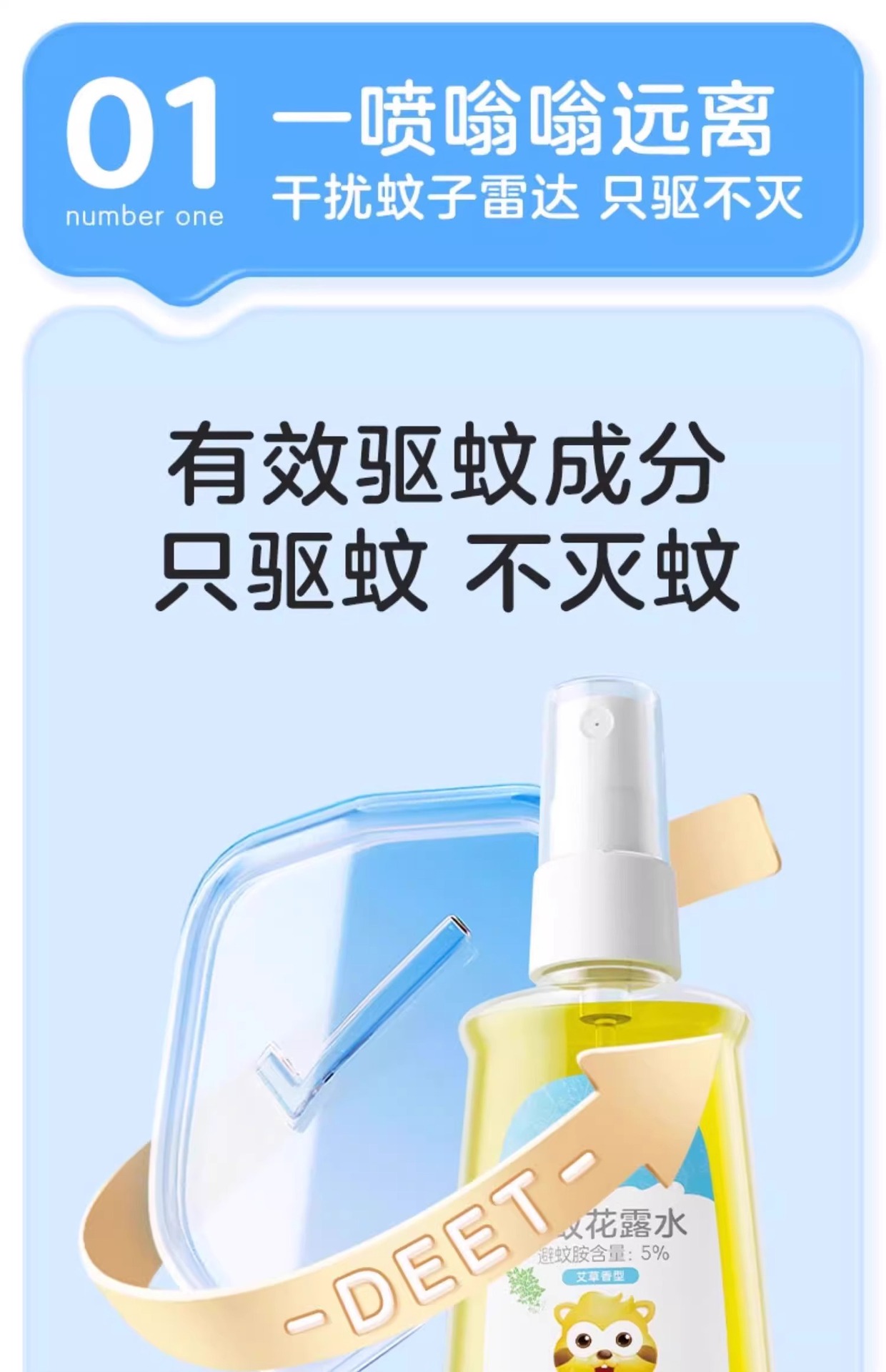 작은 너구리 화장실 물 모기 방충제 야외 휴대용 스프레이 어린이 모기 방지 액체 모기 물린 DEET