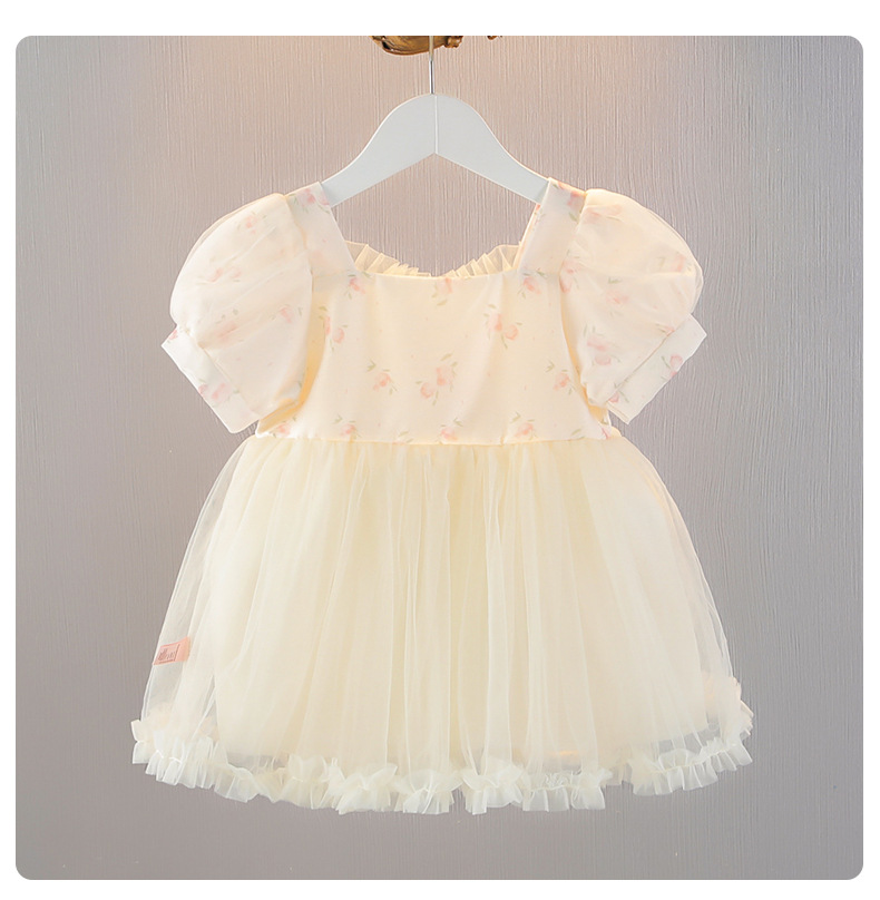 소녀 원피스 여름 어린 소녀의 공주 원피스 여름 반팔 2025 새로운 스타일 소녀 아기 달콤한 베일 원피스스토어 가기