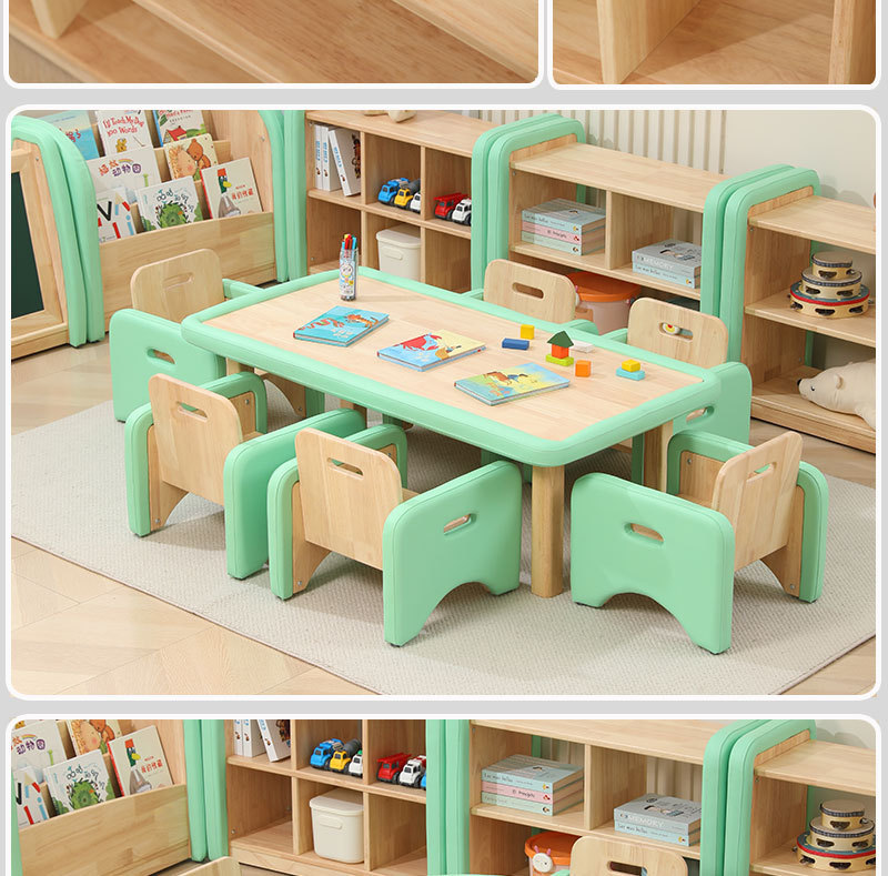 유치원 보육 공간 코너 캐비닛 테이블과 의자 어린이 단단한 나무 부드러운 장난감 캐비닛 더블 레이어 스토리지 캐비닛 몬테소리 교육 보조 캐비닛