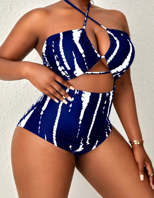 국경을 넘나드는 새로운 유럽과 미국의 비키니 백리스 홀터넥 원피스 투피스 디지털 프린트 대형 수영복 비키니스토어 가기