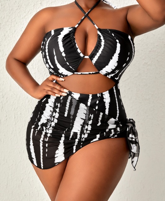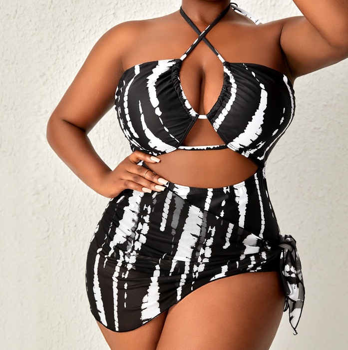 국경을 넘나드는 새로운 유럽과 미국의 비키니 백리스 홀터넥 원피스 투피스 디지털 프린트 대형 수영복 비키니