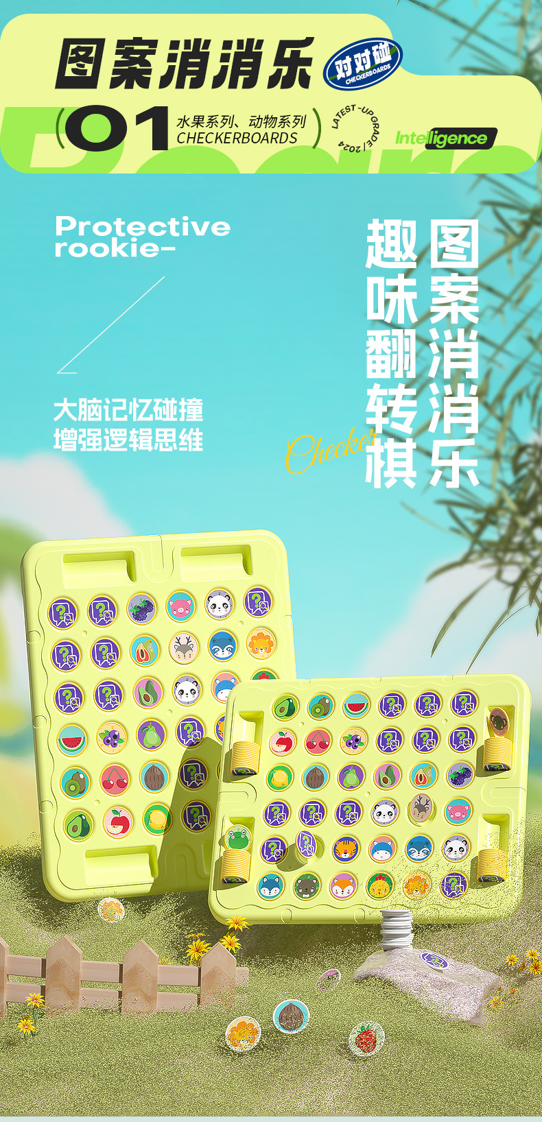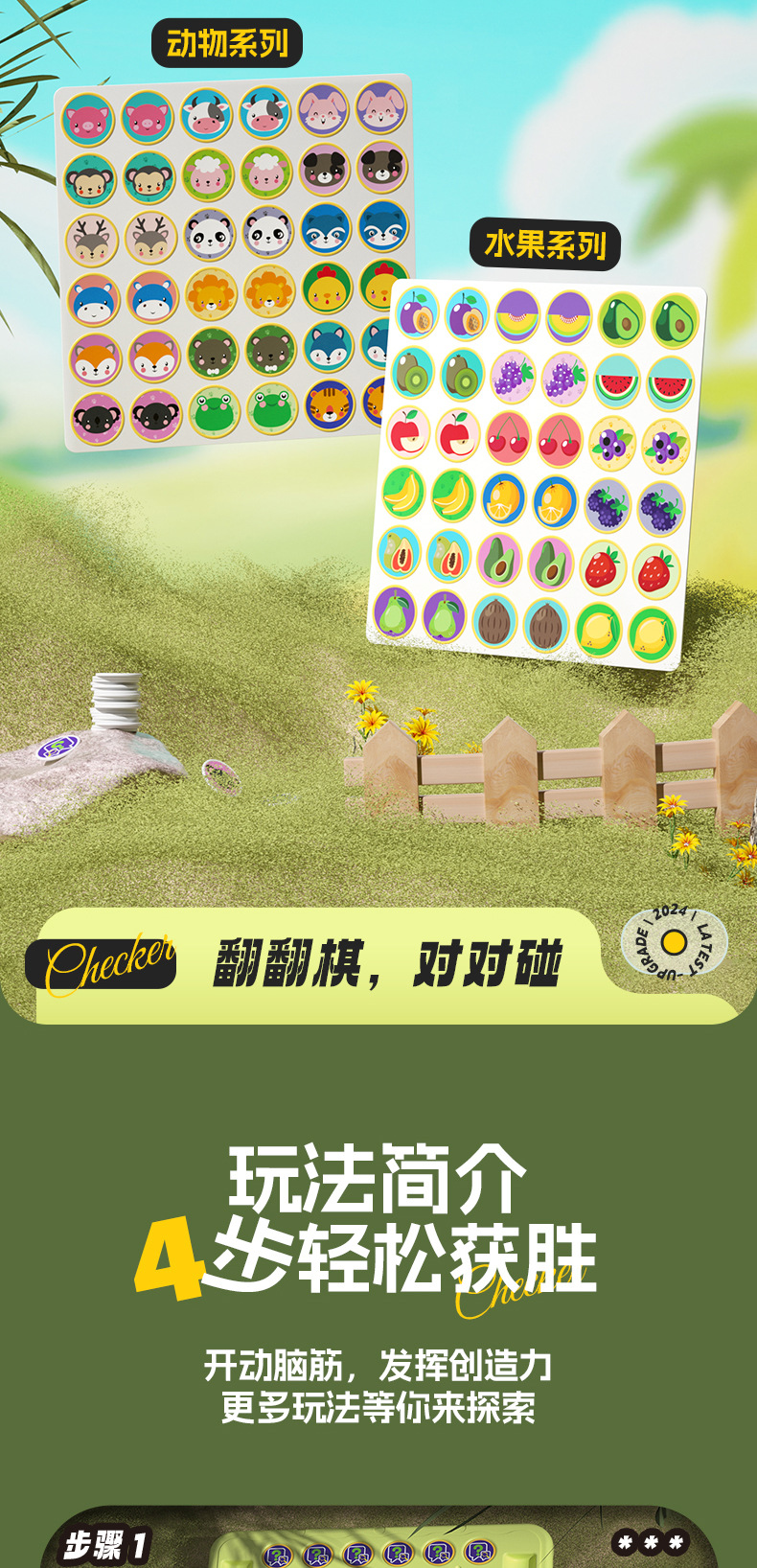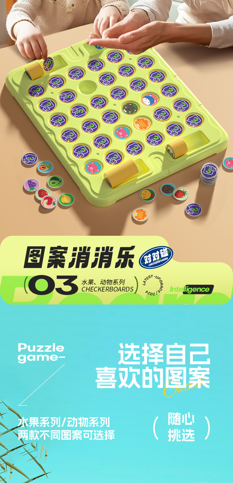 • 초대형 사이즈】재미있는 과일 + 동물 플립 체스 컬러 박스