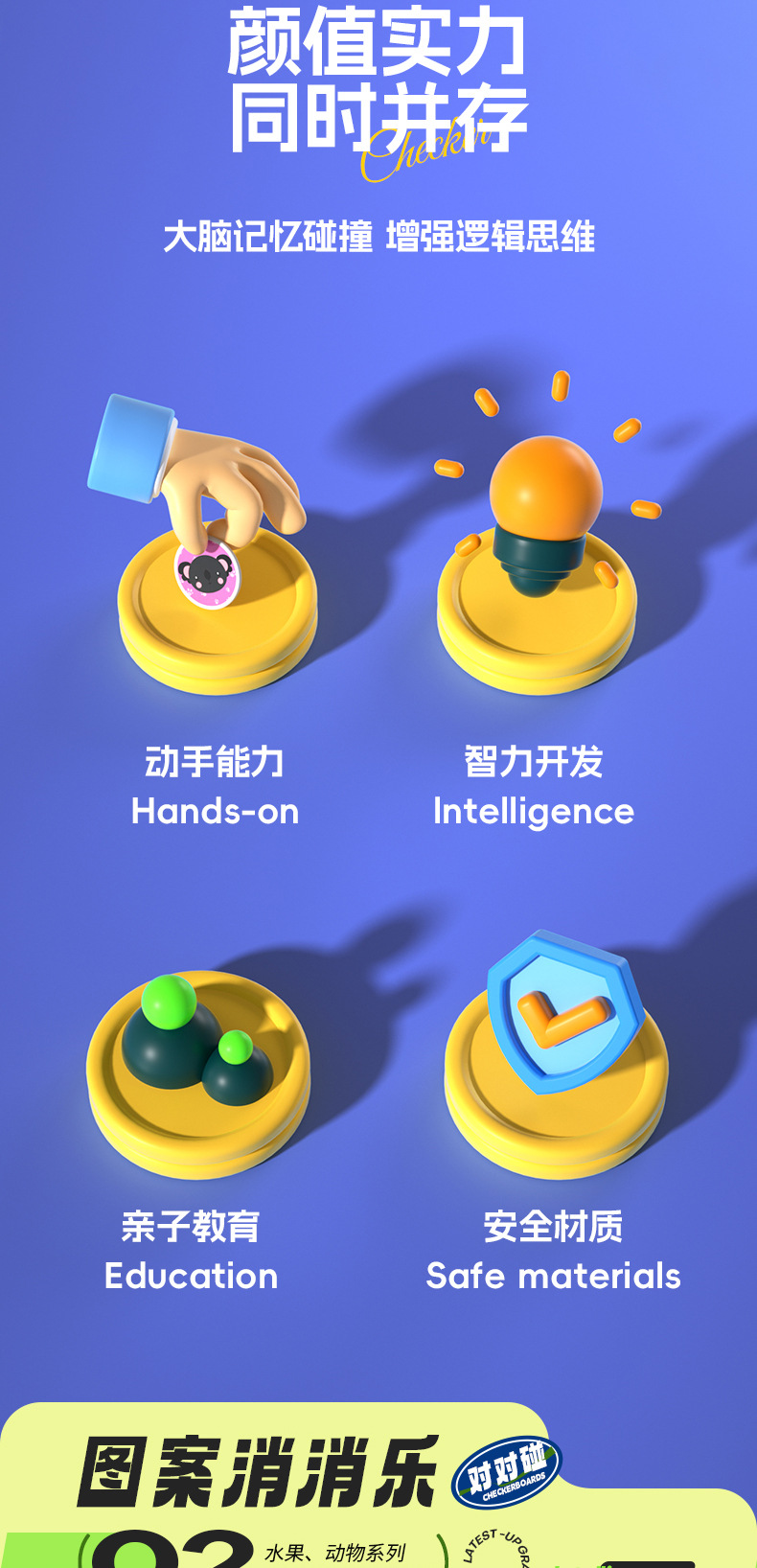 더블 배틀 플립 체스 어린이 부모-어린이 페어 터치 교육 보드 장난감 논리적 사고 데스크탑 체커 게임스토어 가기