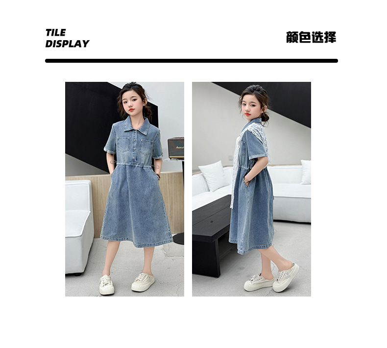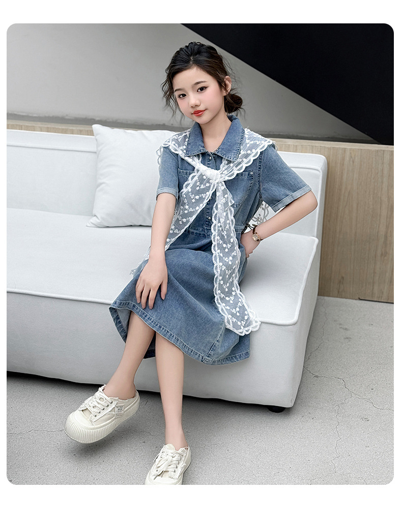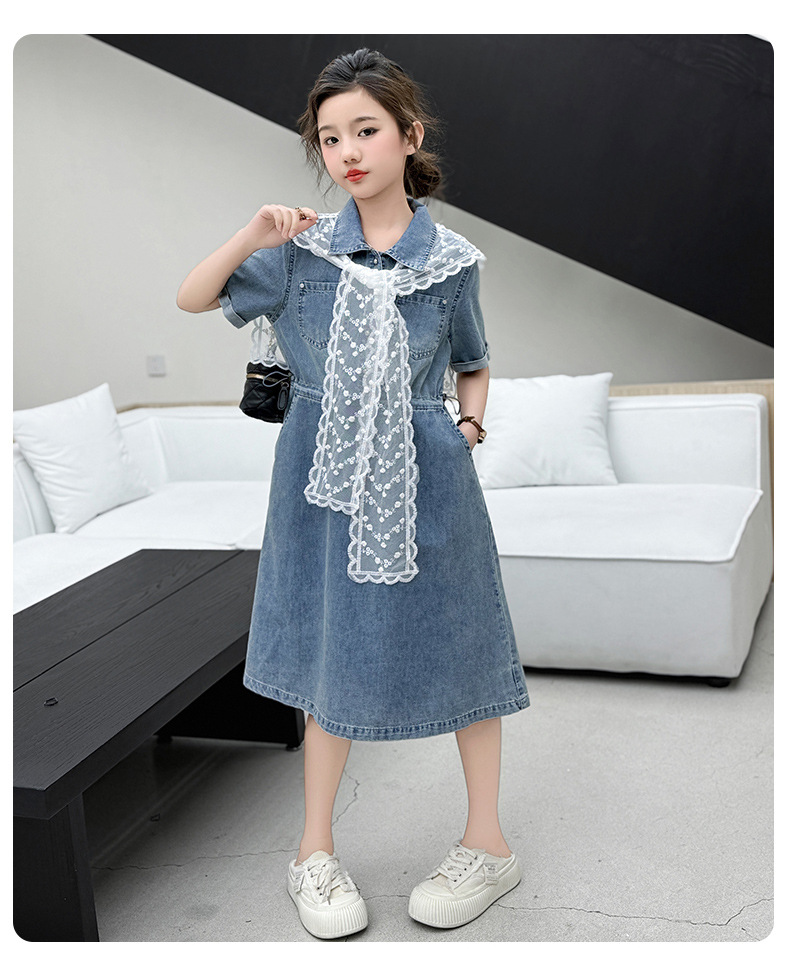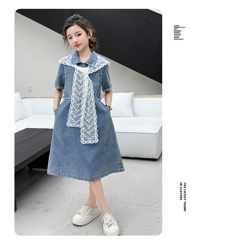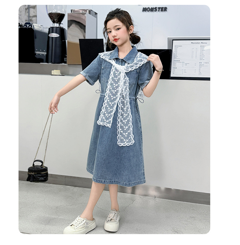 소녀 데님 원피스 여름 얇은 2025 새로운 어린이 여름 원피스 서양식 유행 반팔 여자 치마