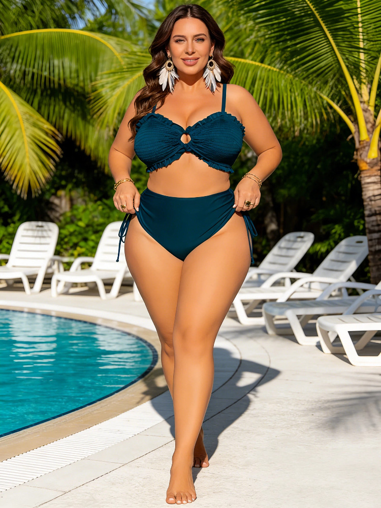 2026 크로스보더 여성용 대형 사이즈 수영복, 분리형 비키니, 탈부착 가능한 어깨끈, 섹시한 하이웨이스트 비키니, 휴가용 수영복