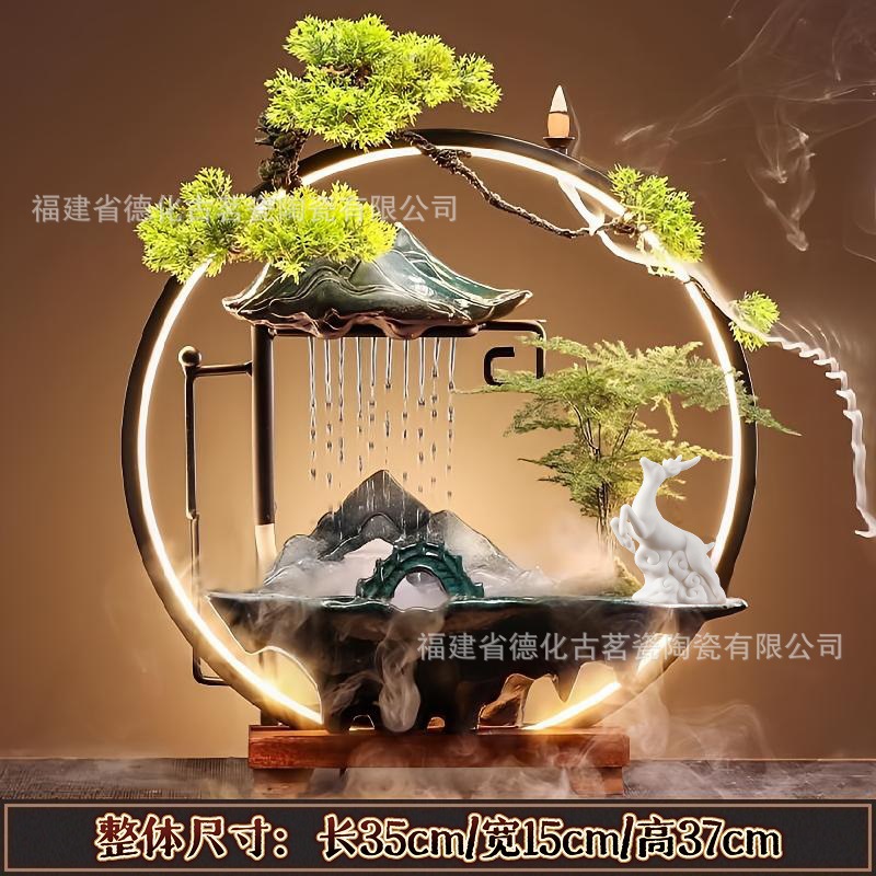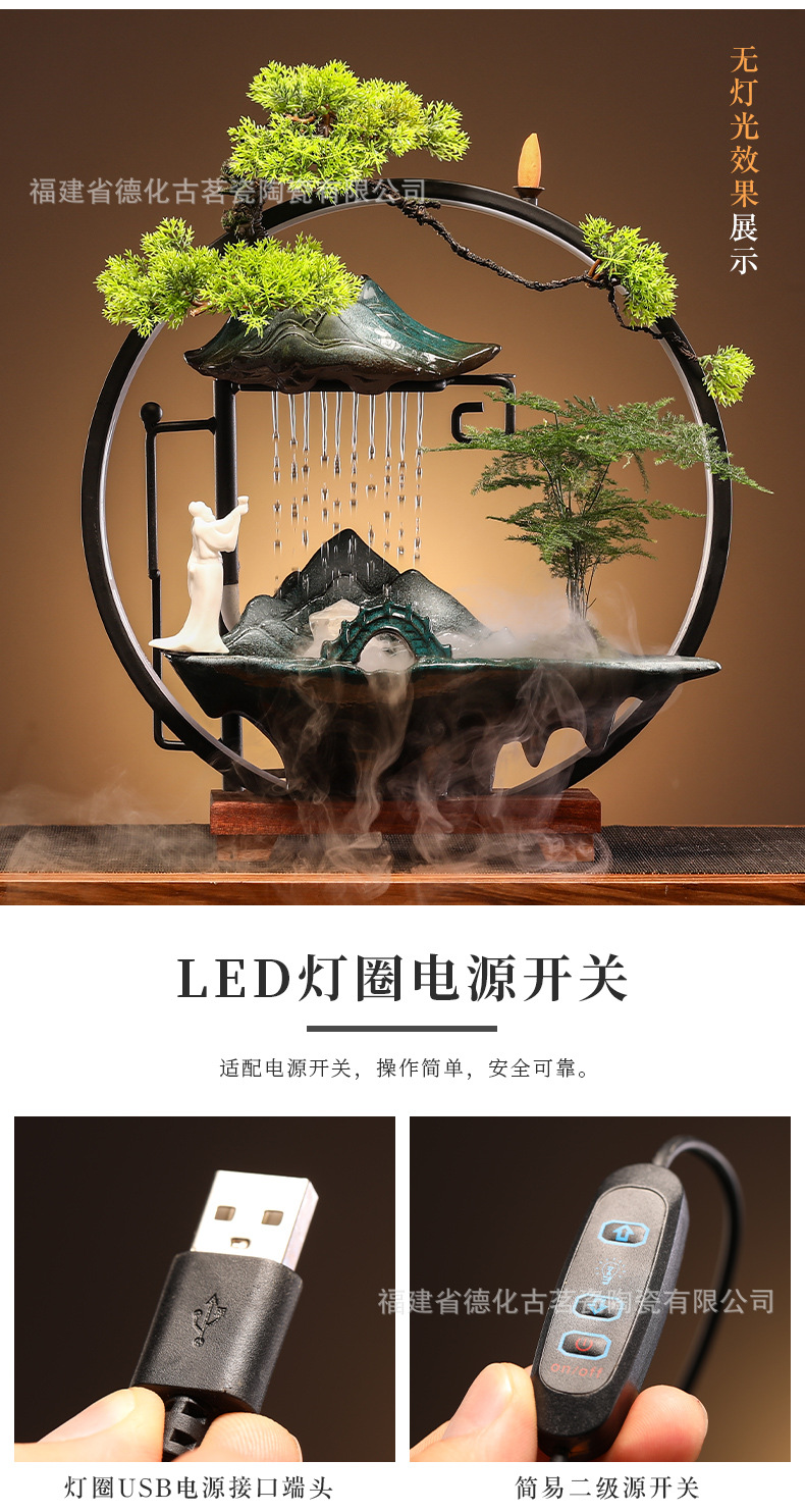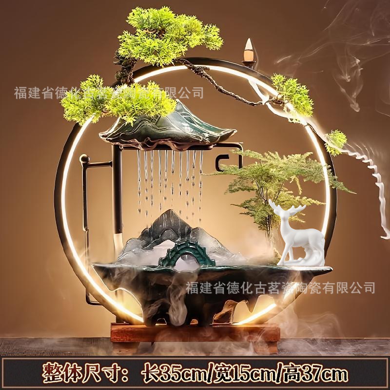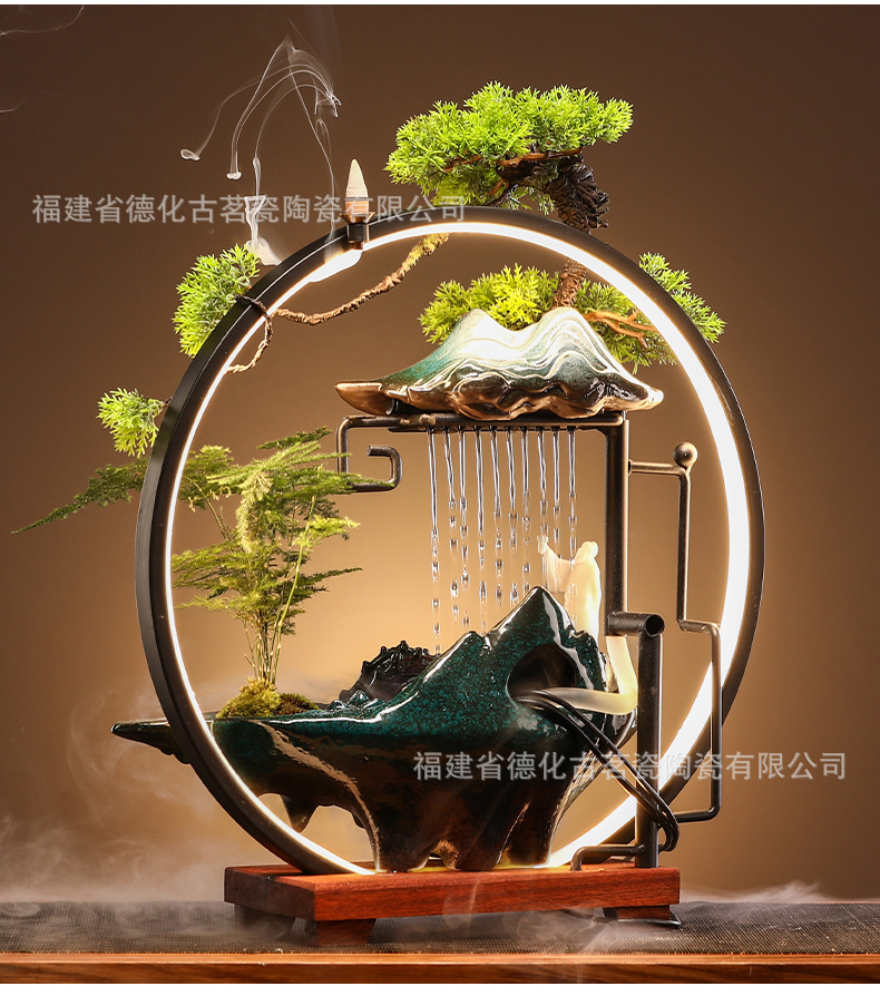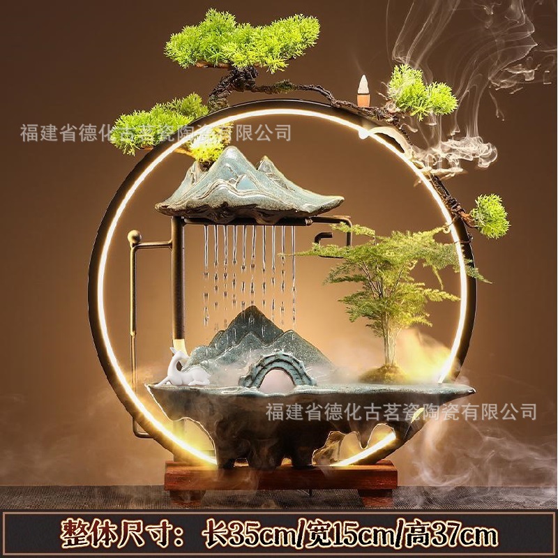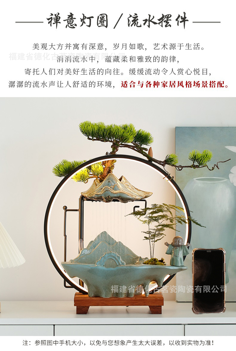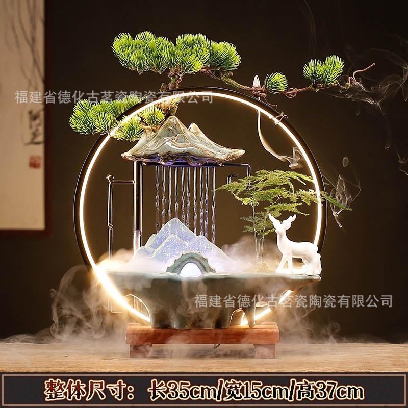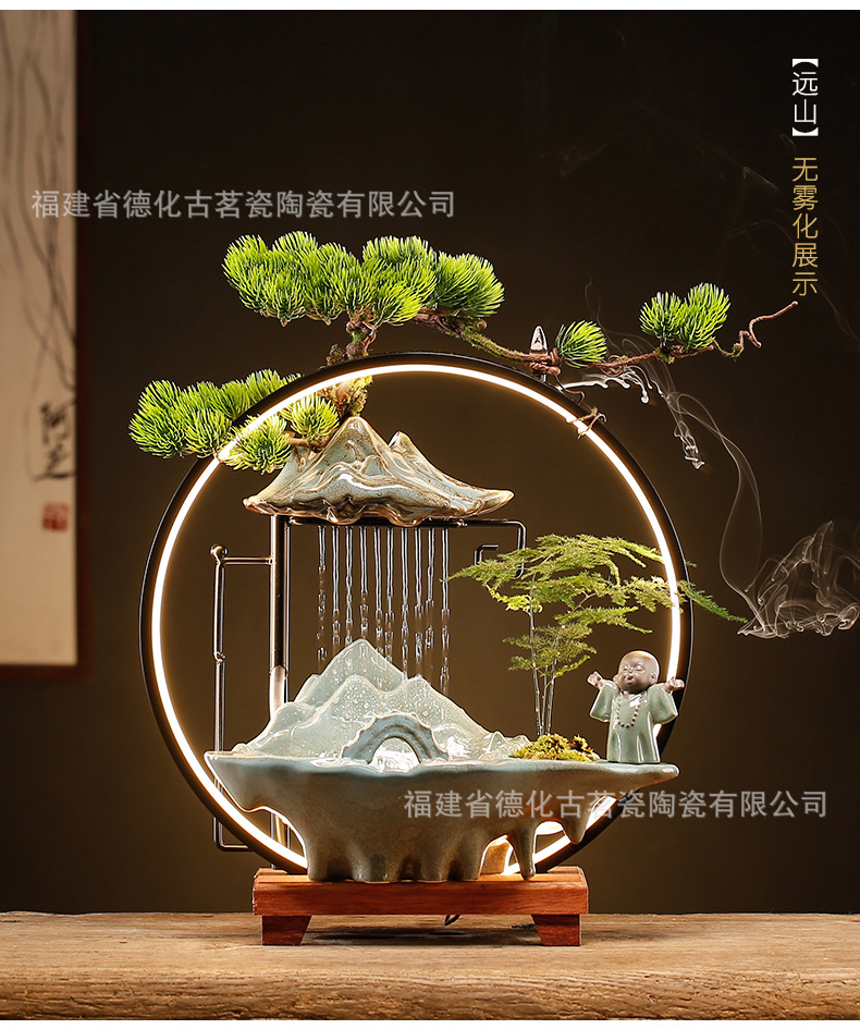 세라믹 순환수 장식품, 거실, 서재, 다실 분위기 연출용, 인공산수 분수, 상운 분무형스토어 가기