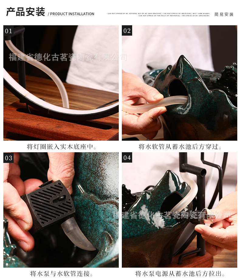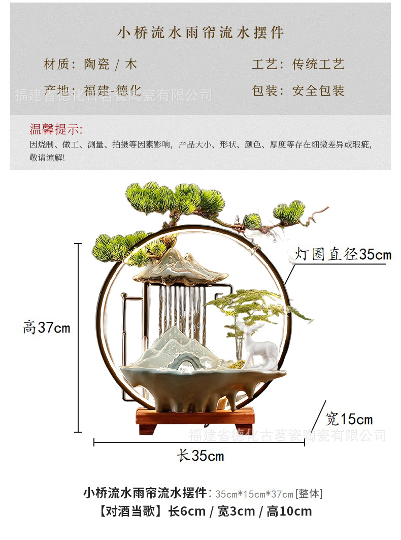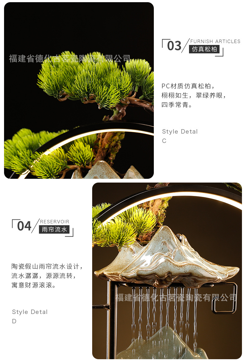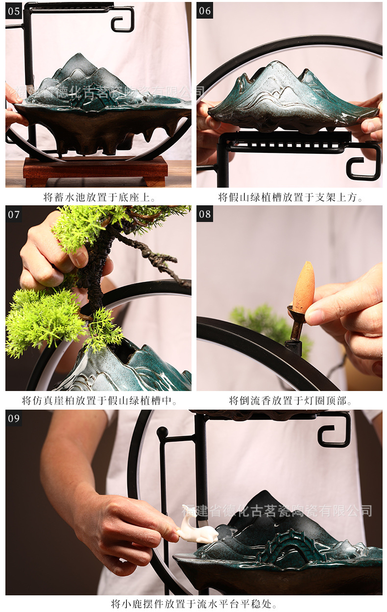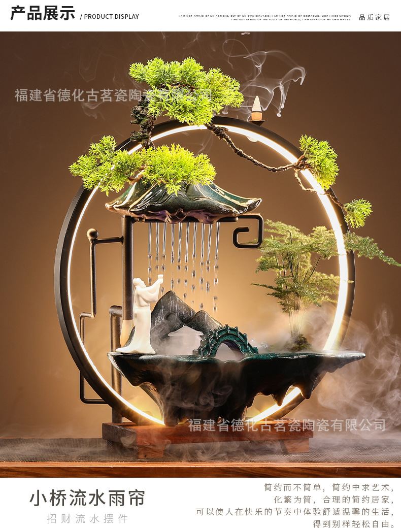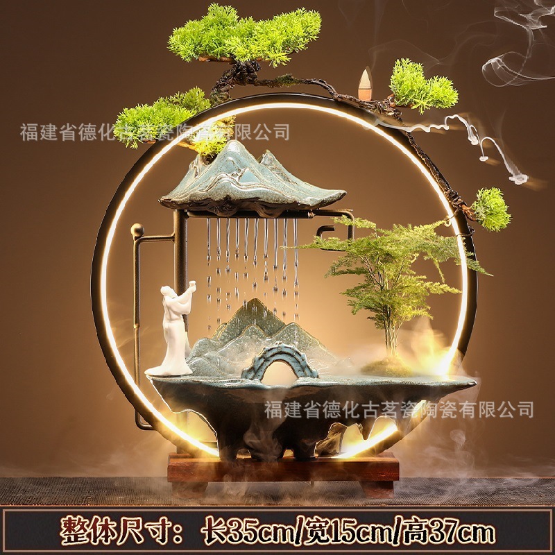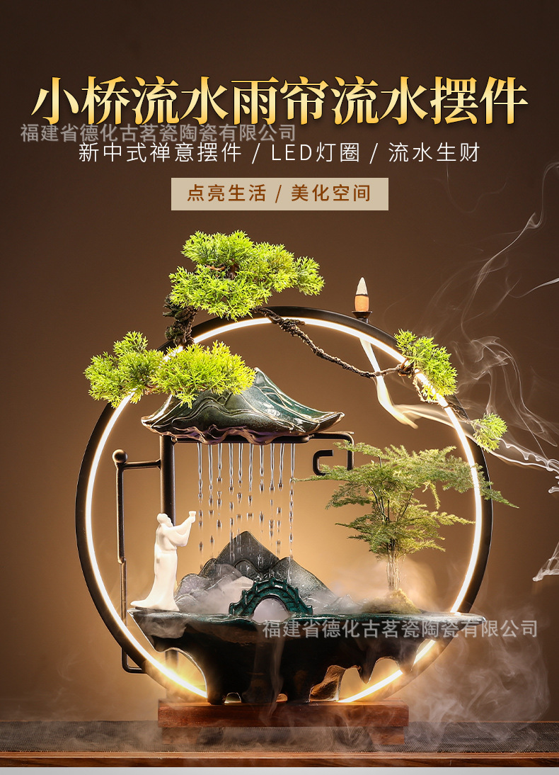 세라믹 순환수 장식품, 거실, 서재, 다실 분위기 연출용, 인공산수 분수, 상운 분무형스토어 가기