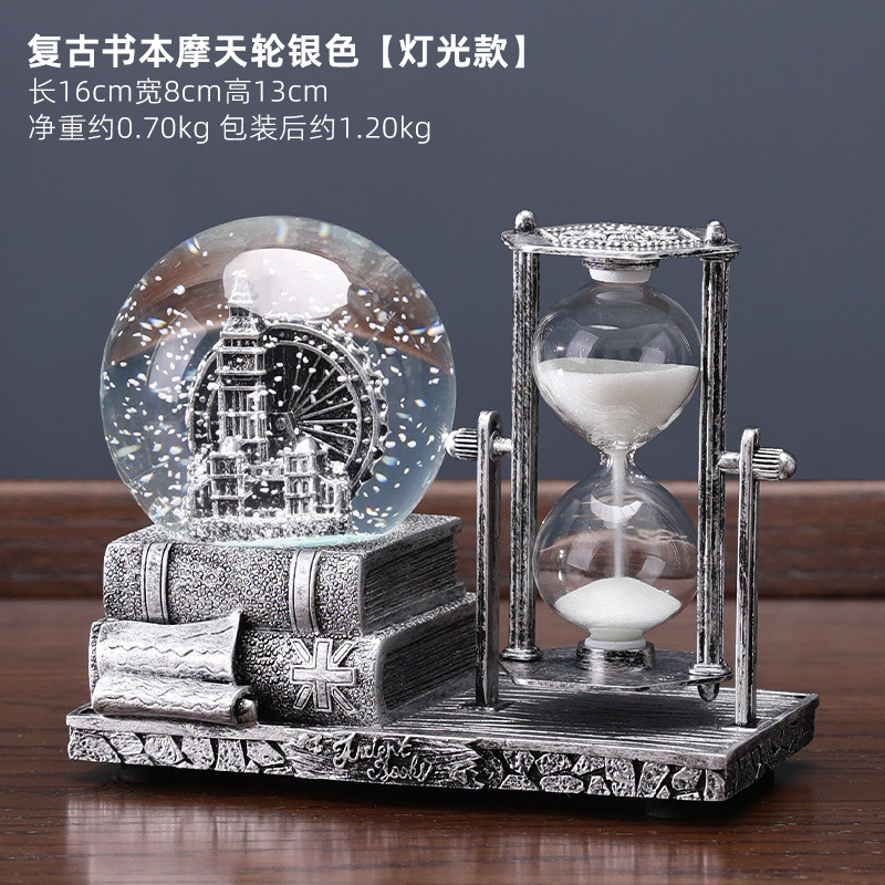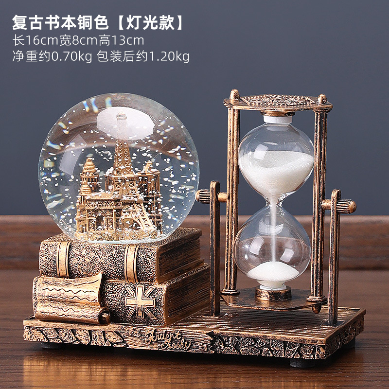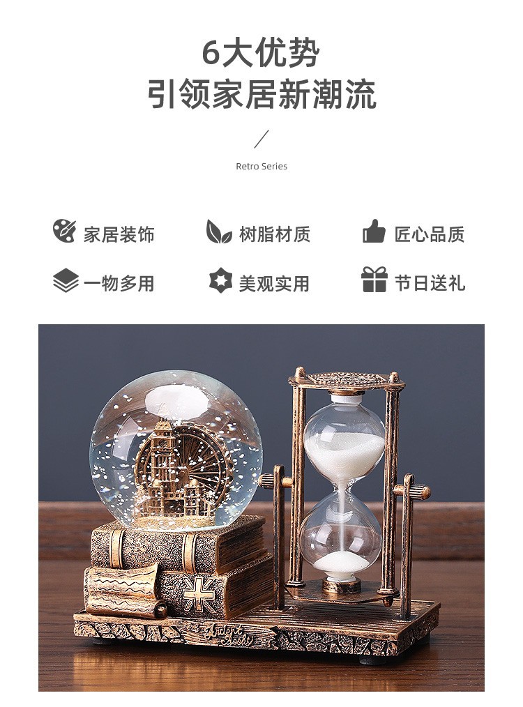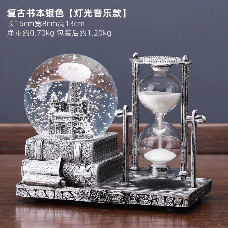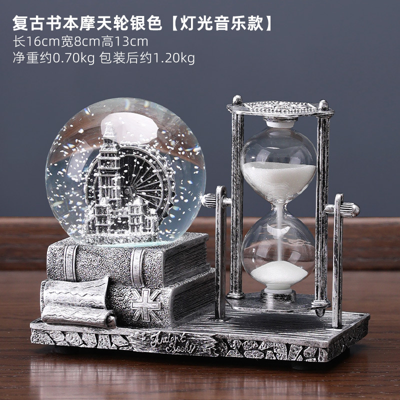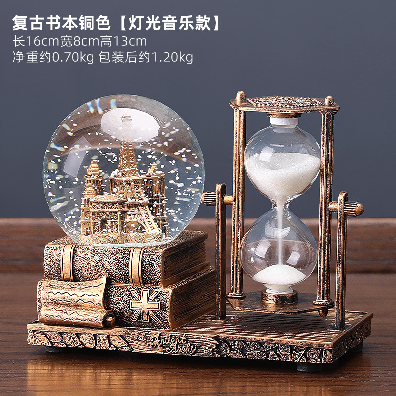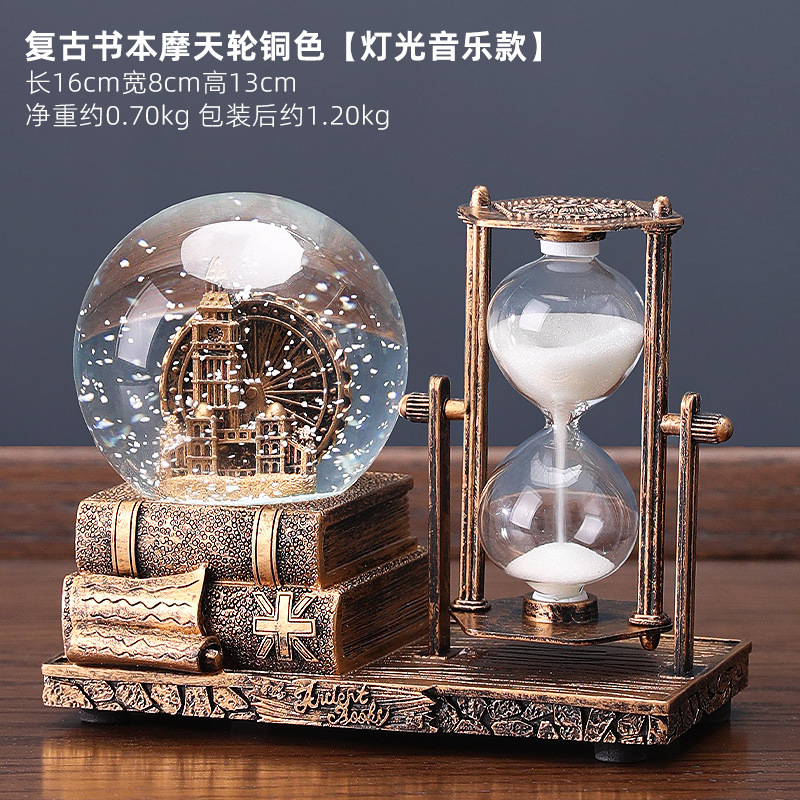 레트로 모래 시계 타이머 크리스탈 볼 뮤직 박스 데스크탑 장식 장식품 생일 선물 소녀들을위한 실용적인 홈