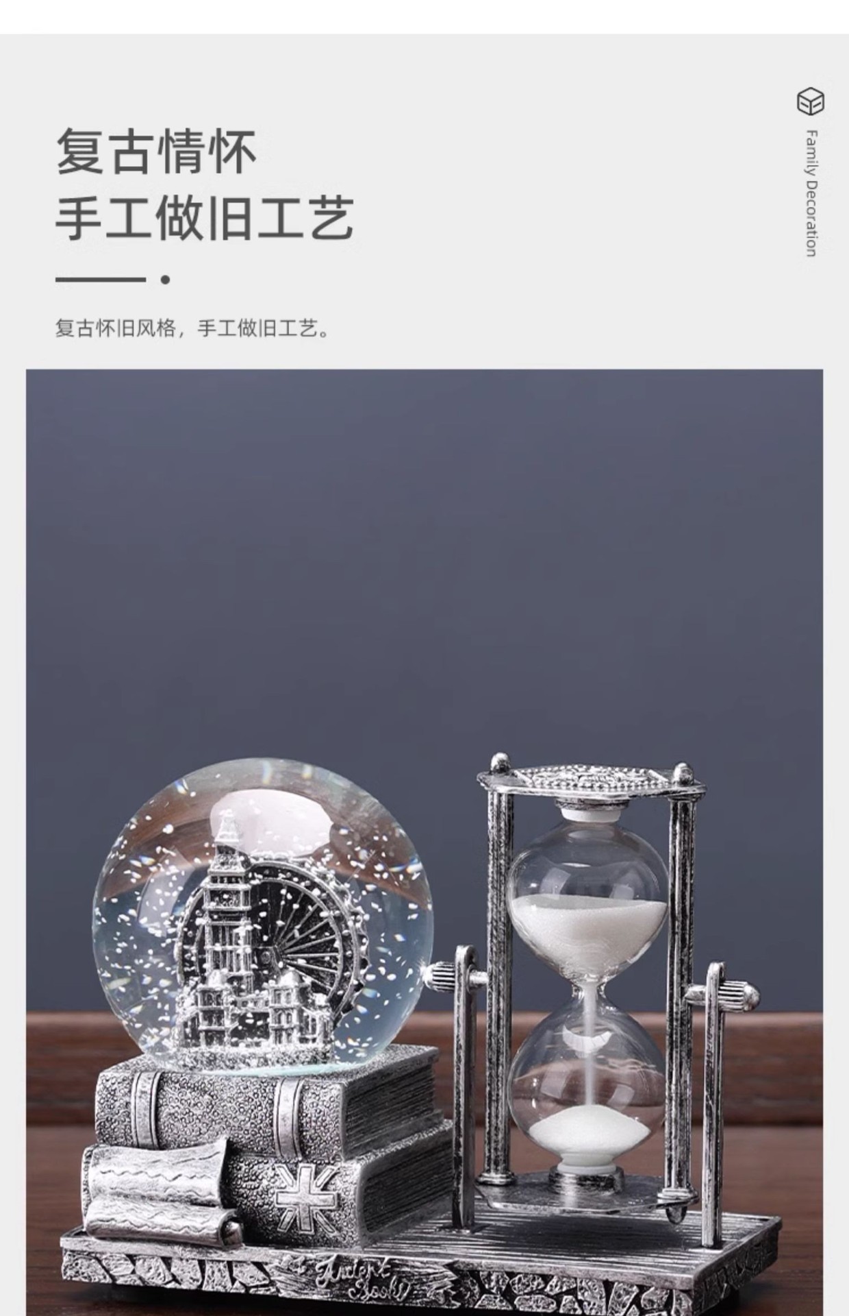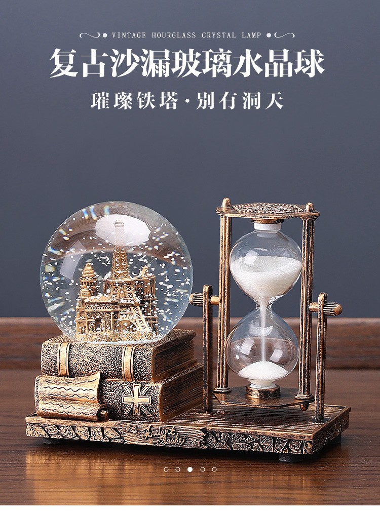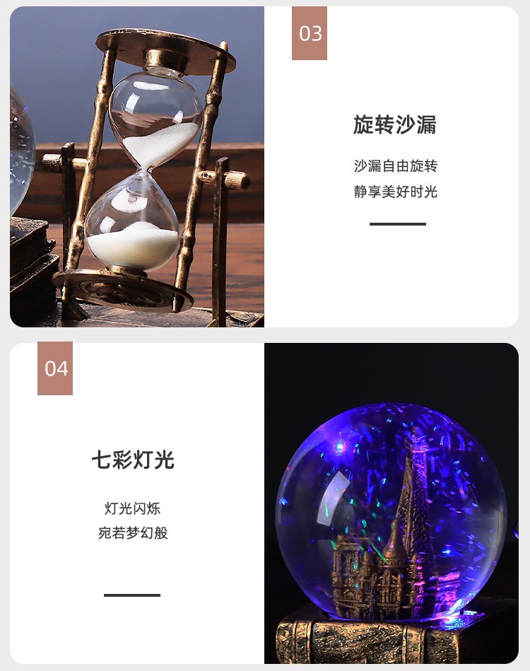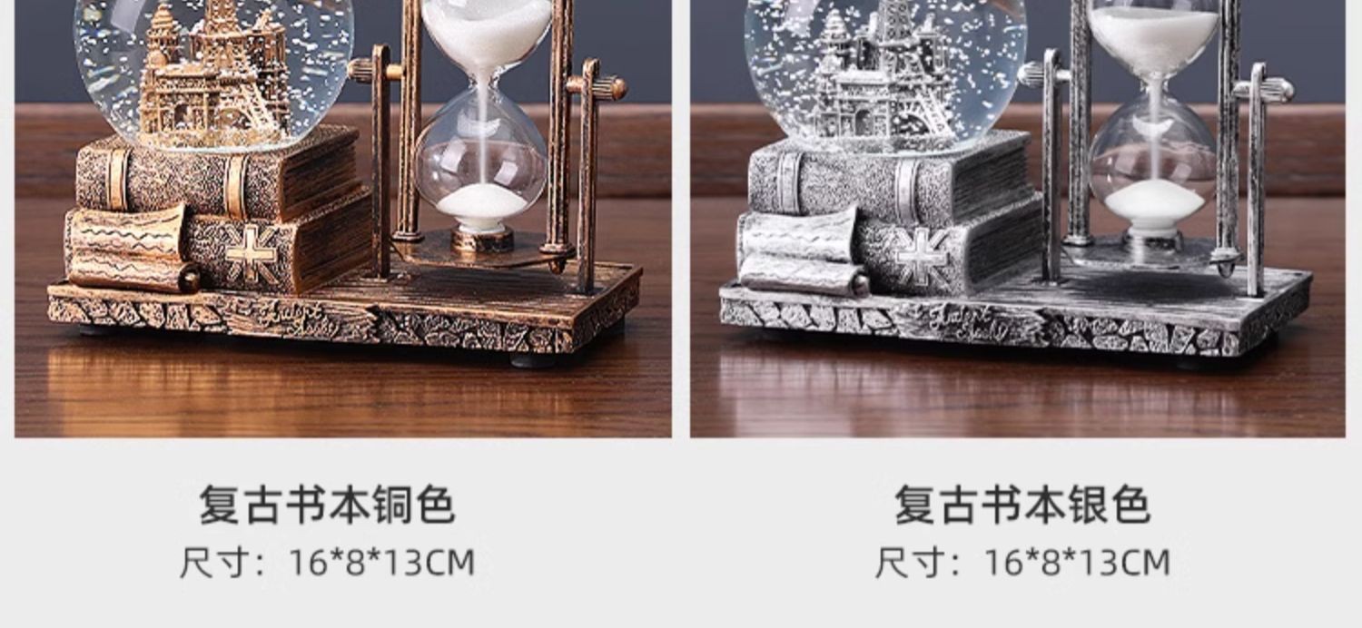 레트로 모래 시계 타이머 크리스탈 볼 뮤직 박스 데스크탑 장식 장식품 생일 선물 소녀들을위한 실용적인 홈