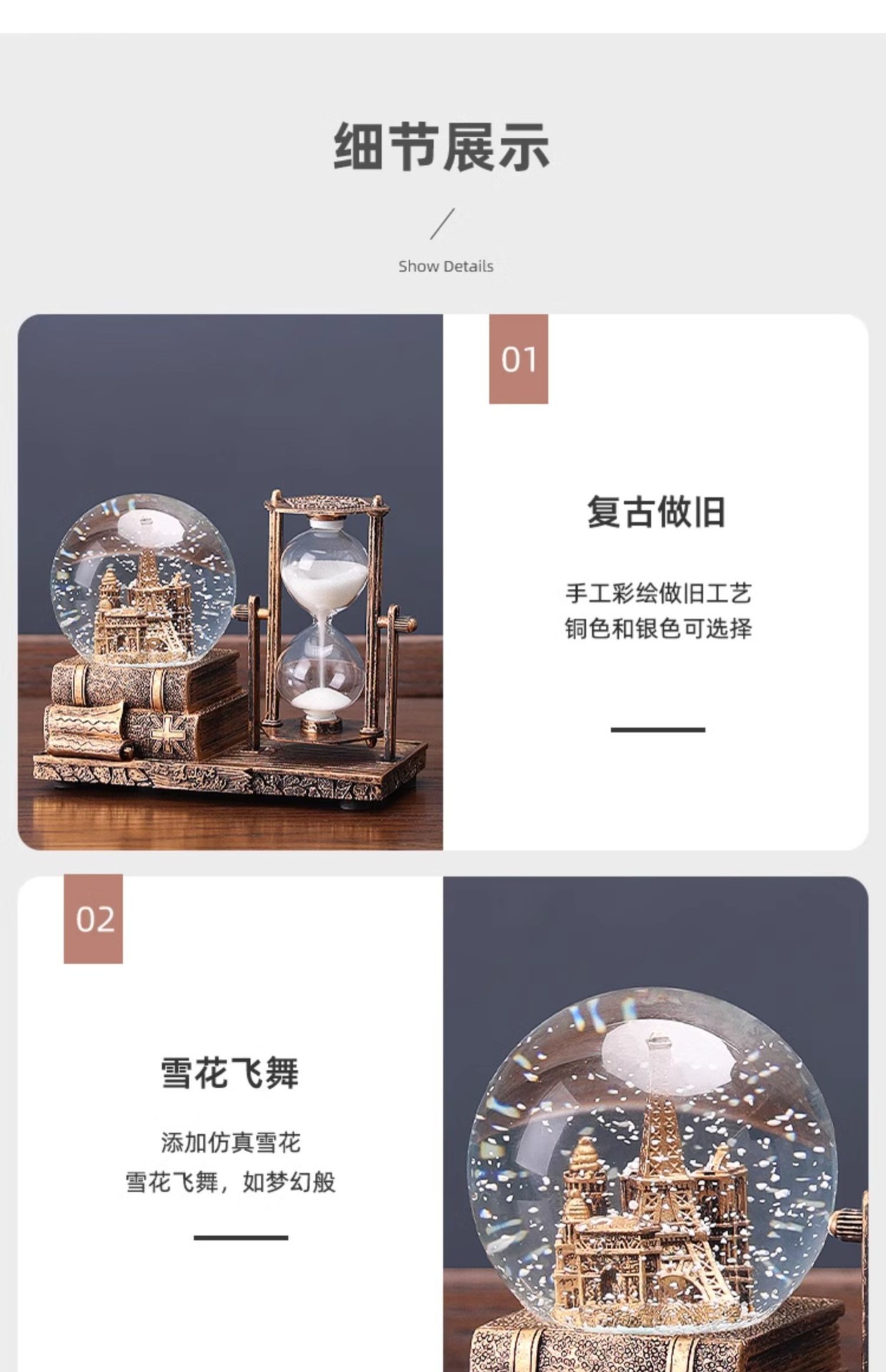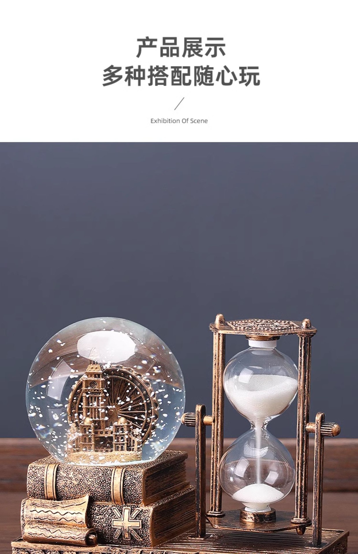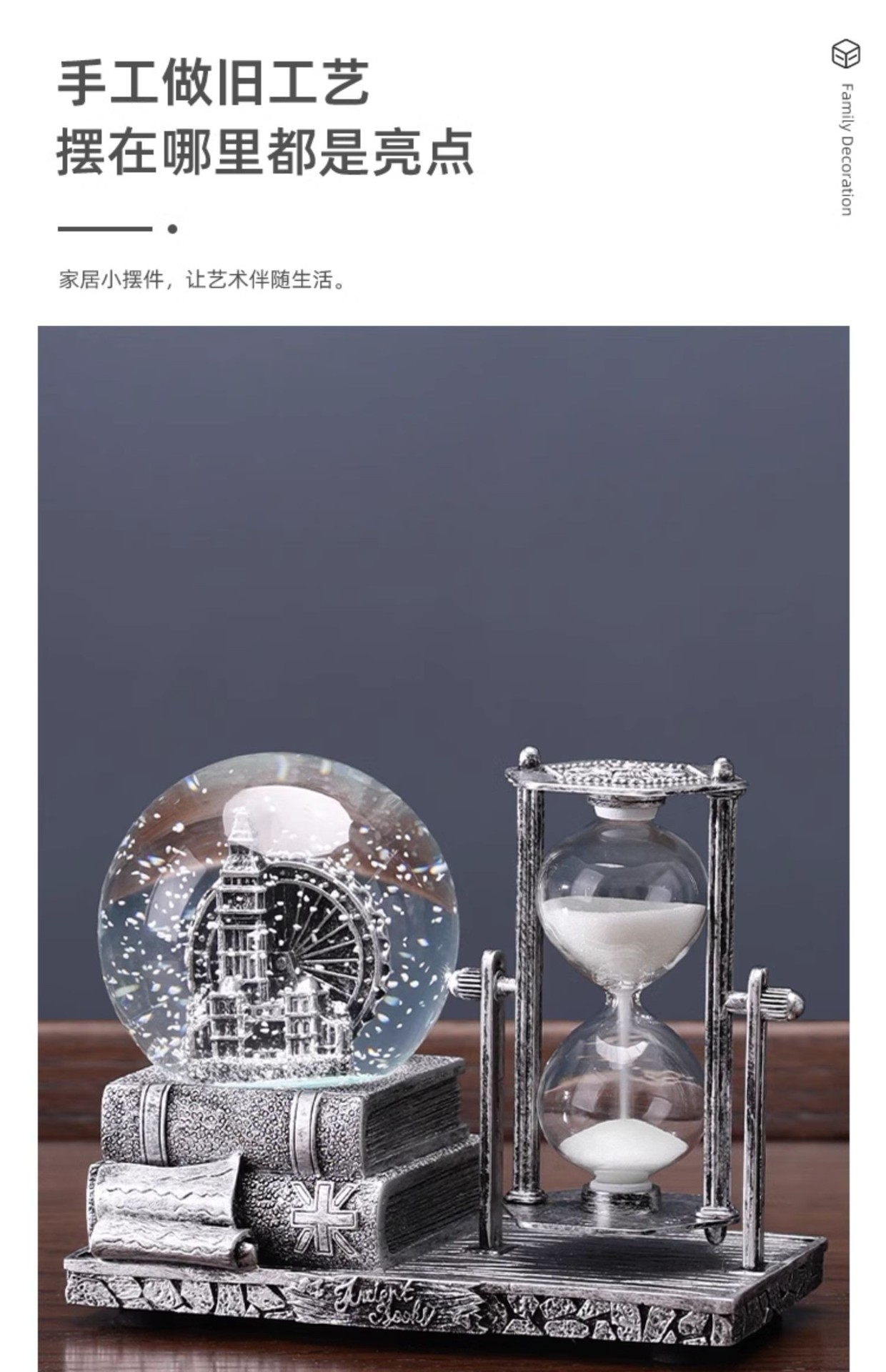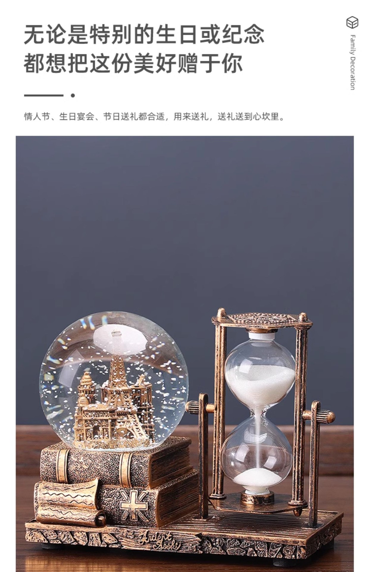 레트로 모래 시계 타이머 크리스탈 볼 뮤직 박스 데스크탑 장식 장식품 생일 선물 소녀들을위한 실용적인 홈