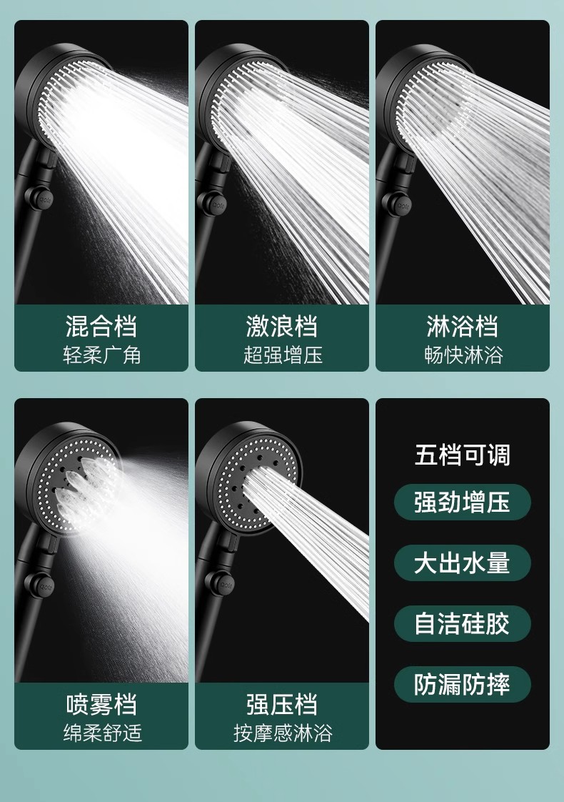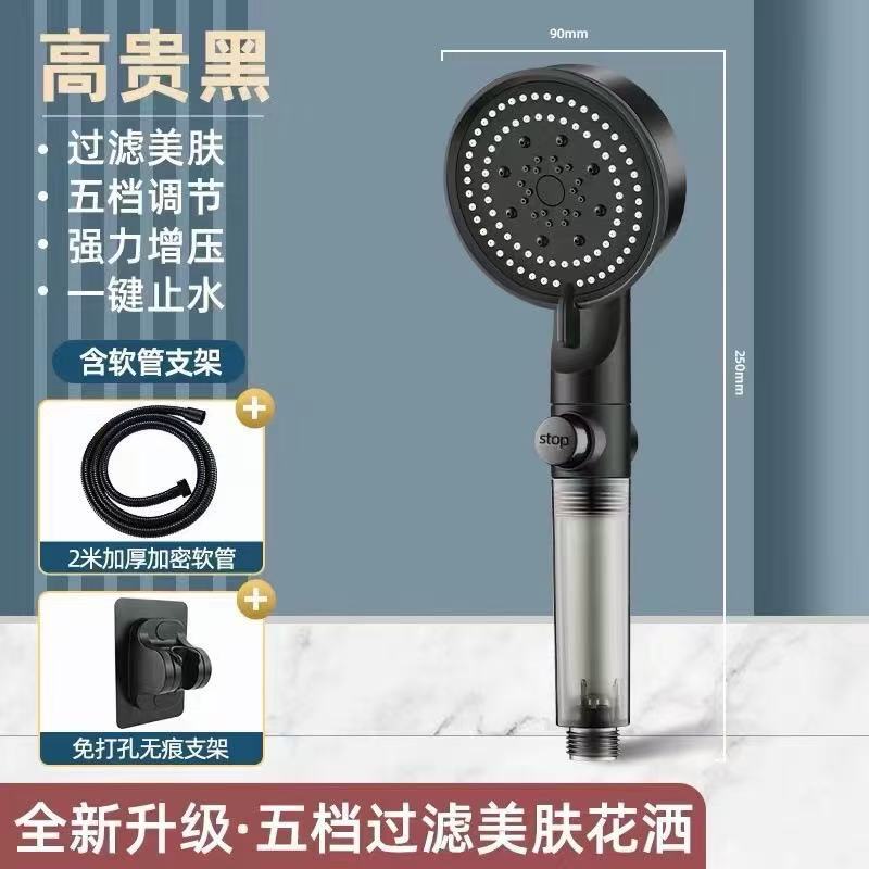 • [블랙] 5단 슈퍼차저 샤워기 + 브라켓 (무료 스테인리스 호스 1.5m개)