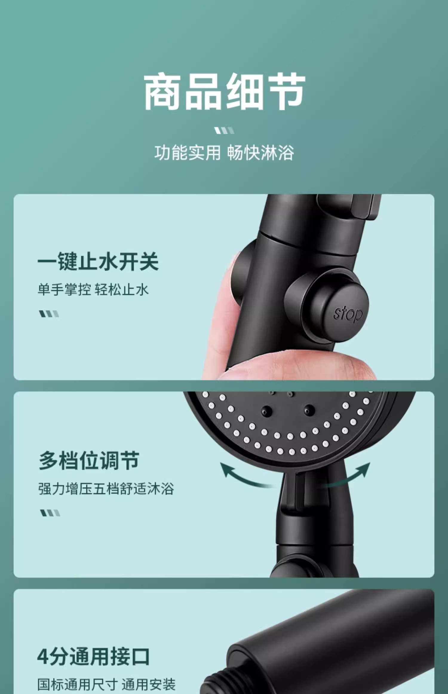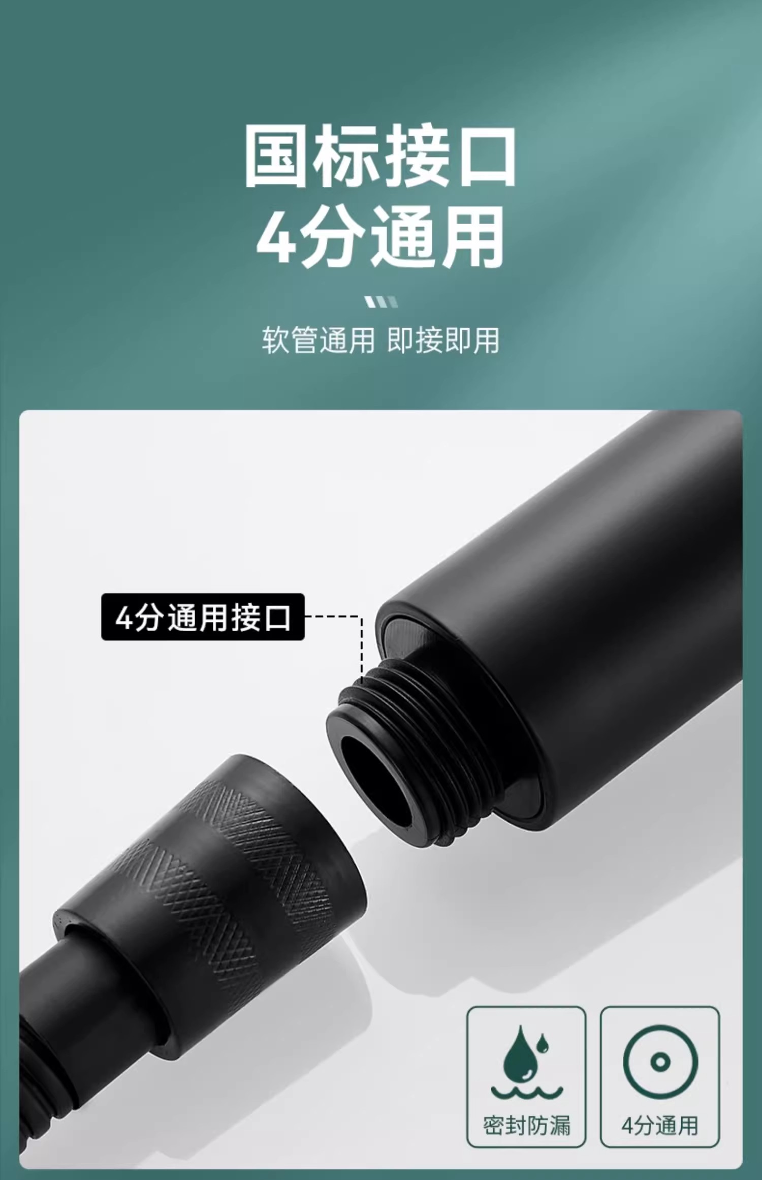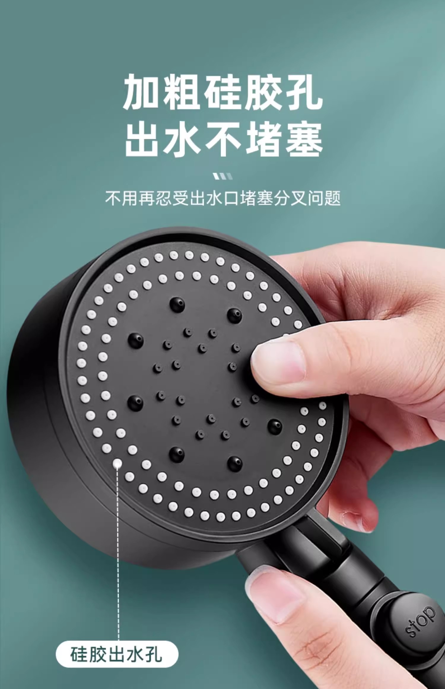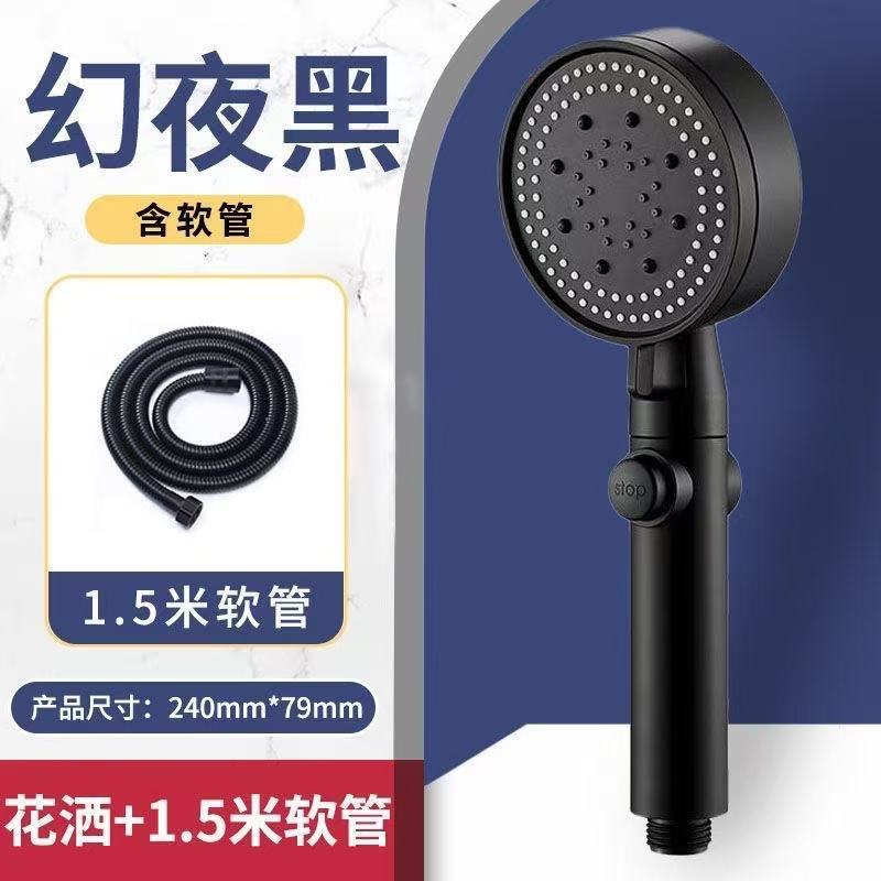• [옵시디언 블랙] 5단 슈퍼차저 샤워헤드(무료 스테인리스 호스 1.5m개)